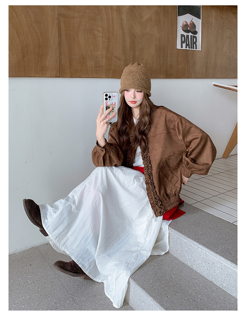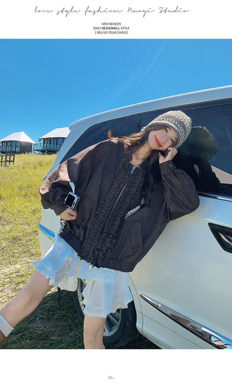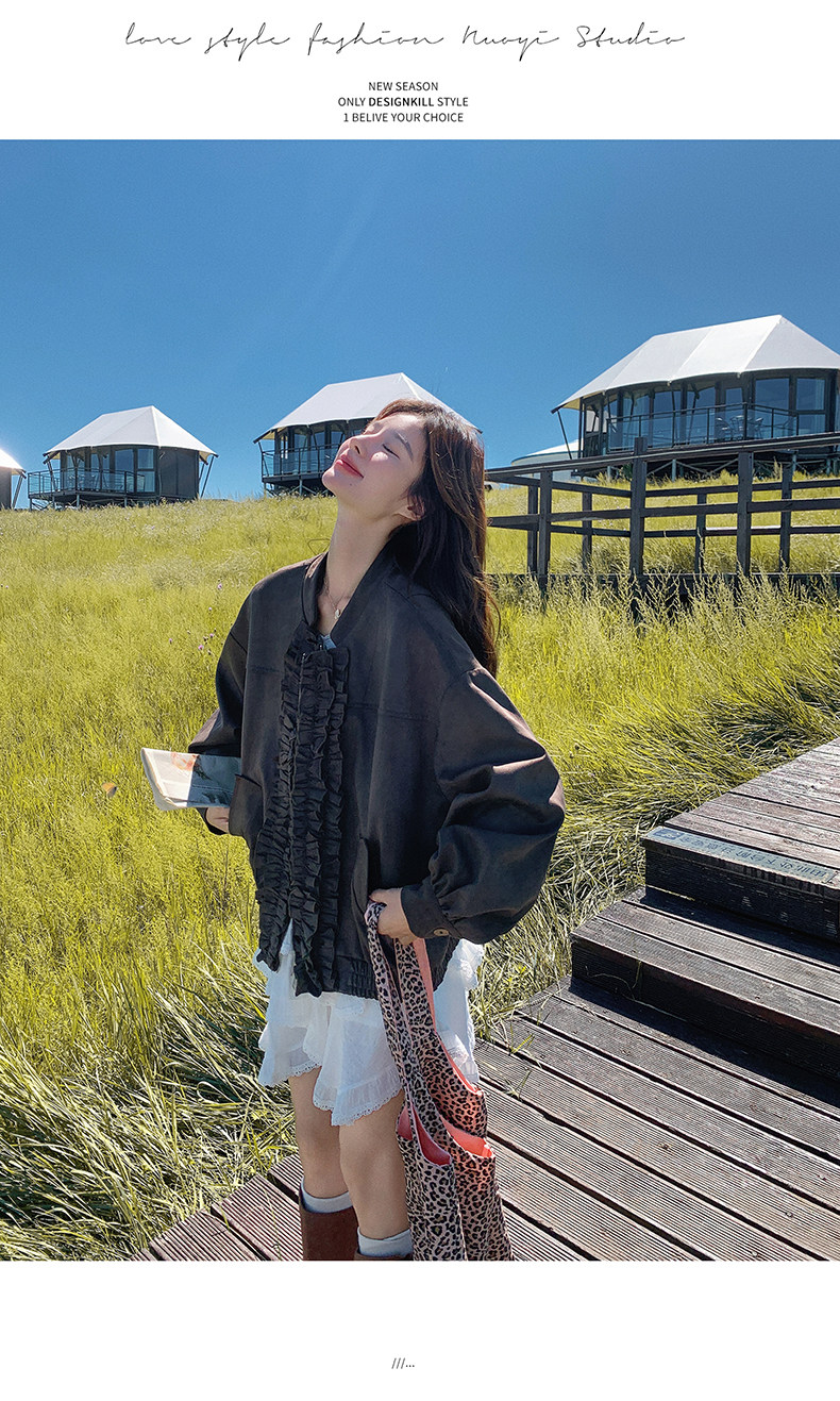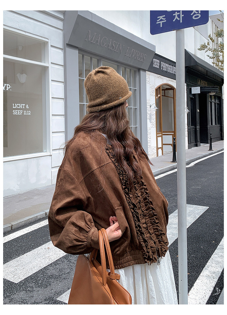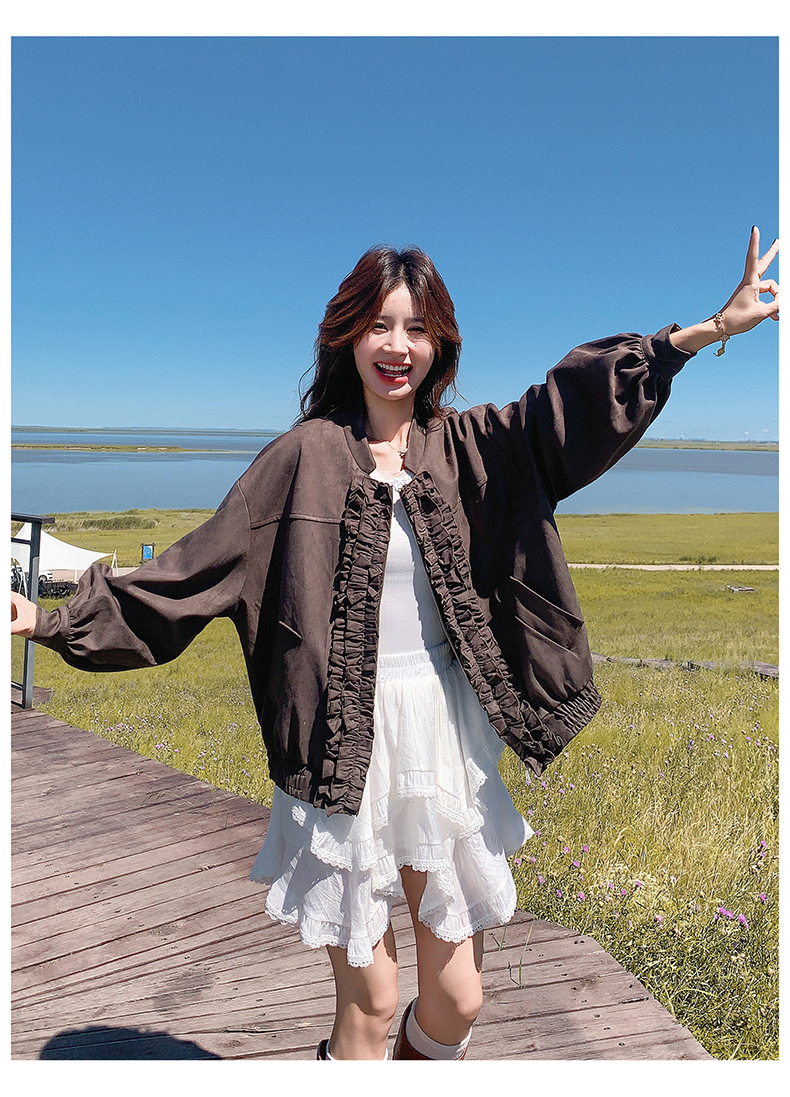 【アウター】カジュアル フリル切り替え スエード調 ショートジャケット【JZシリーズ】