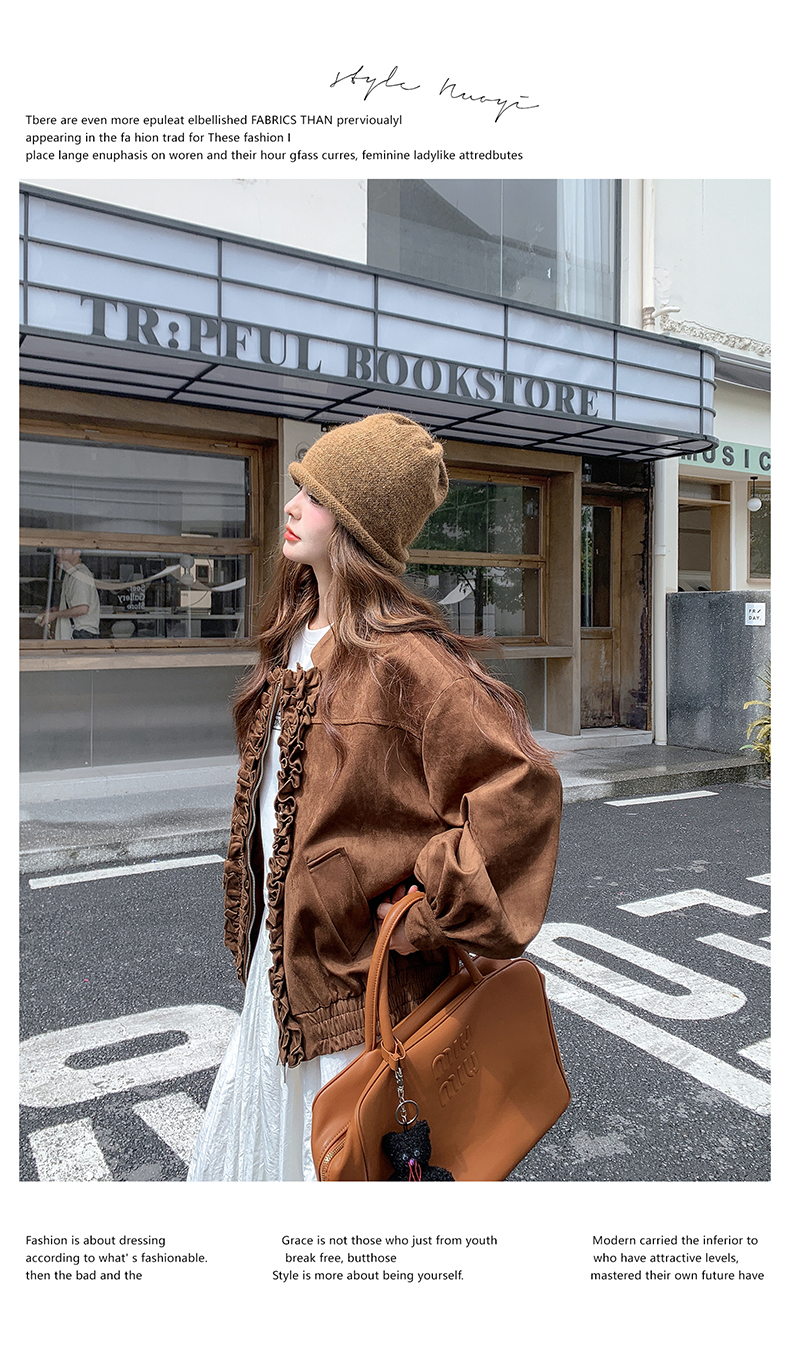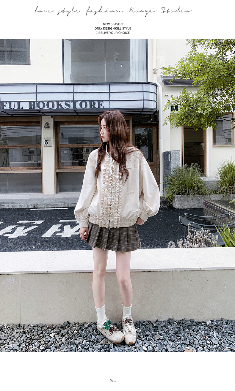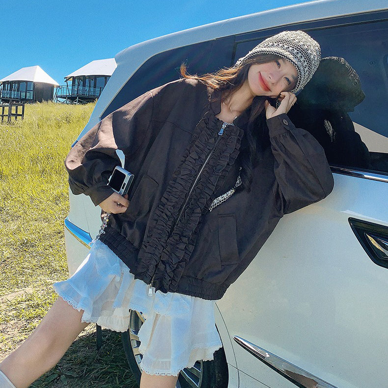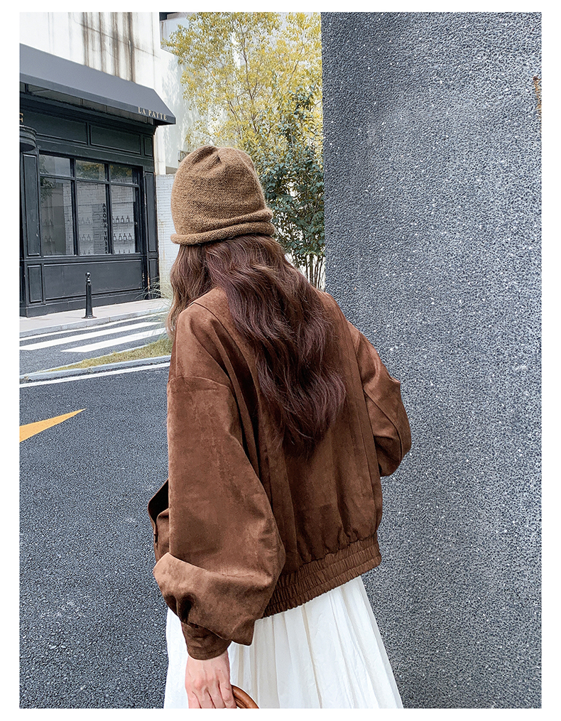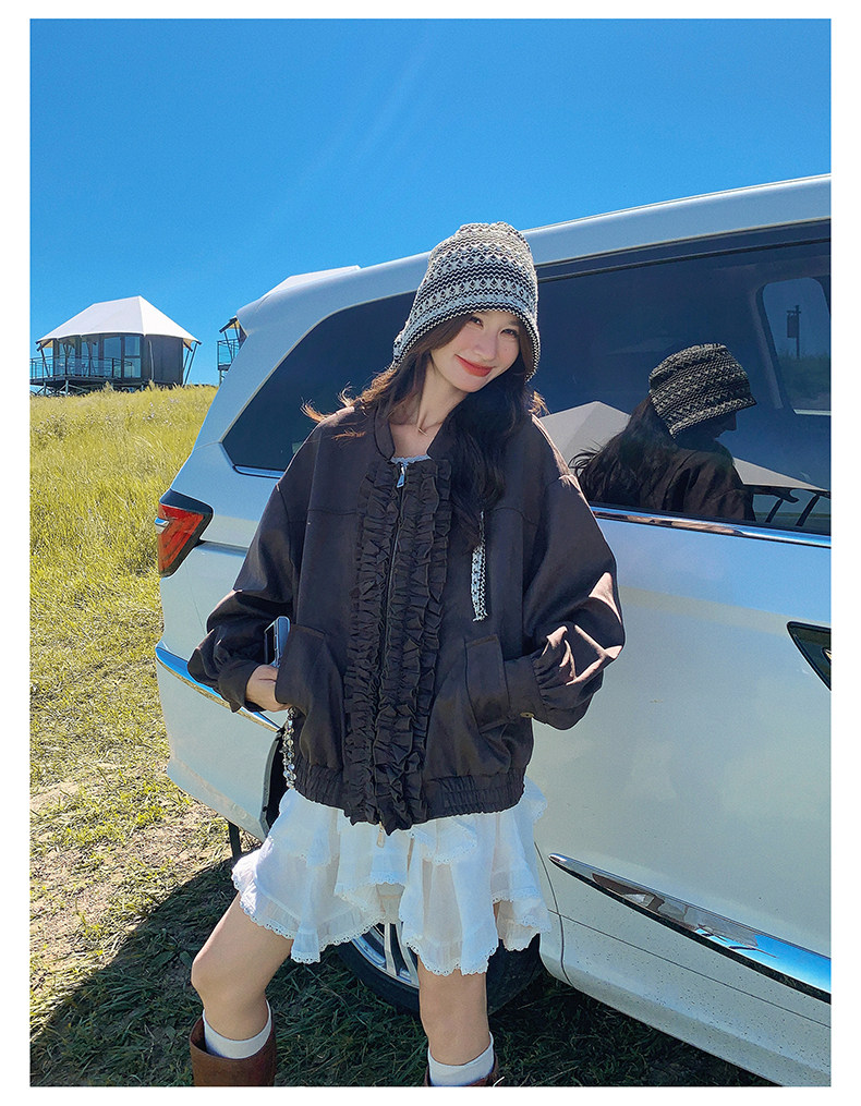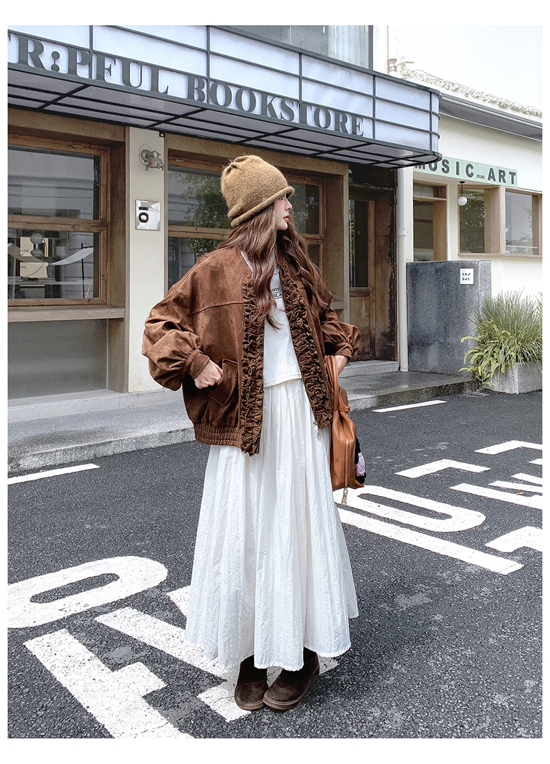 【アウター】カジュアル フリル切り替え スエード調 ショートジャケット【JZシリーズ】