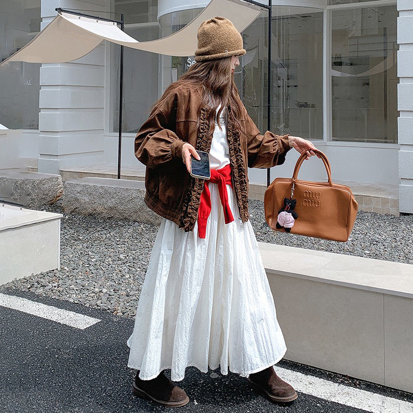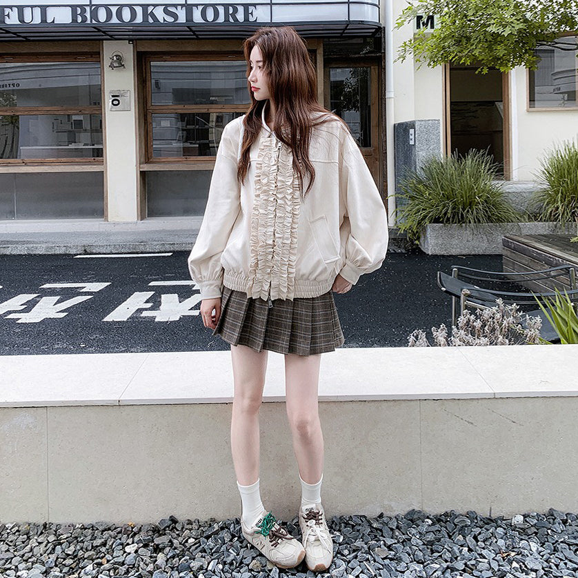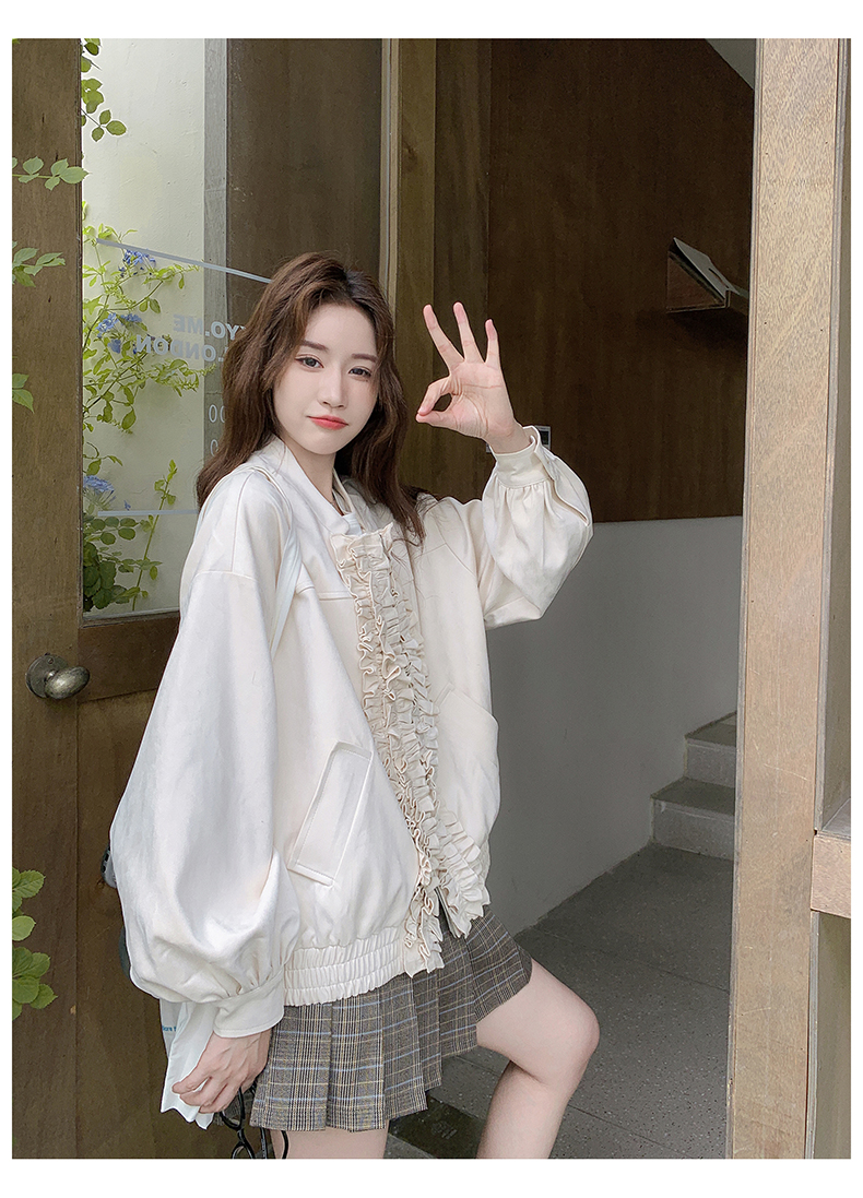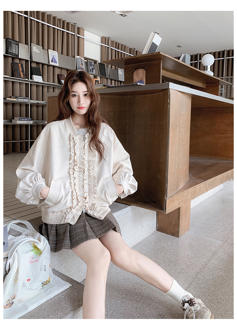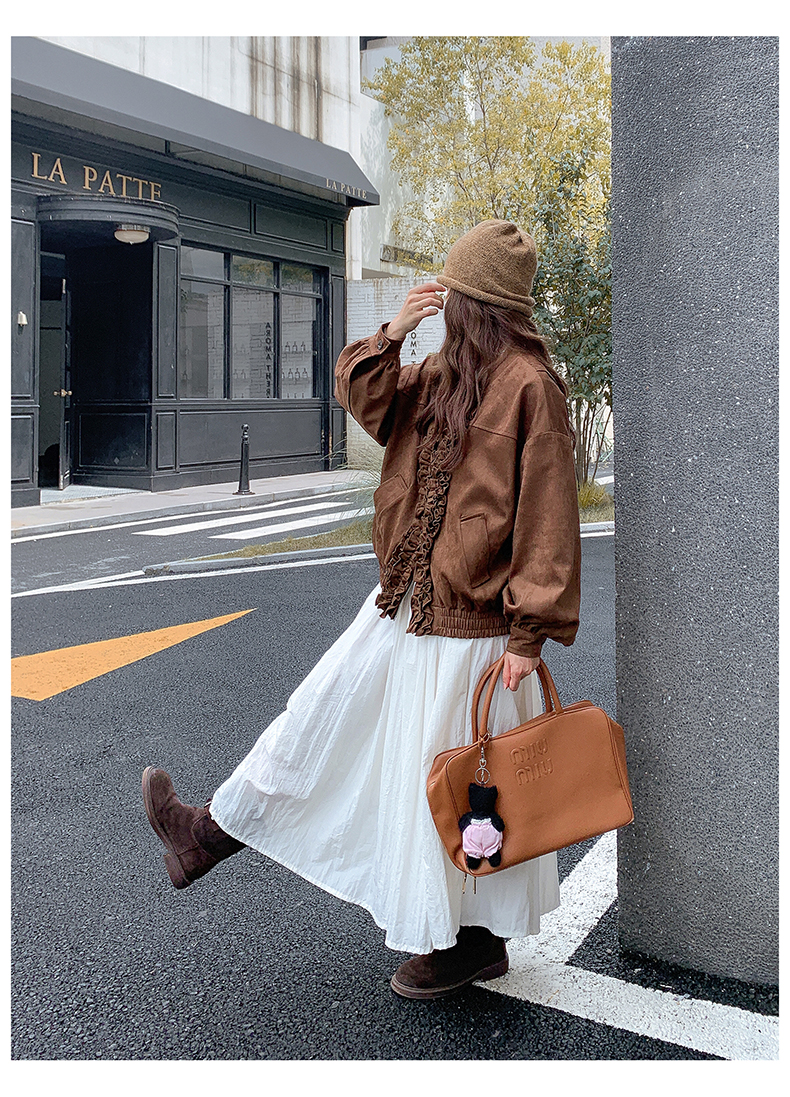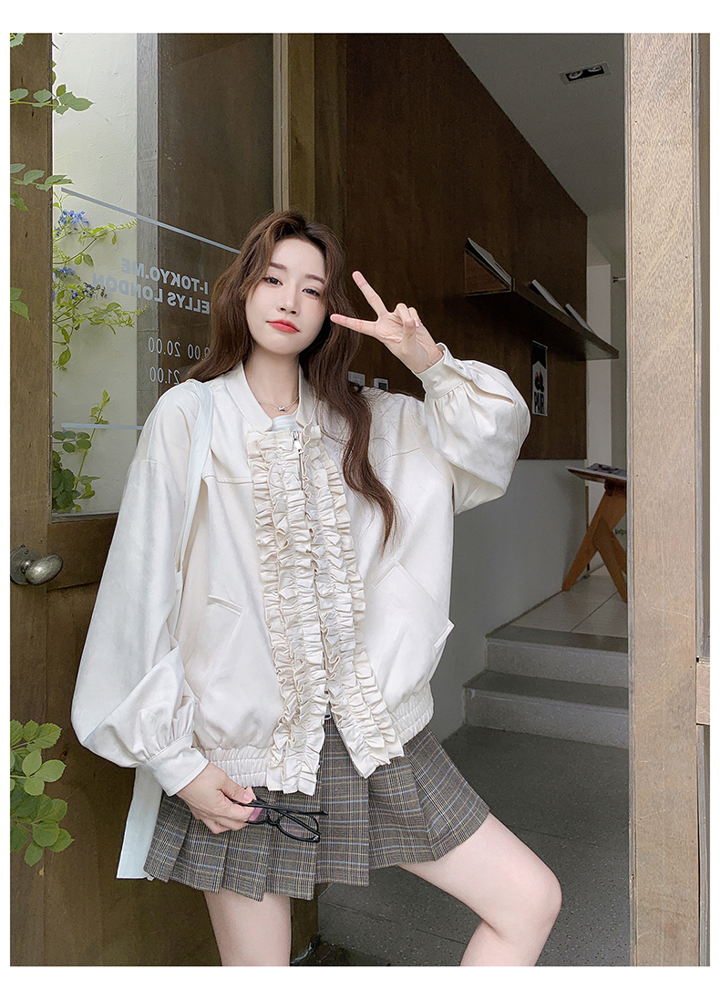 【アウター】カジュアル フリル切り替え スエード調 ショートジャケット【JZシリーズ】