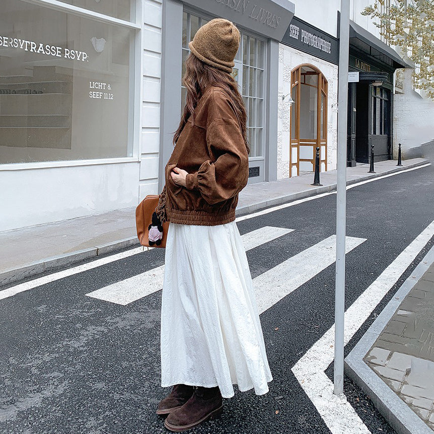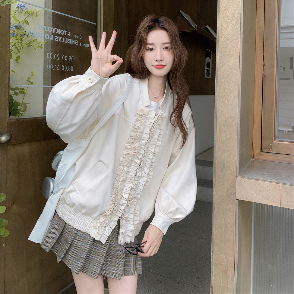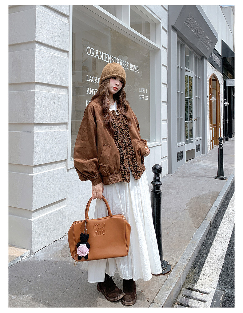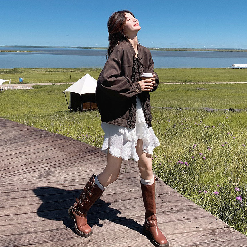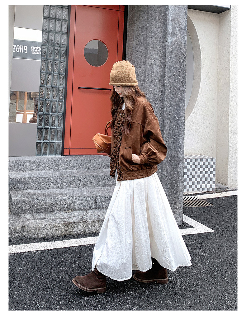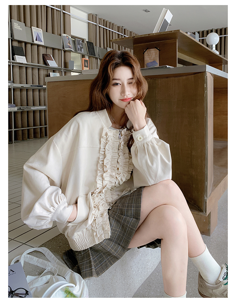 【アウター】カジュアル フリル切り替え スエード調 ショートジャケット【JZシリーズ】