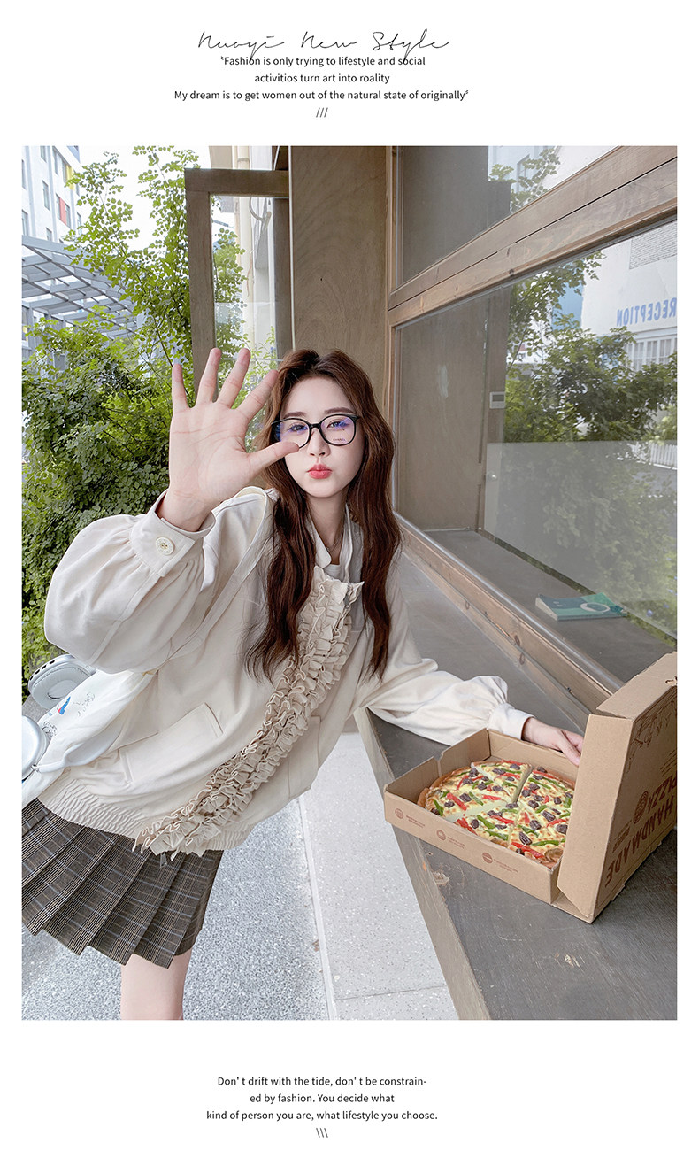 【商品名】【アウター】カジュアル フリル切り替え スエード調 ショートジャケット【JZシリーズ】