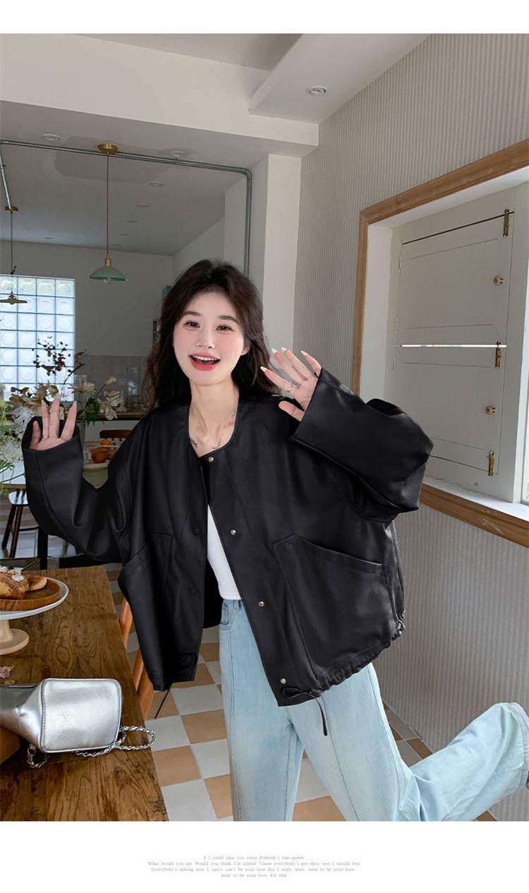 【アウター】デザイン性 ドローストリング裾 レザージャケット ゆったり カジュアル バイカージャケット【JZシリーズ】