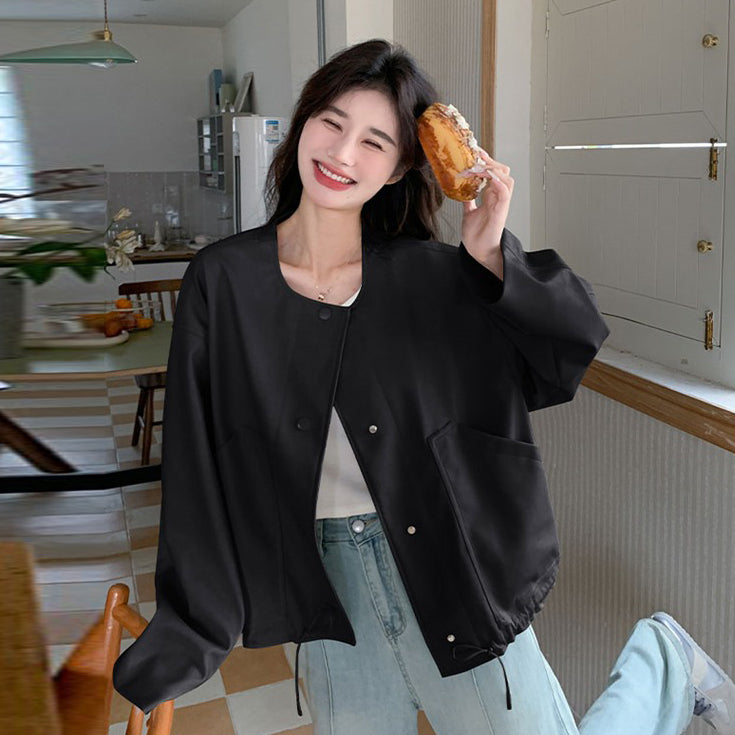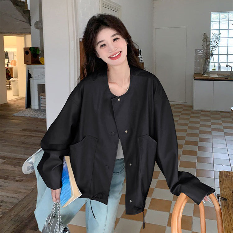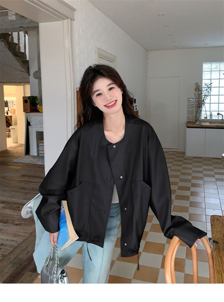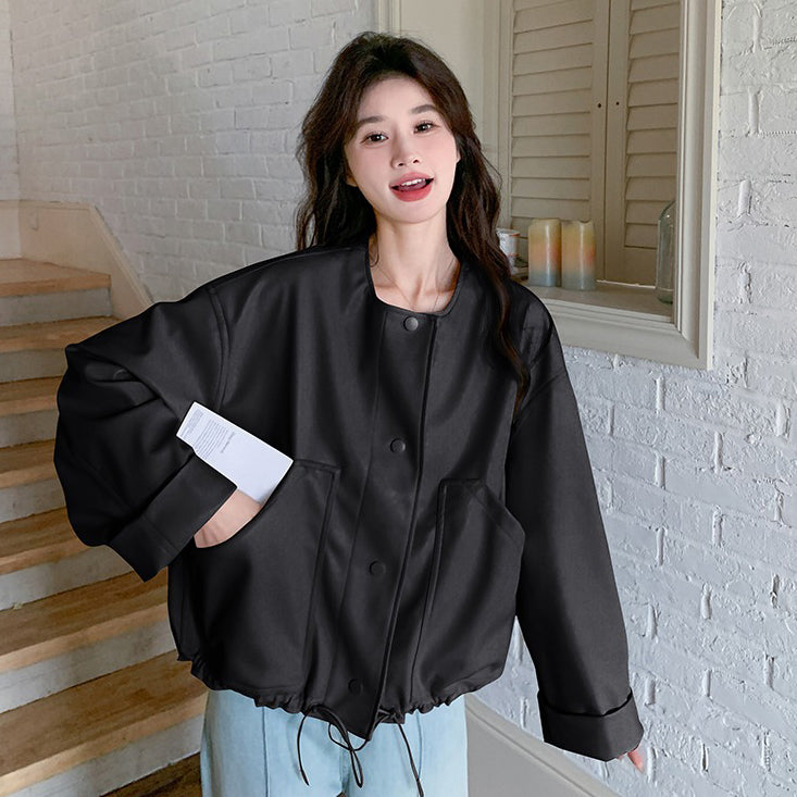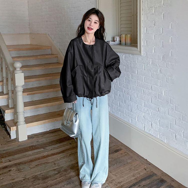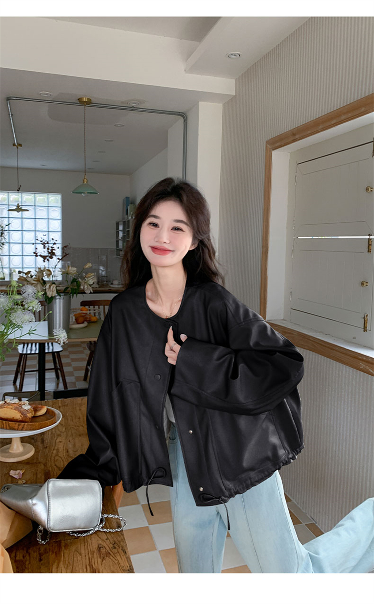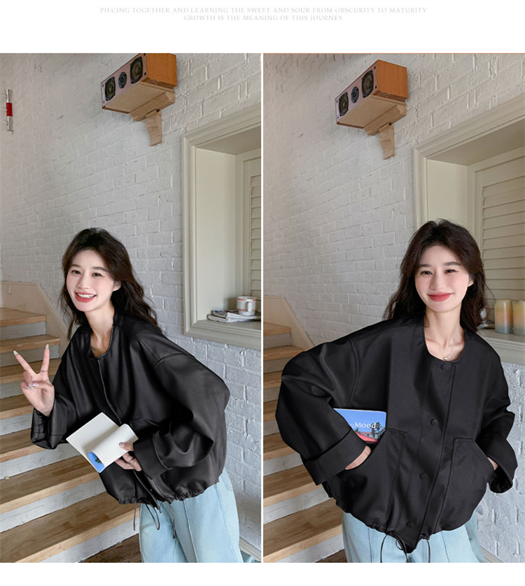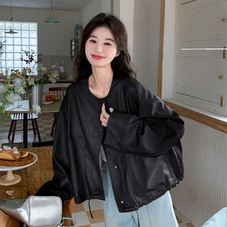 【商品名】【アウター】デザイン性 ドローストリング裾 レザージャケット ゆったり カジュアル バイカージャケット【JZシリーズ】