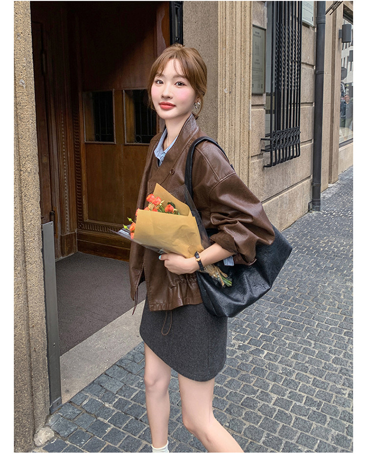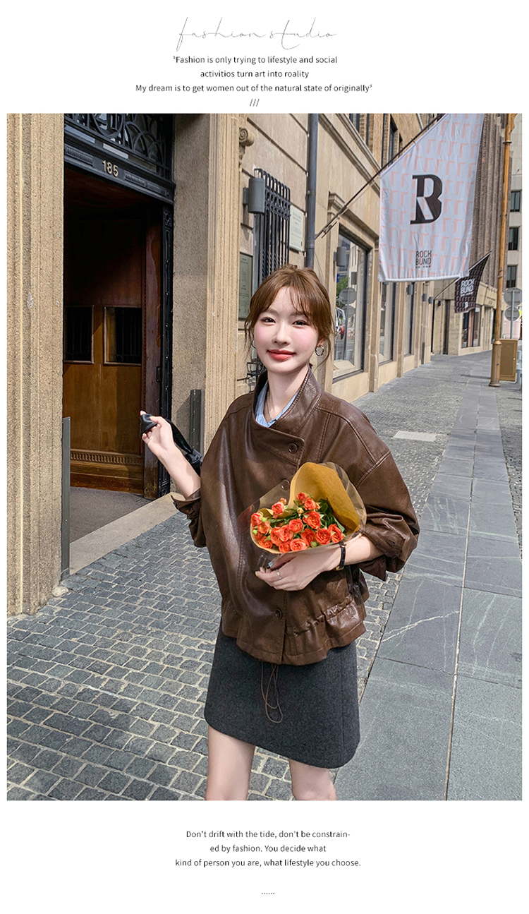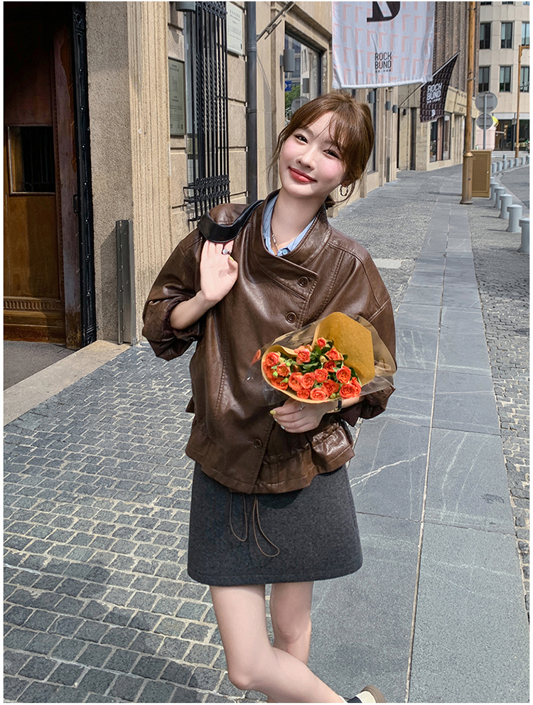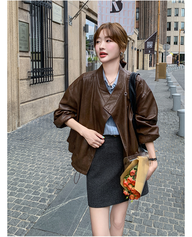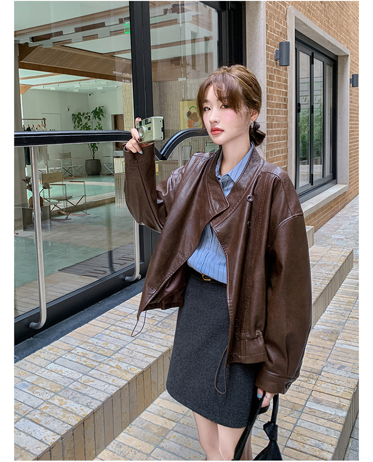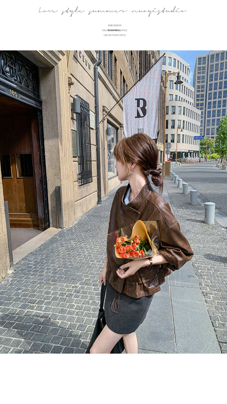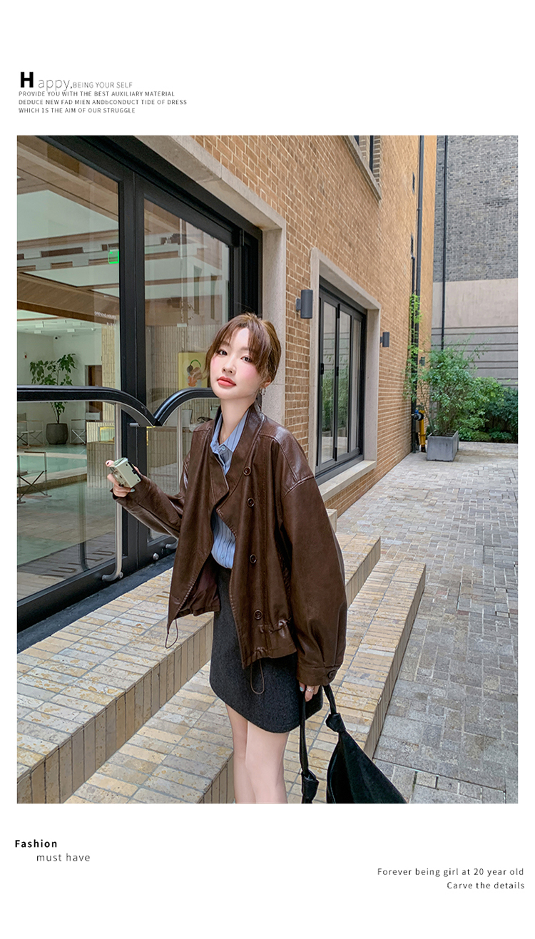【商品名】【アウター】メラード ブラウン レザージャケット レディース 春秋 上質感 ストリート系 ショートジャケット【JZシリーズ】
