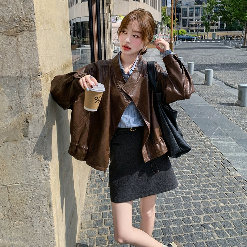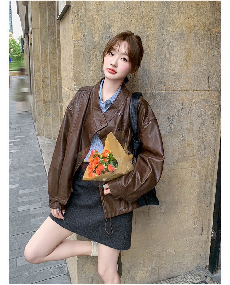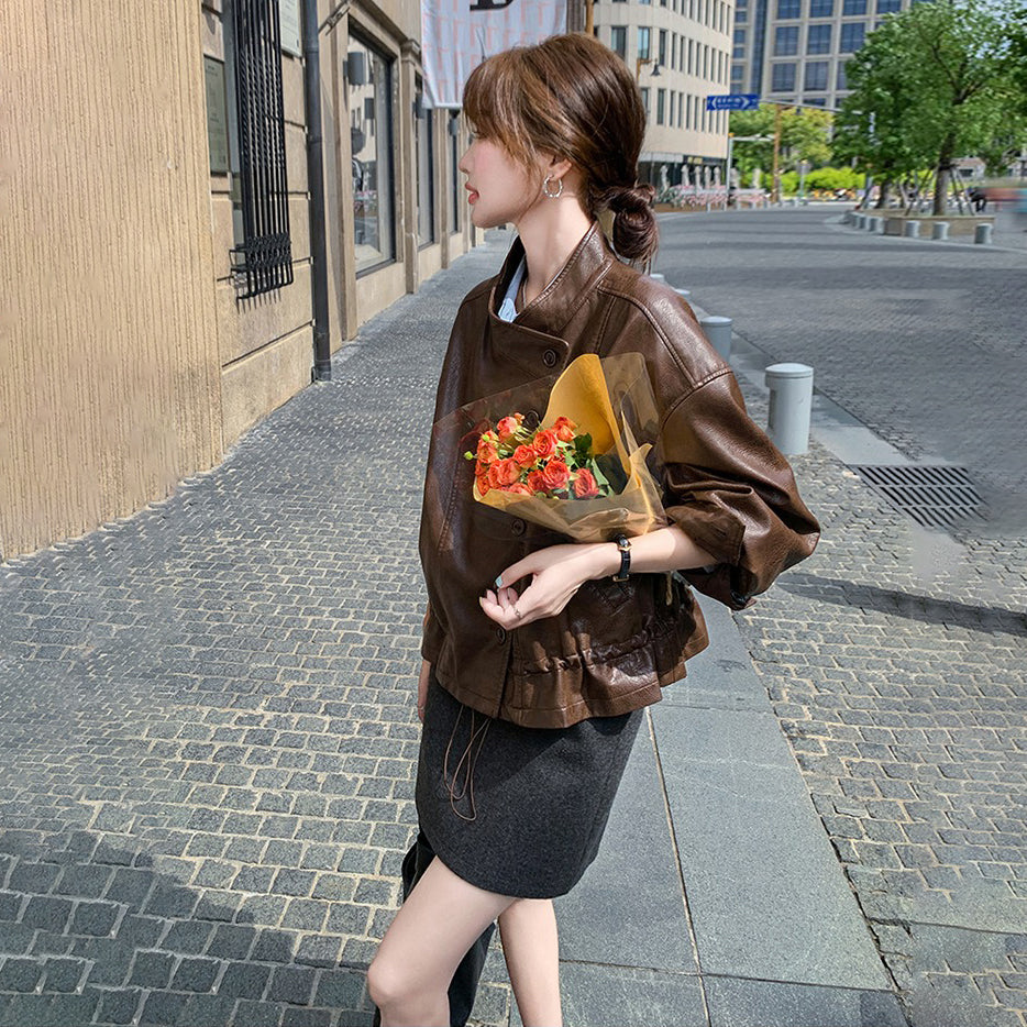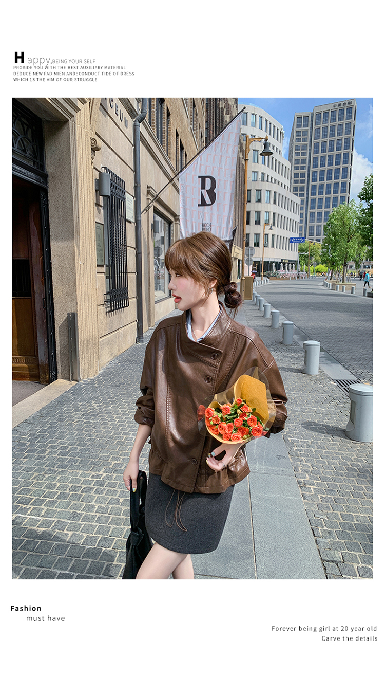 【アウター】メラード ブラウン レザージャケット レディース 春秋 上質感 ストリート系 ショートジャケット【JZシリーズ】