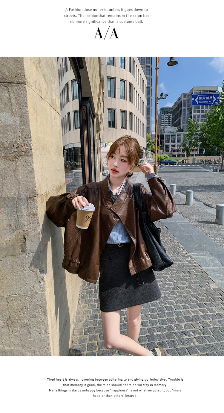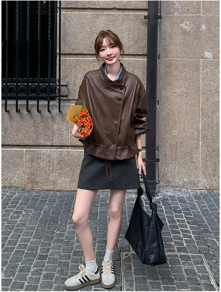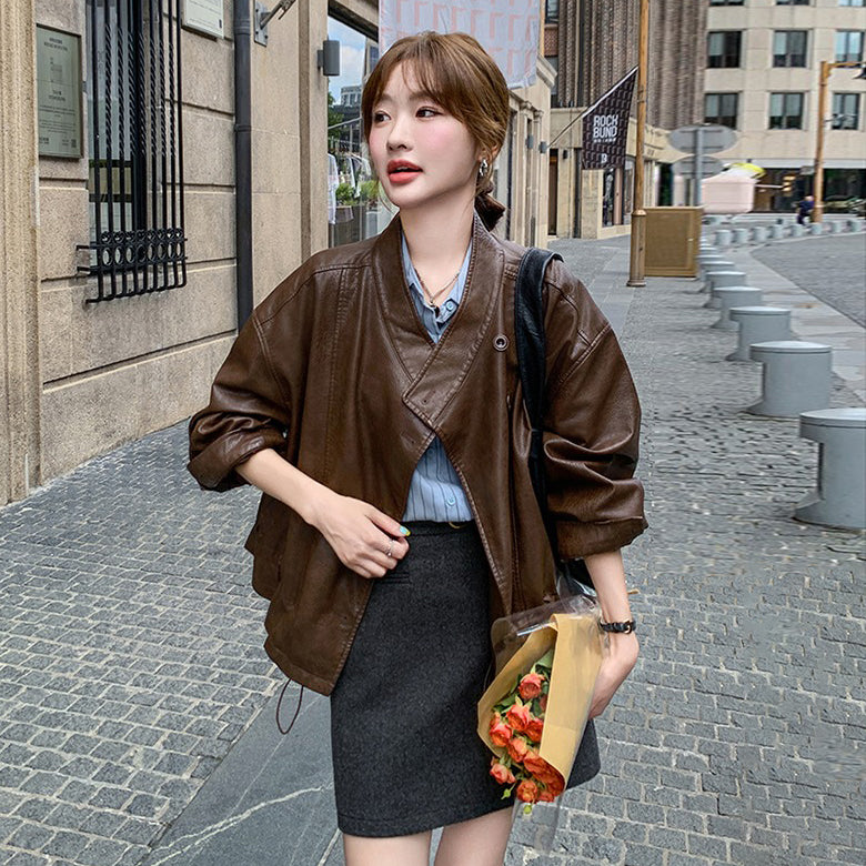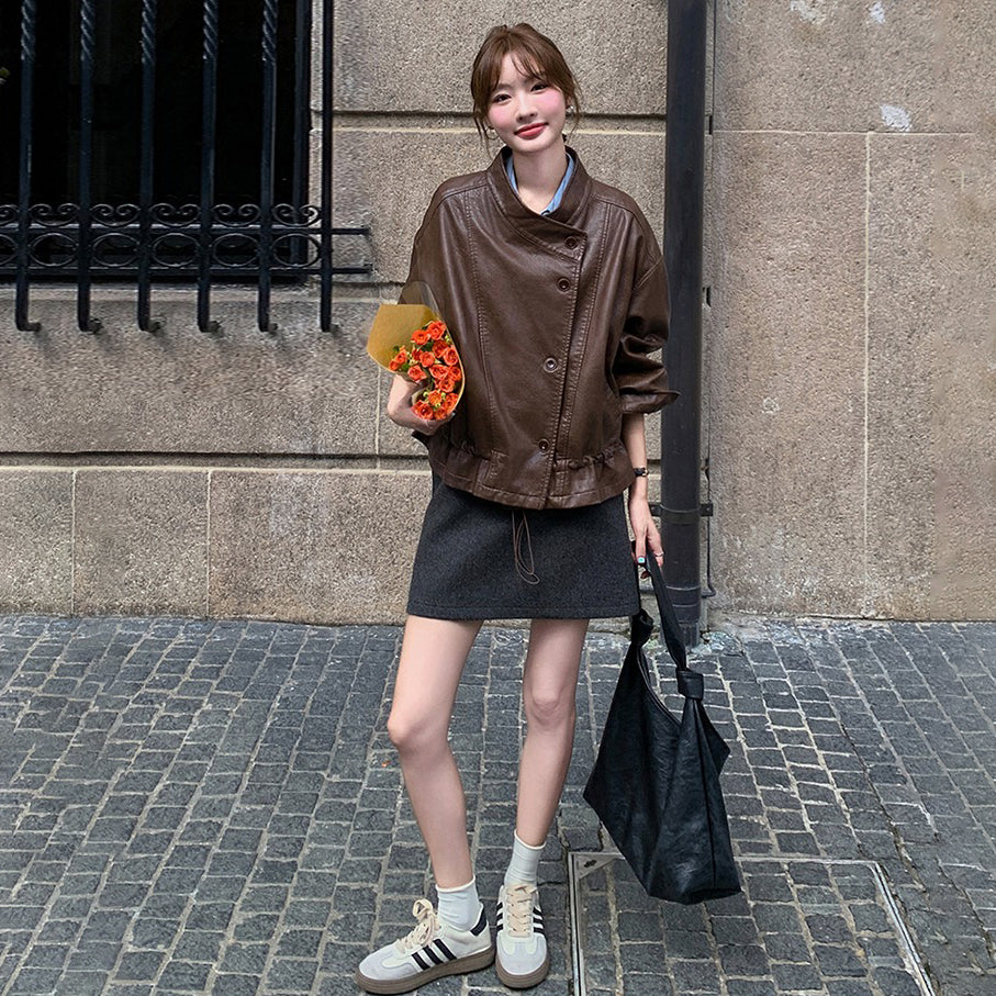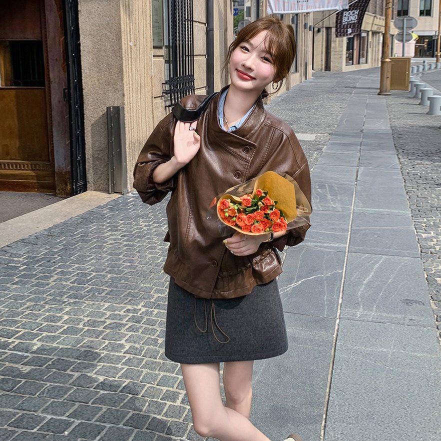 【アウター】メラード ブラウン レザージャケット レディース 春秋 上質感 ストリート系 ショートジャケット【JZシリーズ】