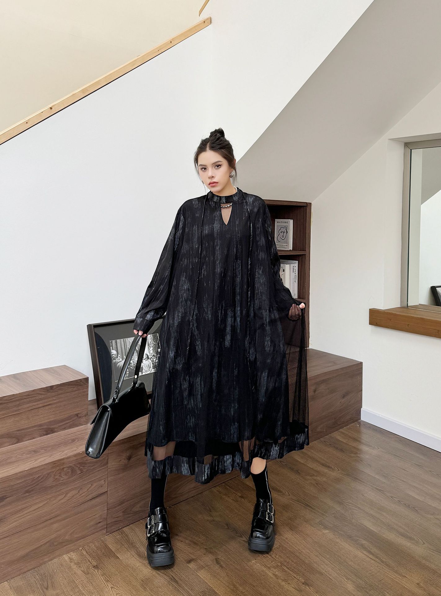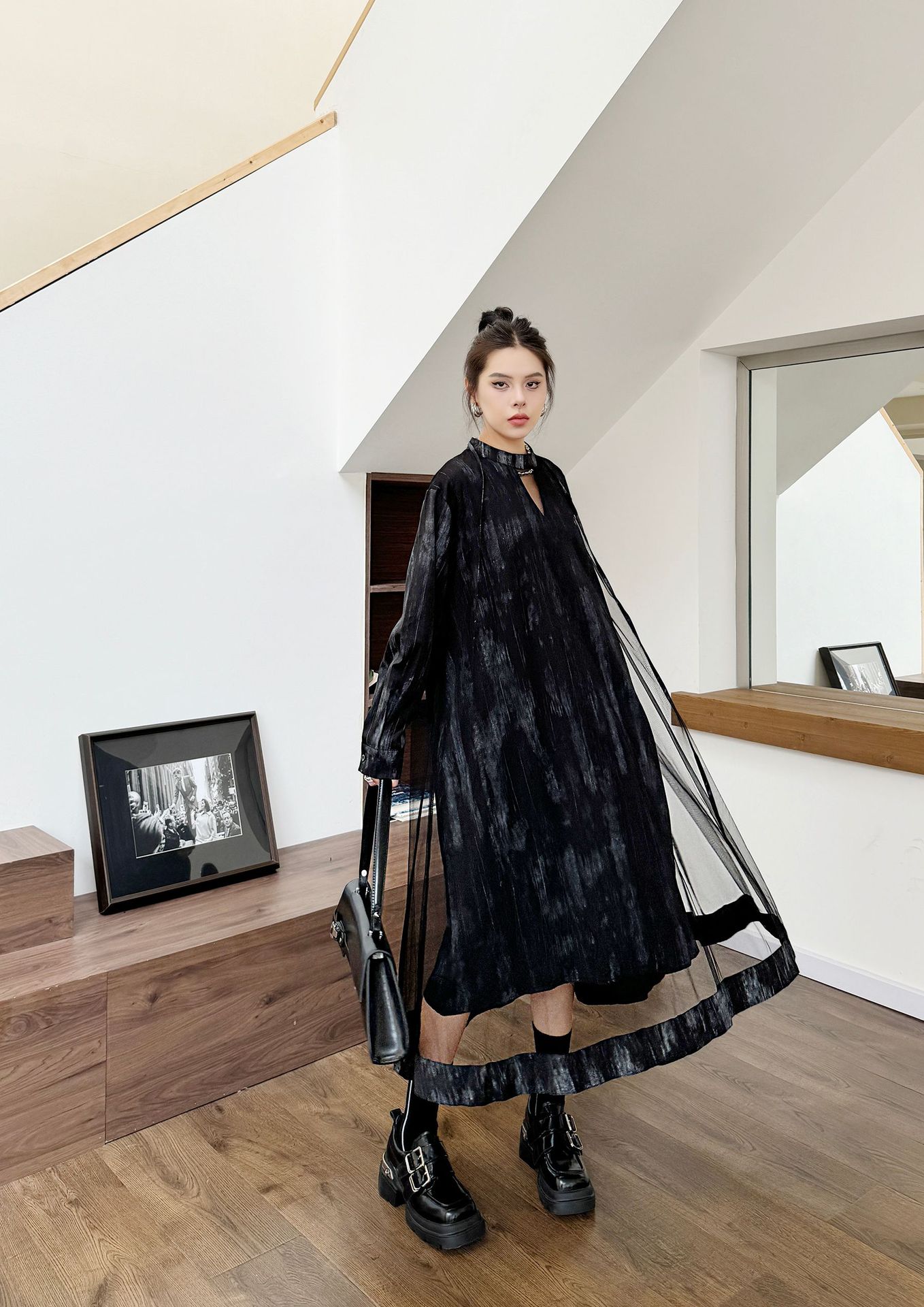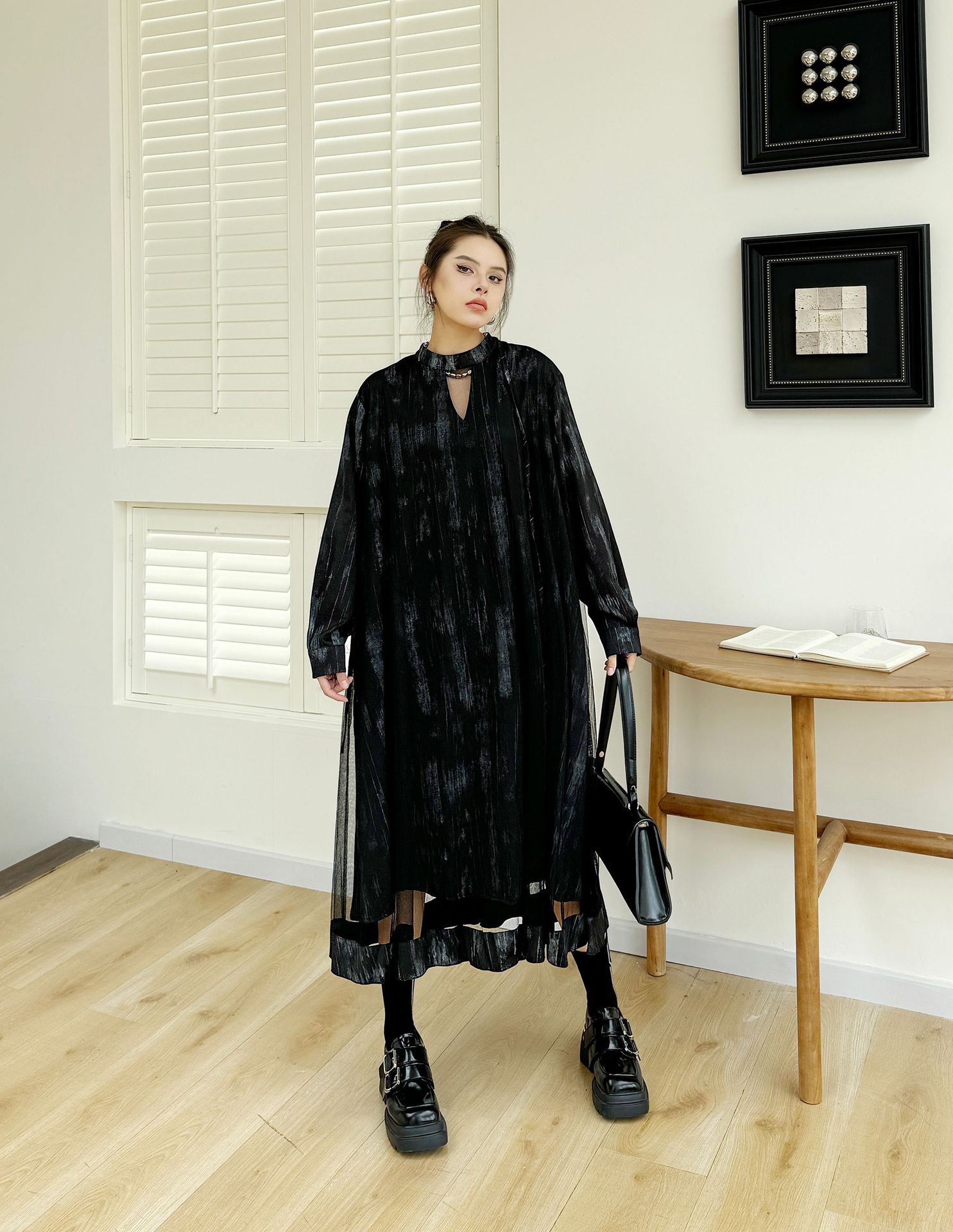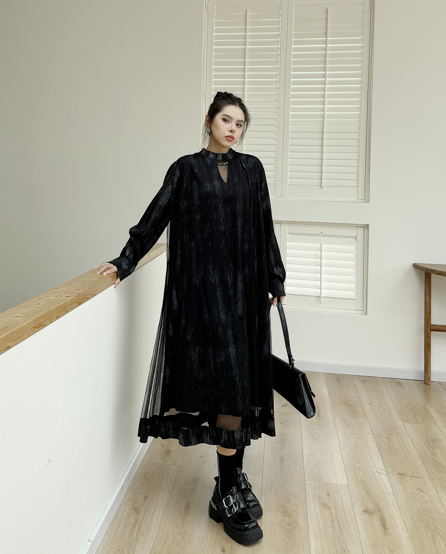 【商品名】【ワンピース】春 秋 冬 チュール切替 ドッキング風 ロング ワンピース 【AHシリーズ】