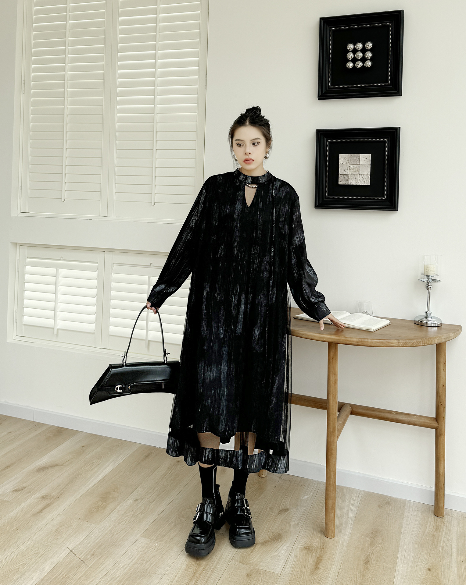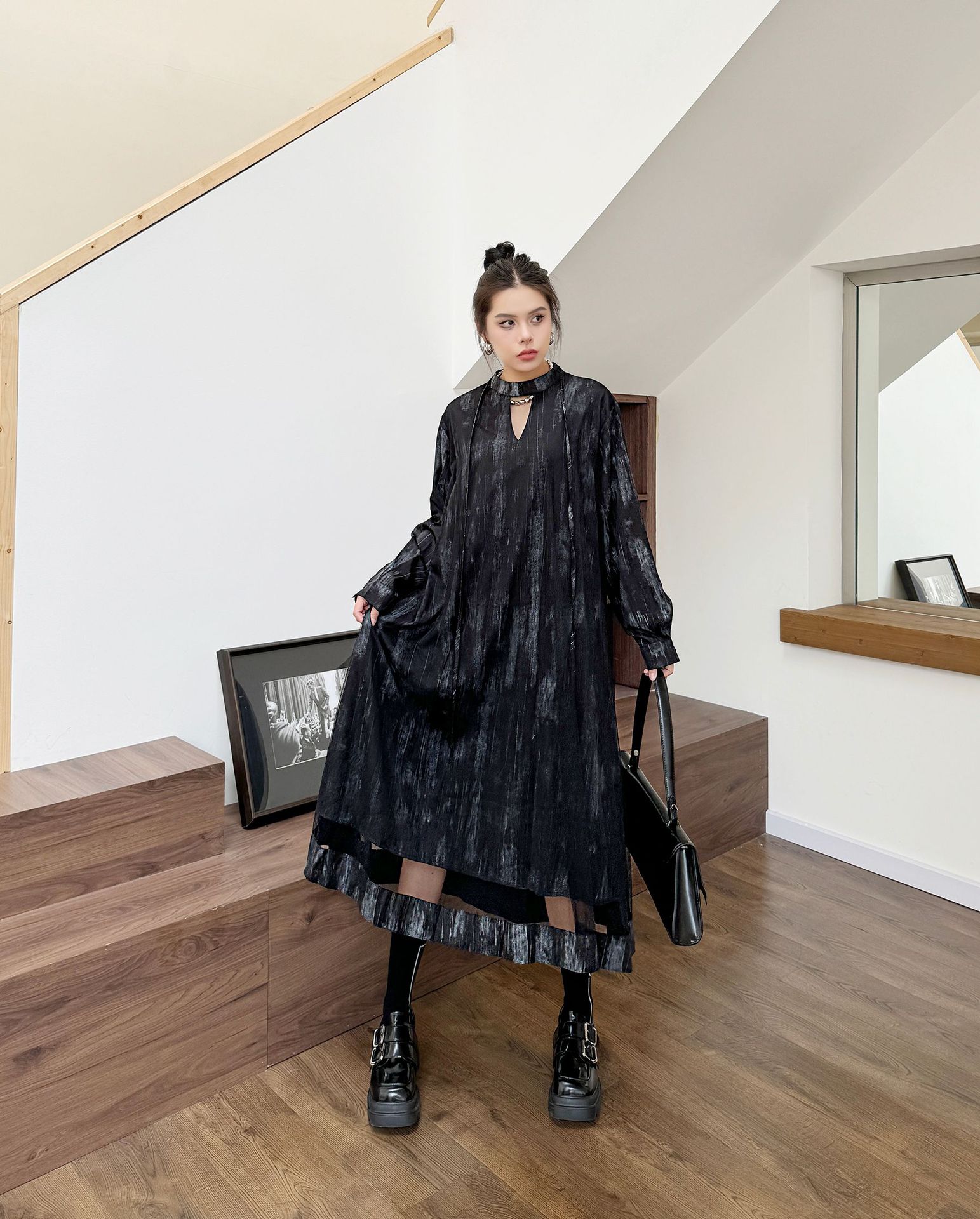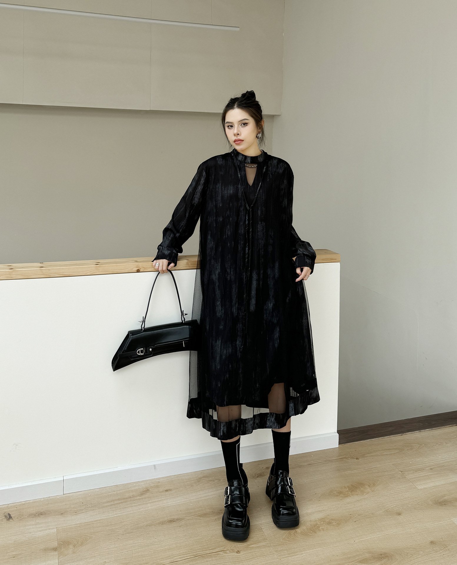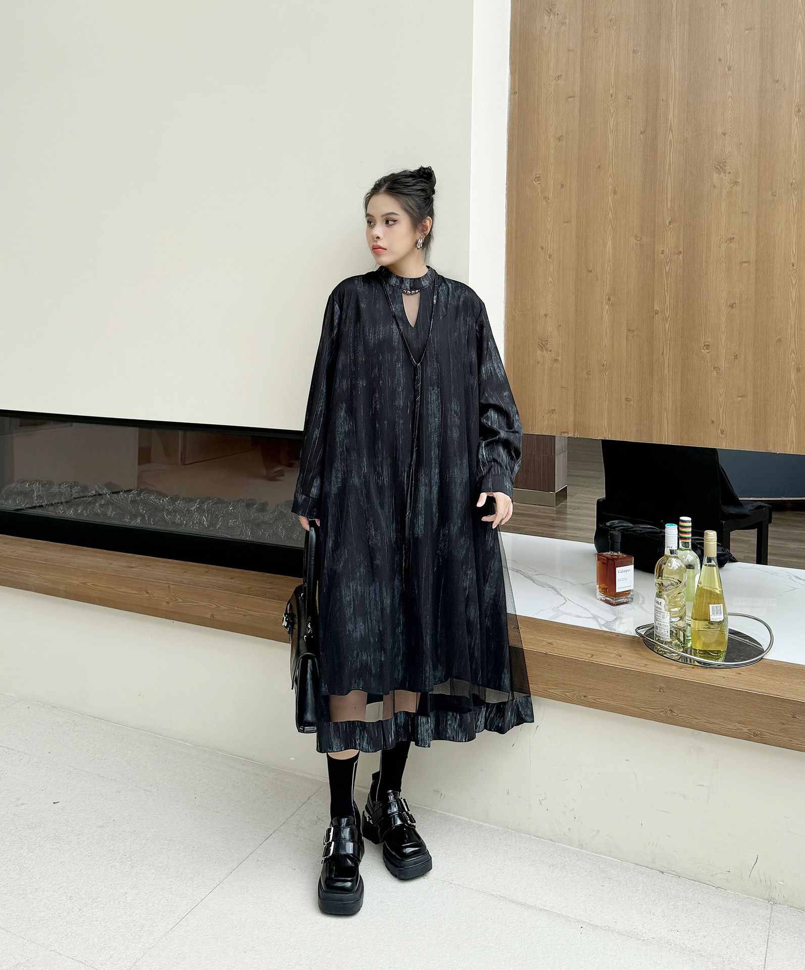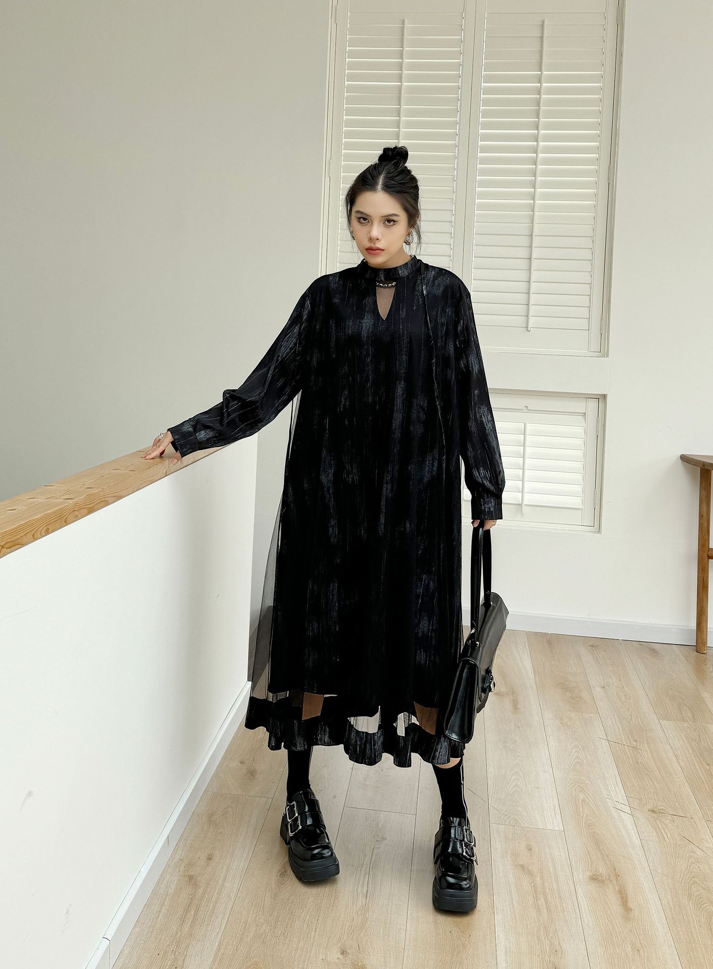 【商品名】【ワンピース】春 秋 冬 チュール切替 ドッキング風 ロング ワンピース 【AHシリーズ】