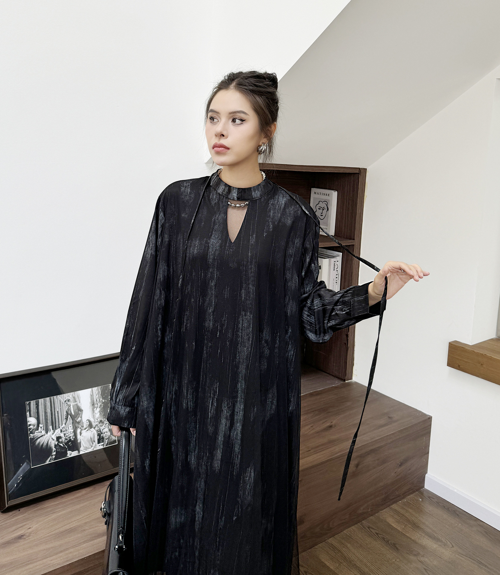 【ワンピース】春 秋 冬 チュール切替 ドッキング風 ロング ワンピース 【AHシリーズ】