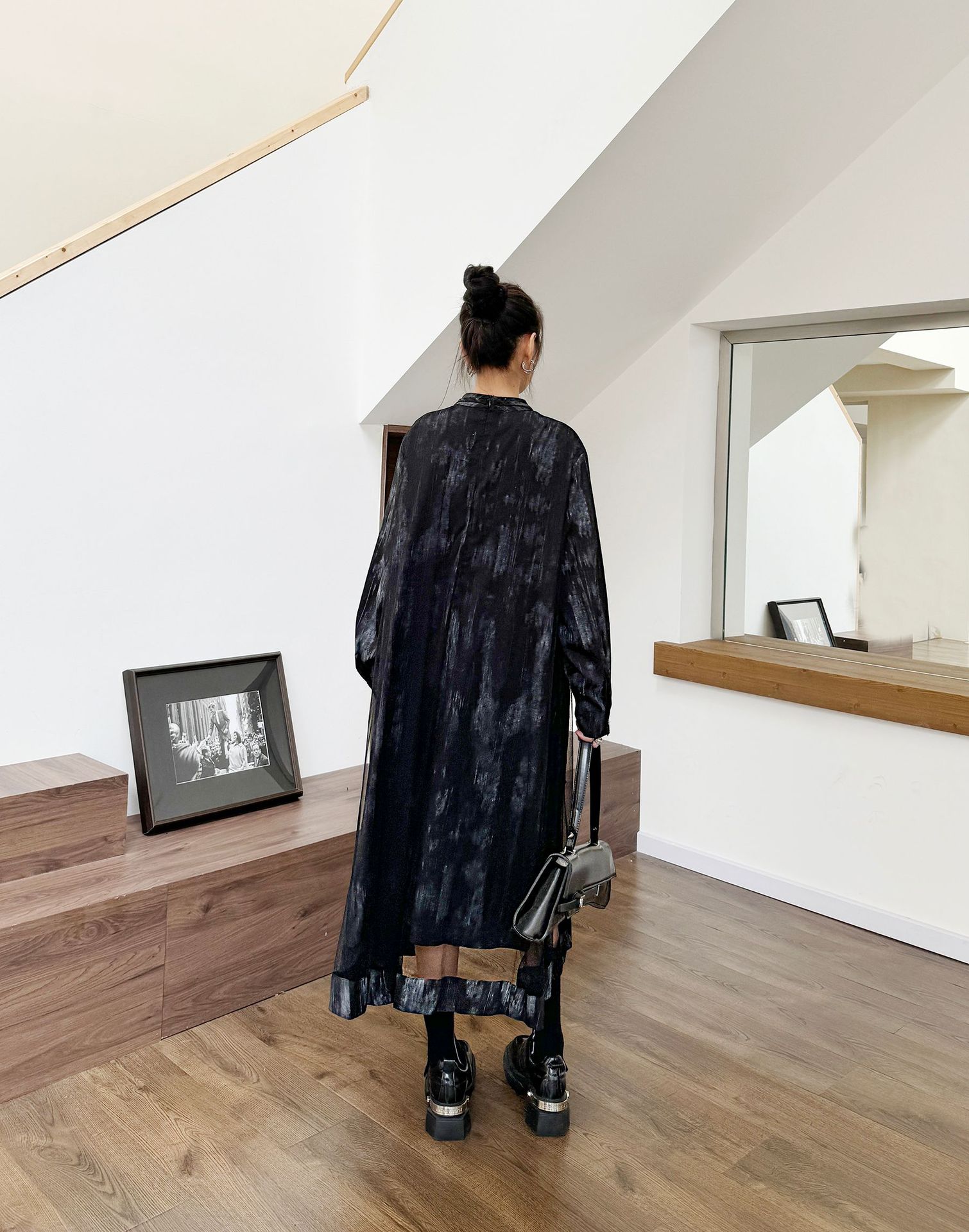 【ワンピース】韓国風 春秋新作 ゆったり大きめサイズ 体型カバー 花柄長袖ミディアムワンピース【SHシリーズ】