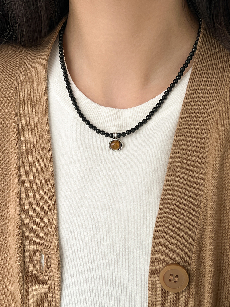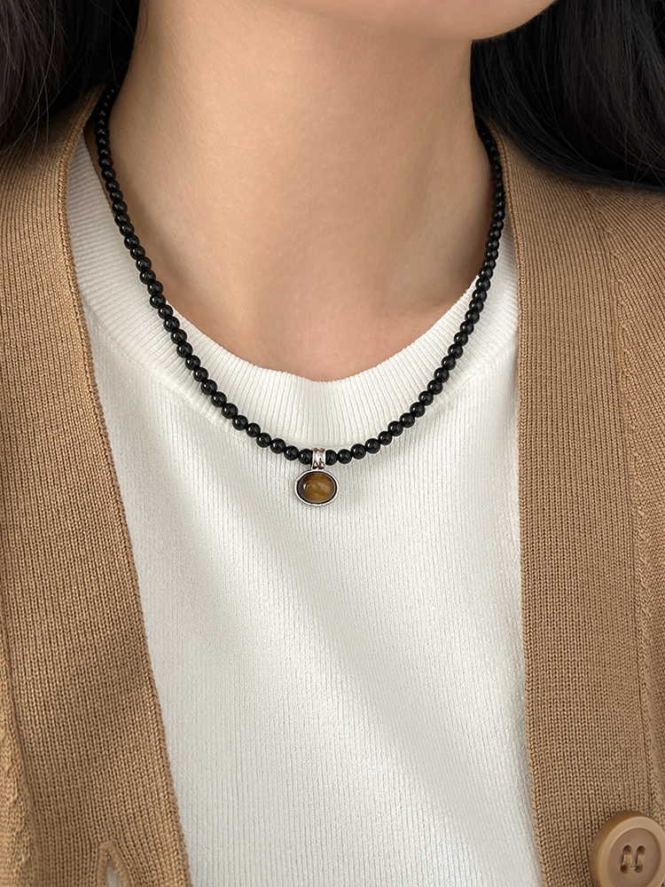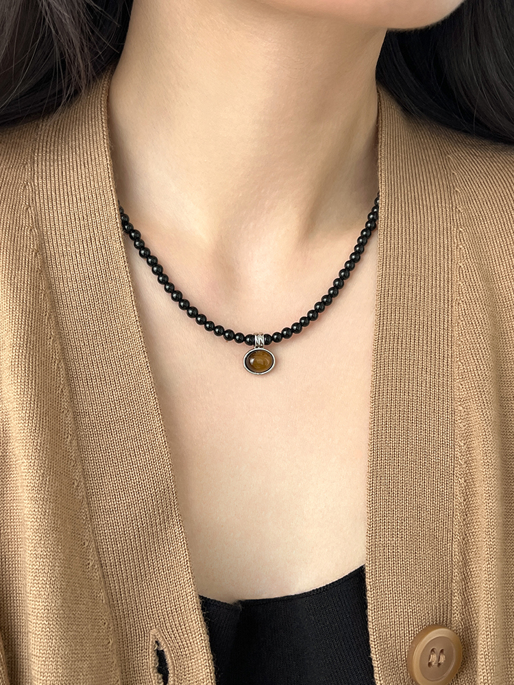 【🎁 B2G1|先行スタート!】【グッズ】色褪せ防止 ブラックオニキス タイガーアイ メラード ネックレス 上品 チョーカー チェーン ネックレス ニットチェーン