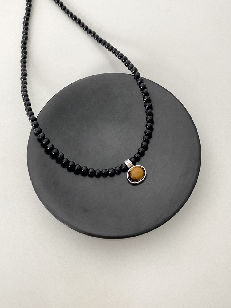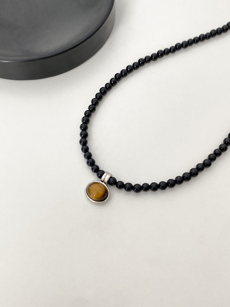 【商品名】【グッズ】色褪せ防止 ブラックオニキス タイガーアイ メラード ネックレス 上品 チョーカー チェーン ネックレス ニットチェーン
