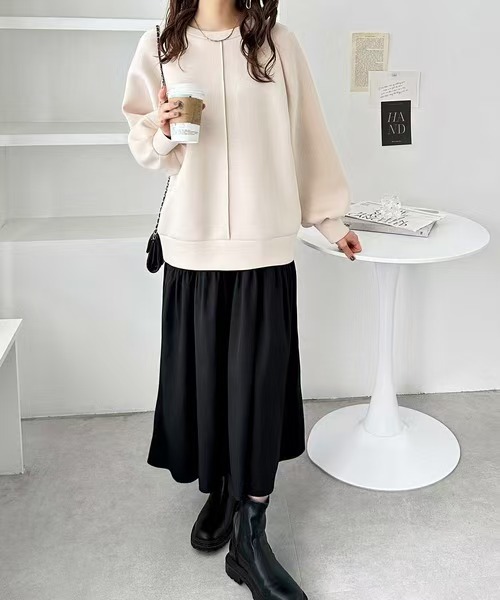 【ボトムス】落ち感 細見え ウール裏起毛 Aラインロング スカート 【JZシリーズ】