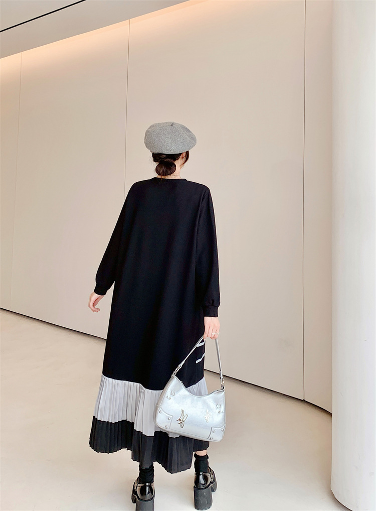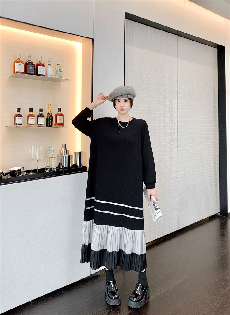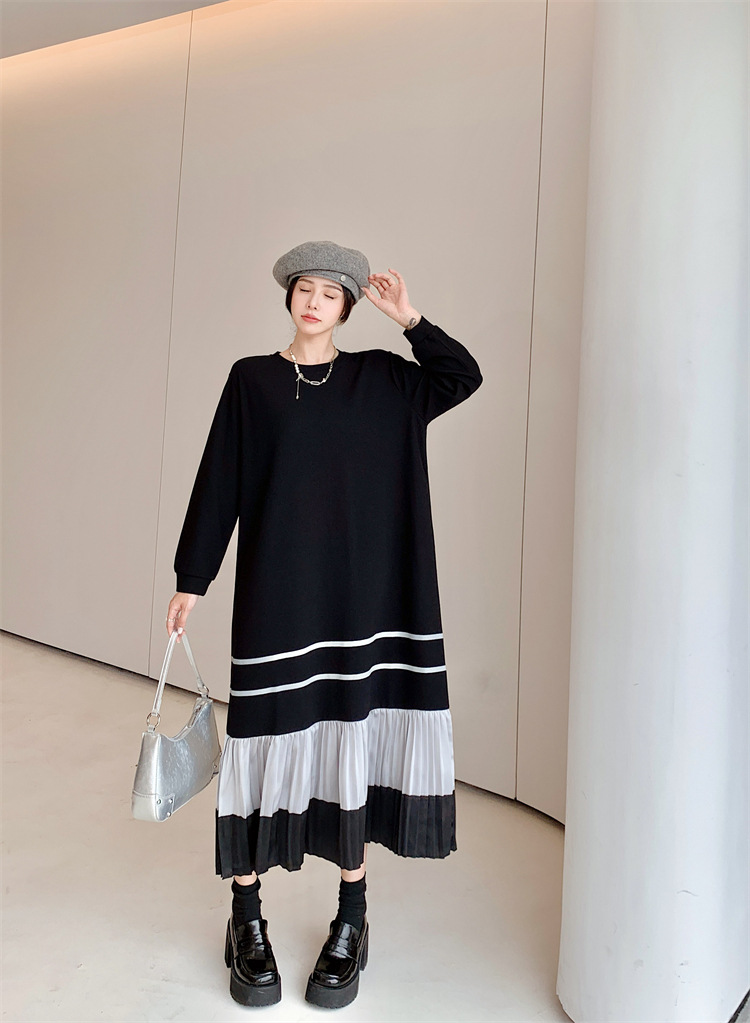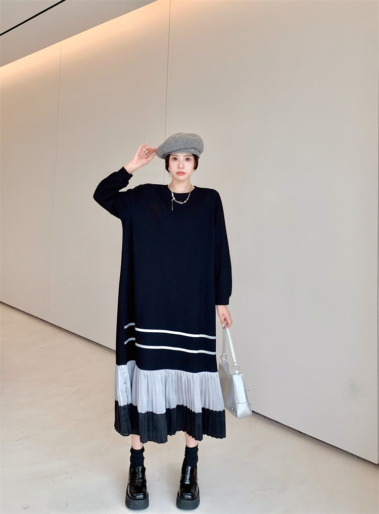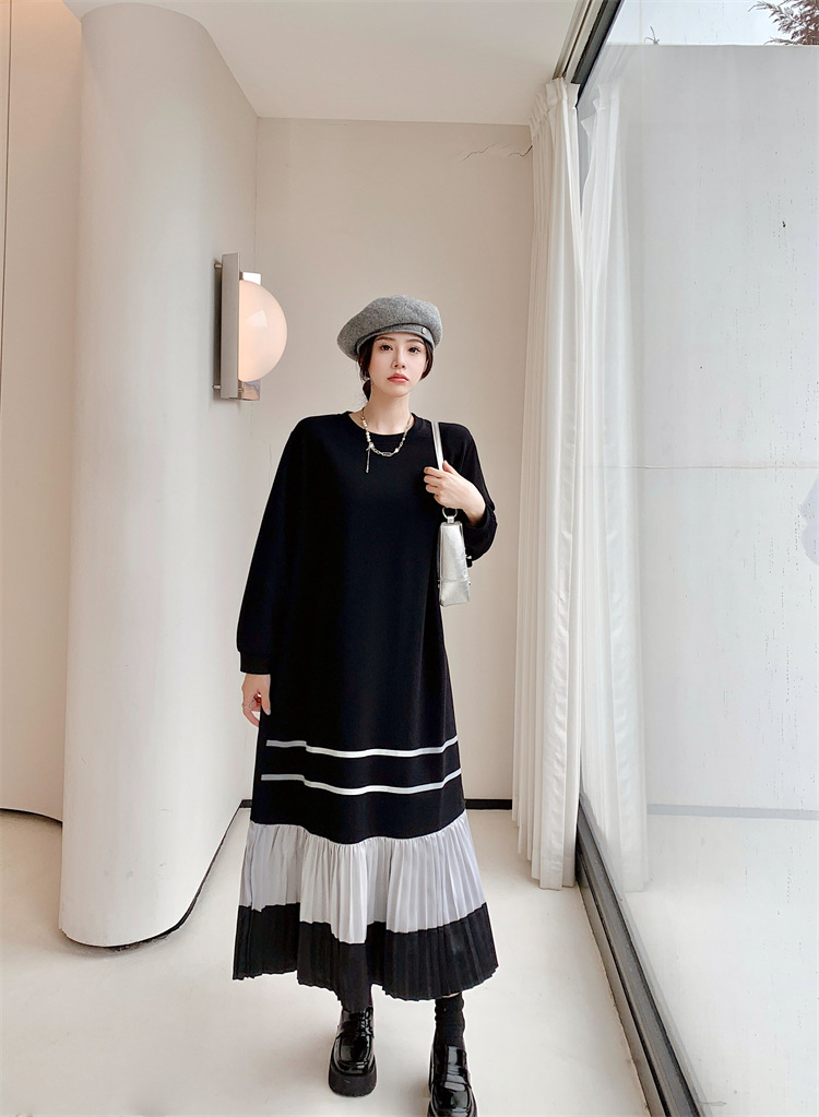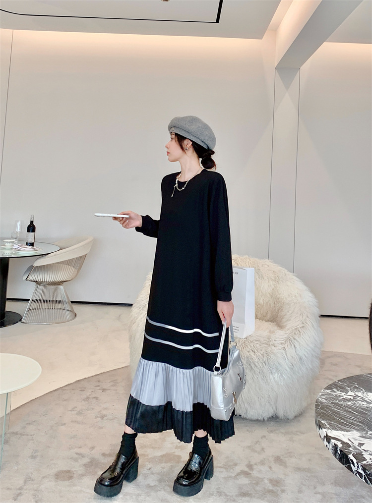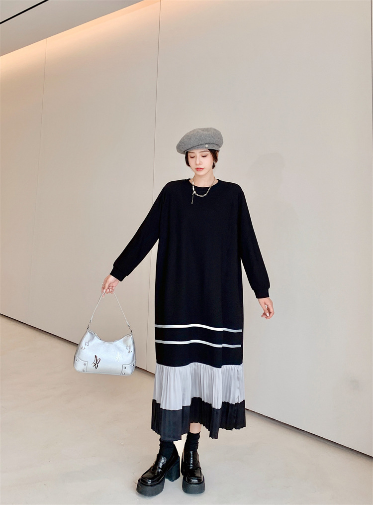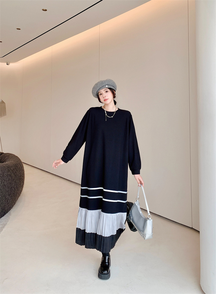 【ワンピース】韓国風 エレガント体型カバー 長袖ワンピース 大きいサイズ 着痩せ 膝下丈【JZシリーズ】