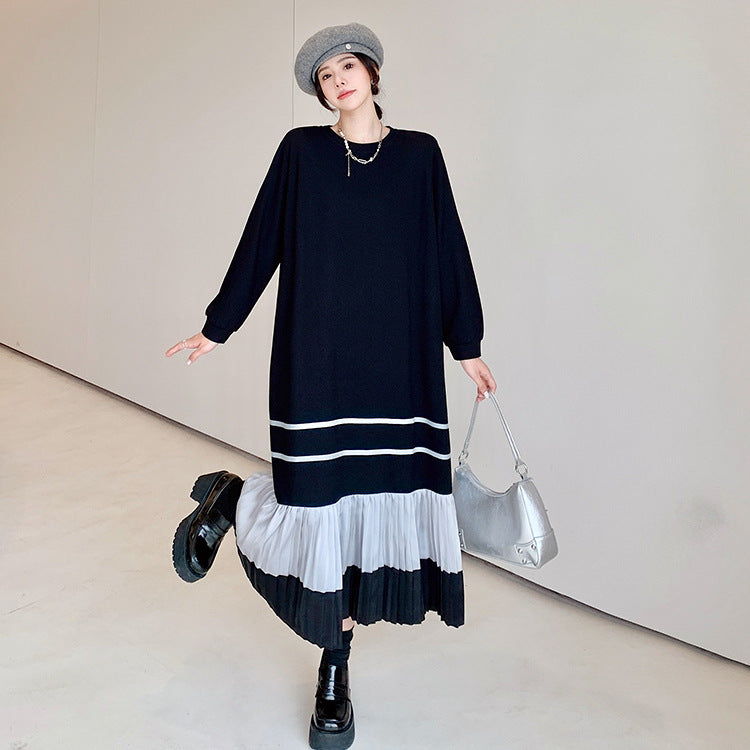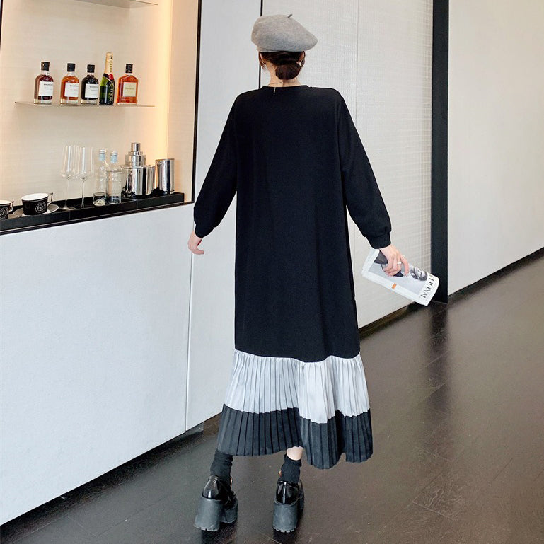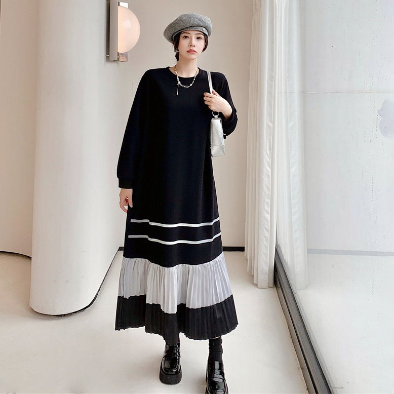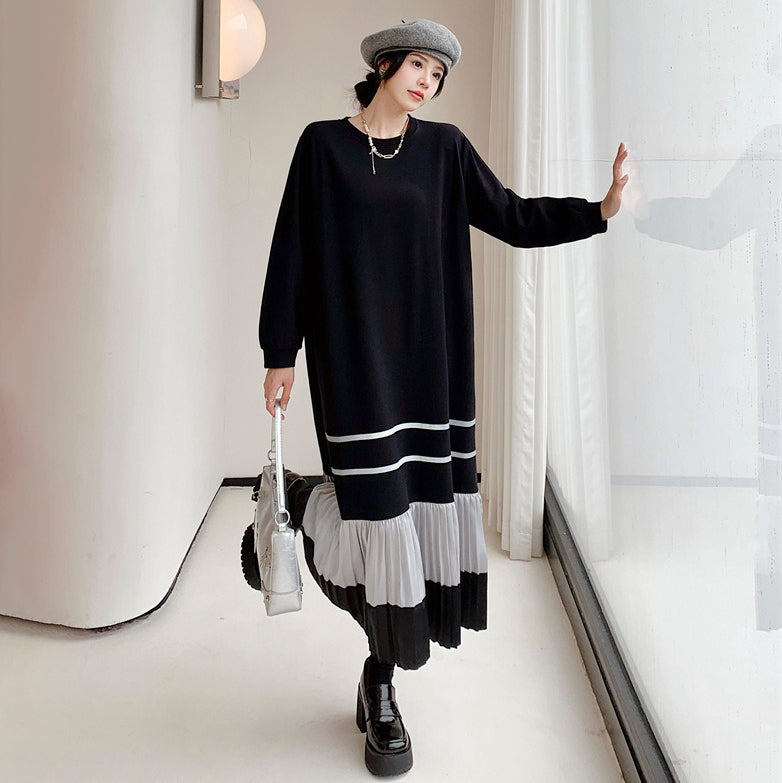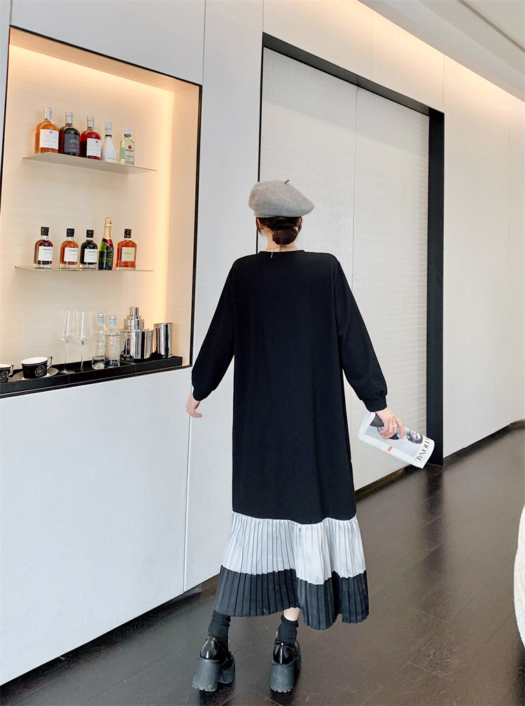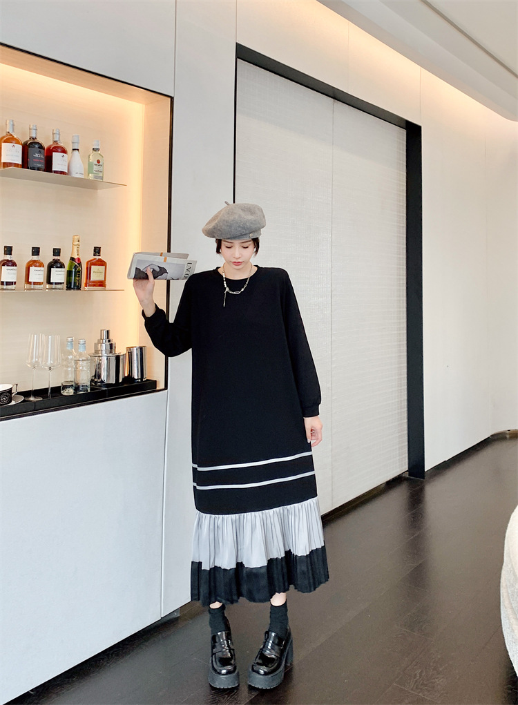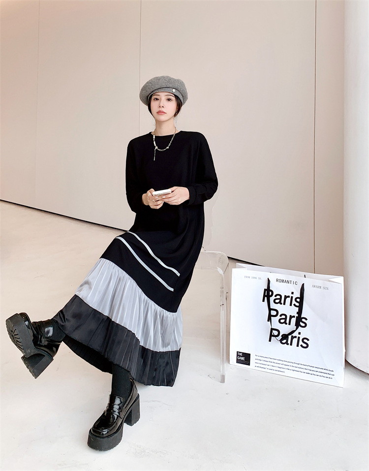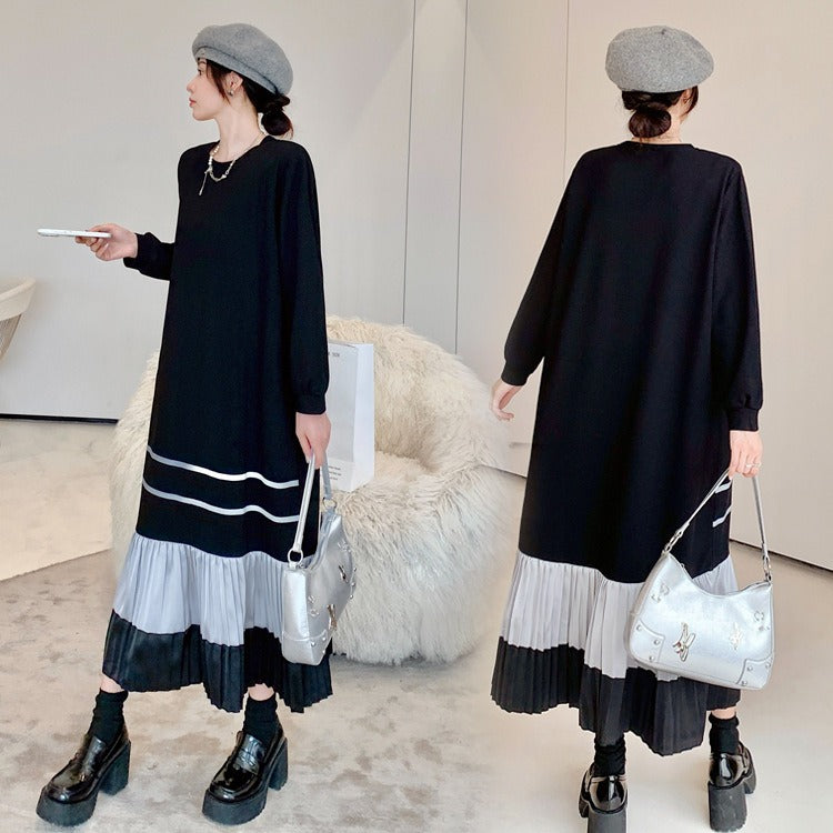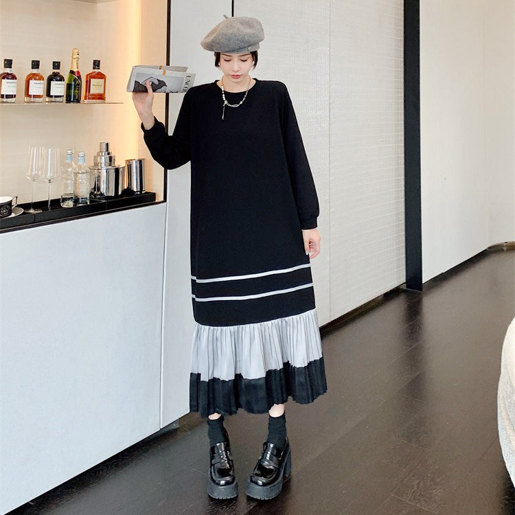 【ワンピース】韓国風 エレガント体型カバー 長袖ワンピース 大きいサイズ 着痩せ 膝下丈【JZシリーズ】