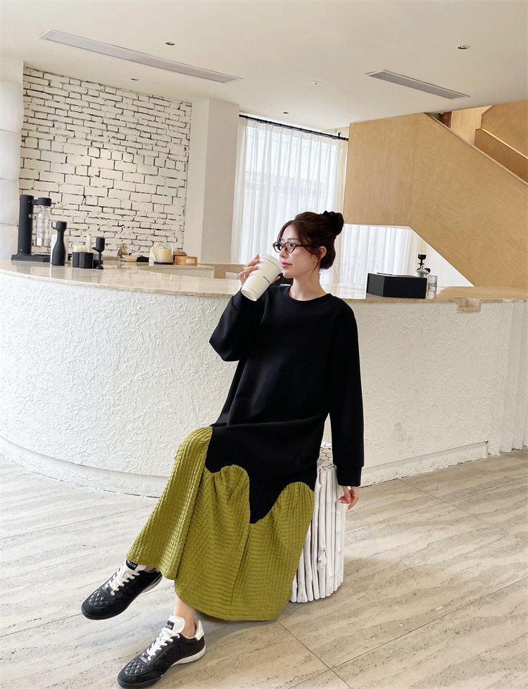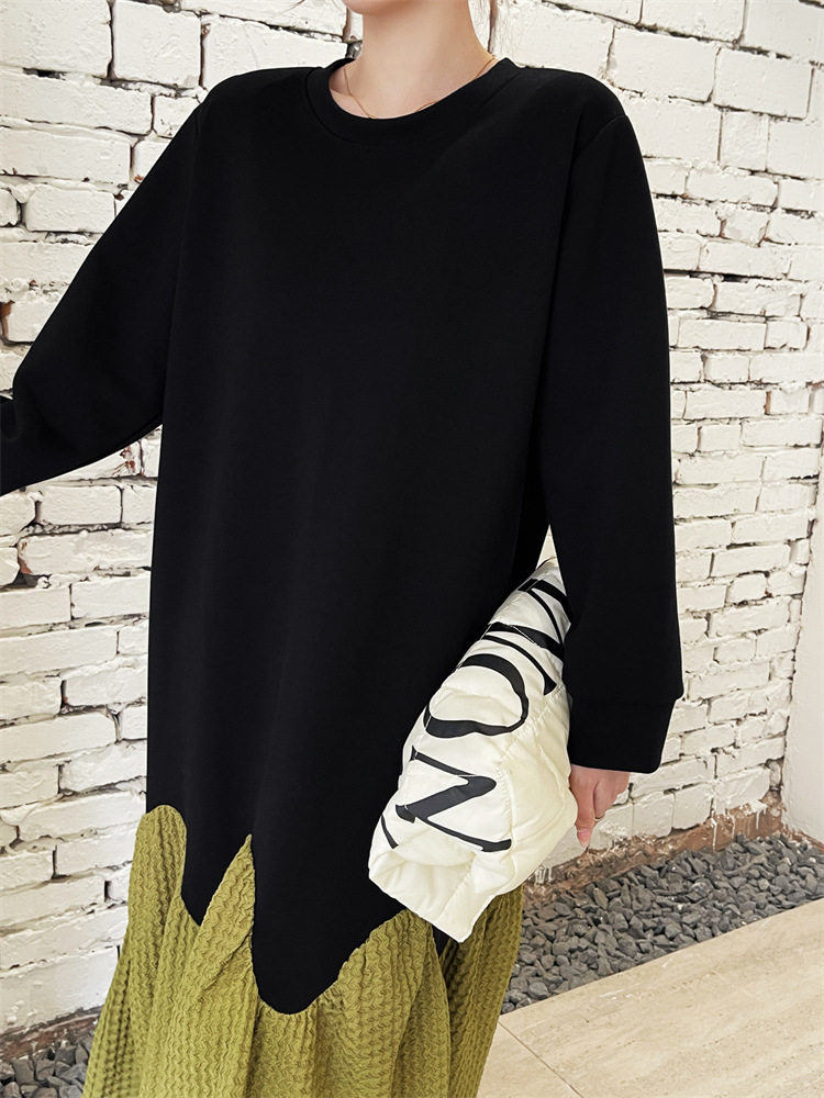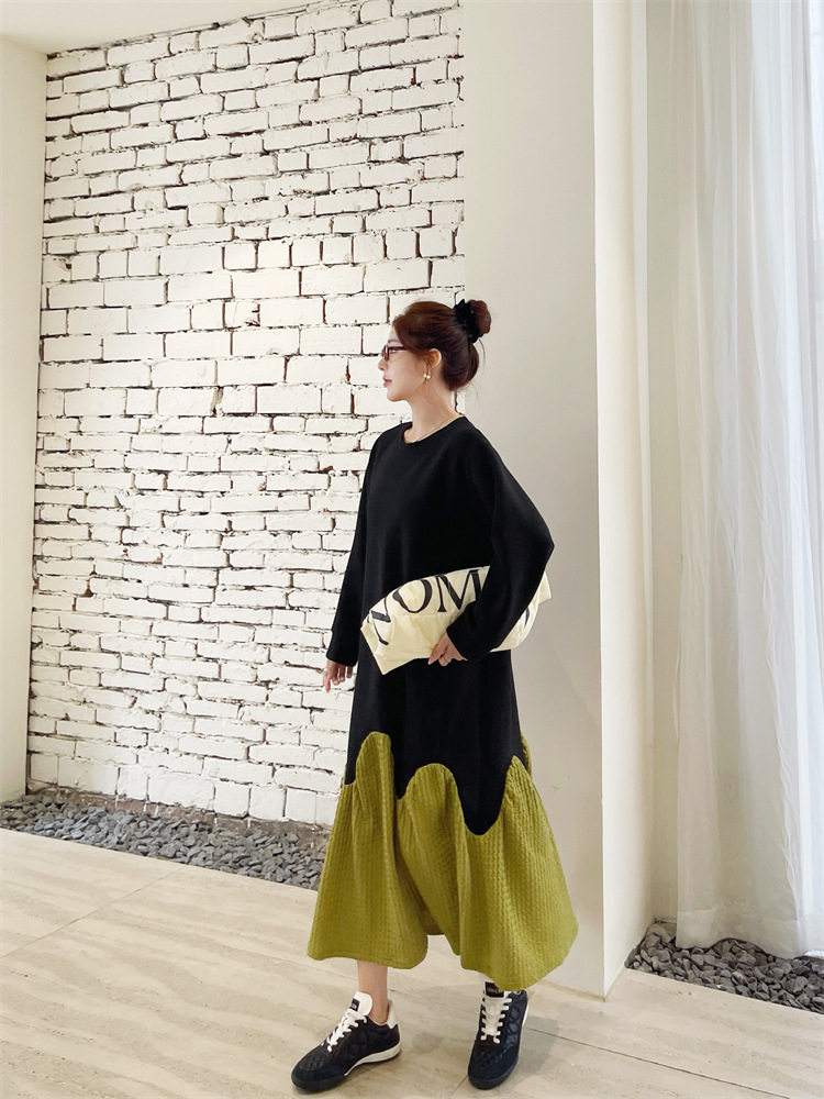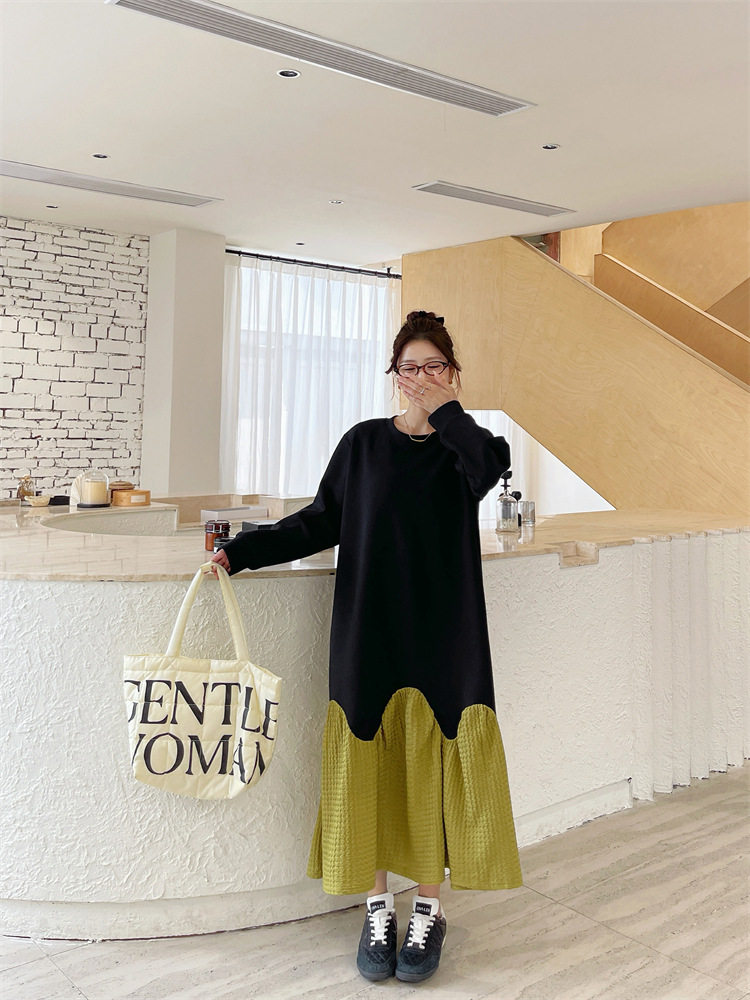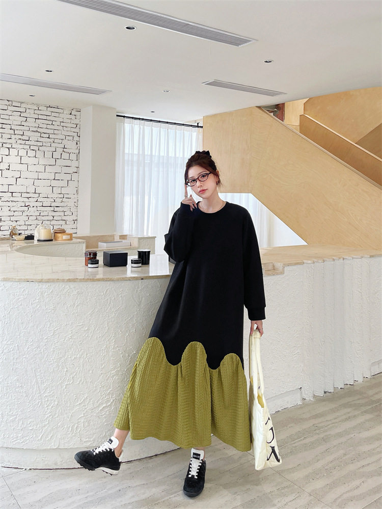 【ワンピース】秋冬切替Aライン 大きいサイズ 体型カバー フリル裾 厚手 長袖ワンピース【JZシリーズ】