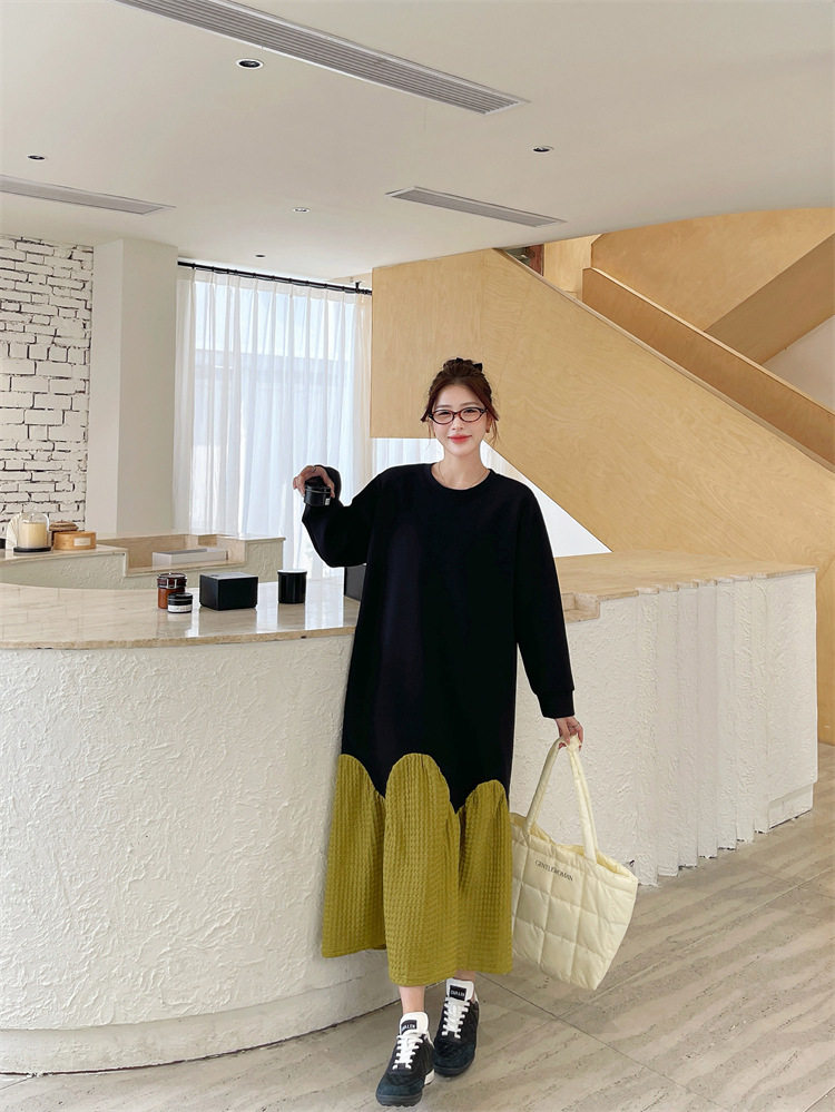 【商品名】【ワンピース】秋冬切替Aライン 大きいサイズ 体型カバー フリル裾 厚手 長袖ワンピース【JZシリーズ】