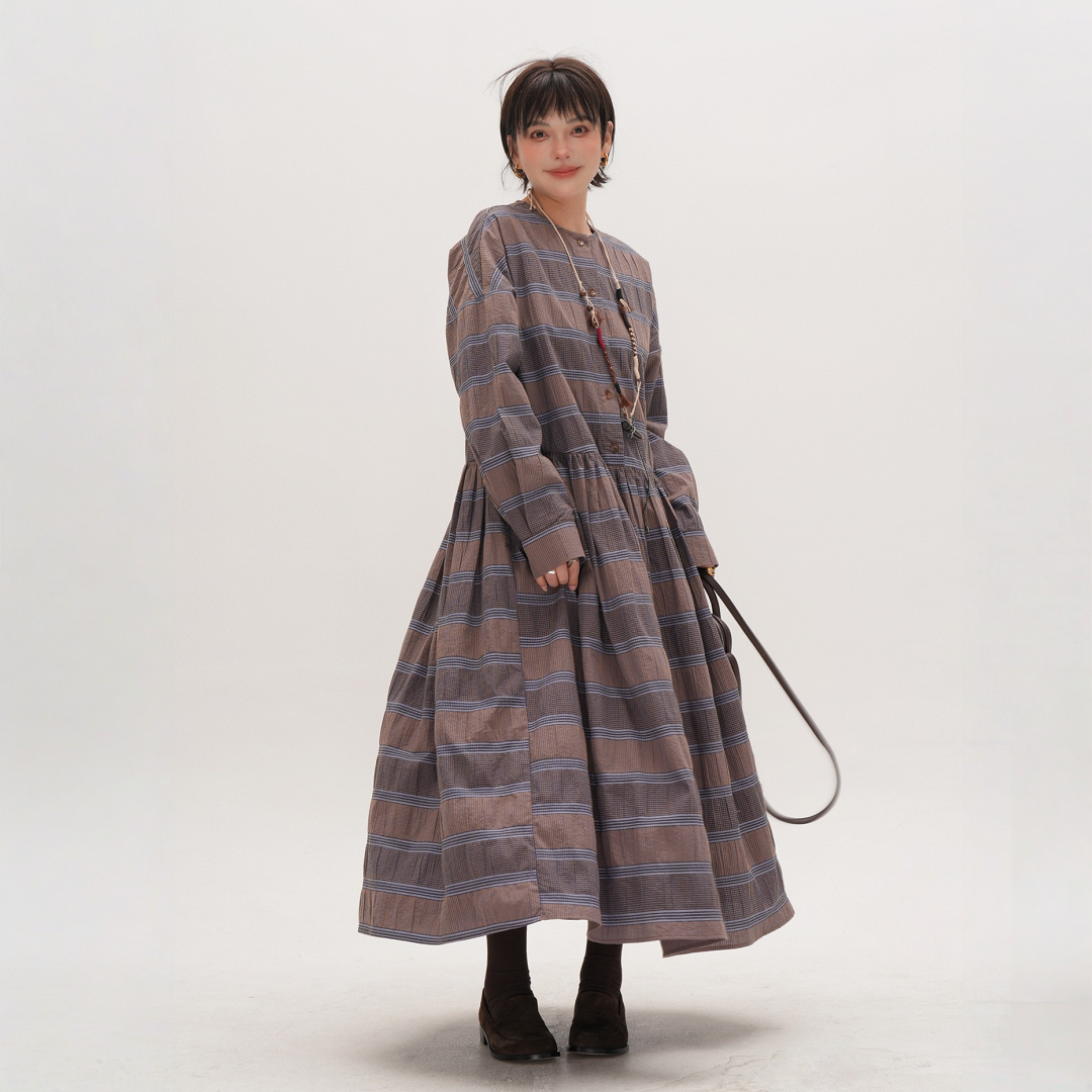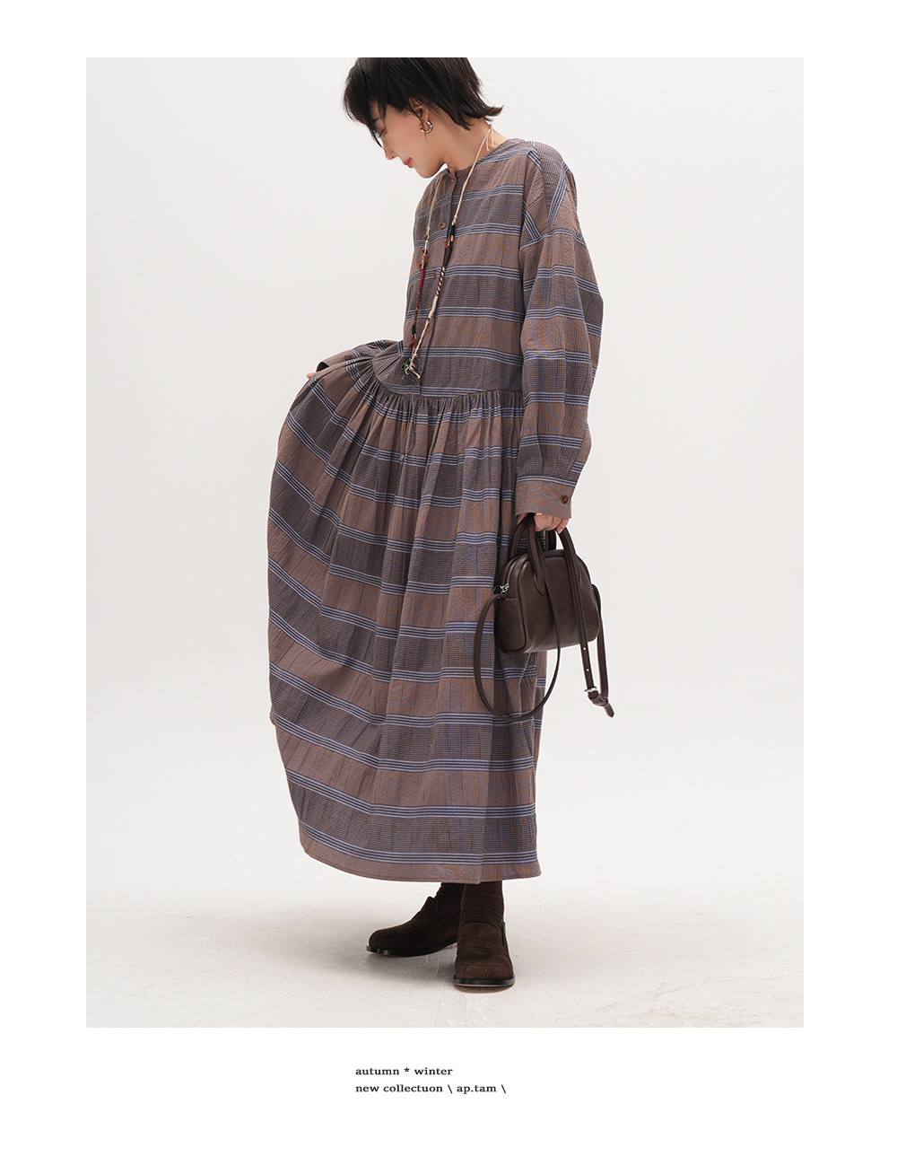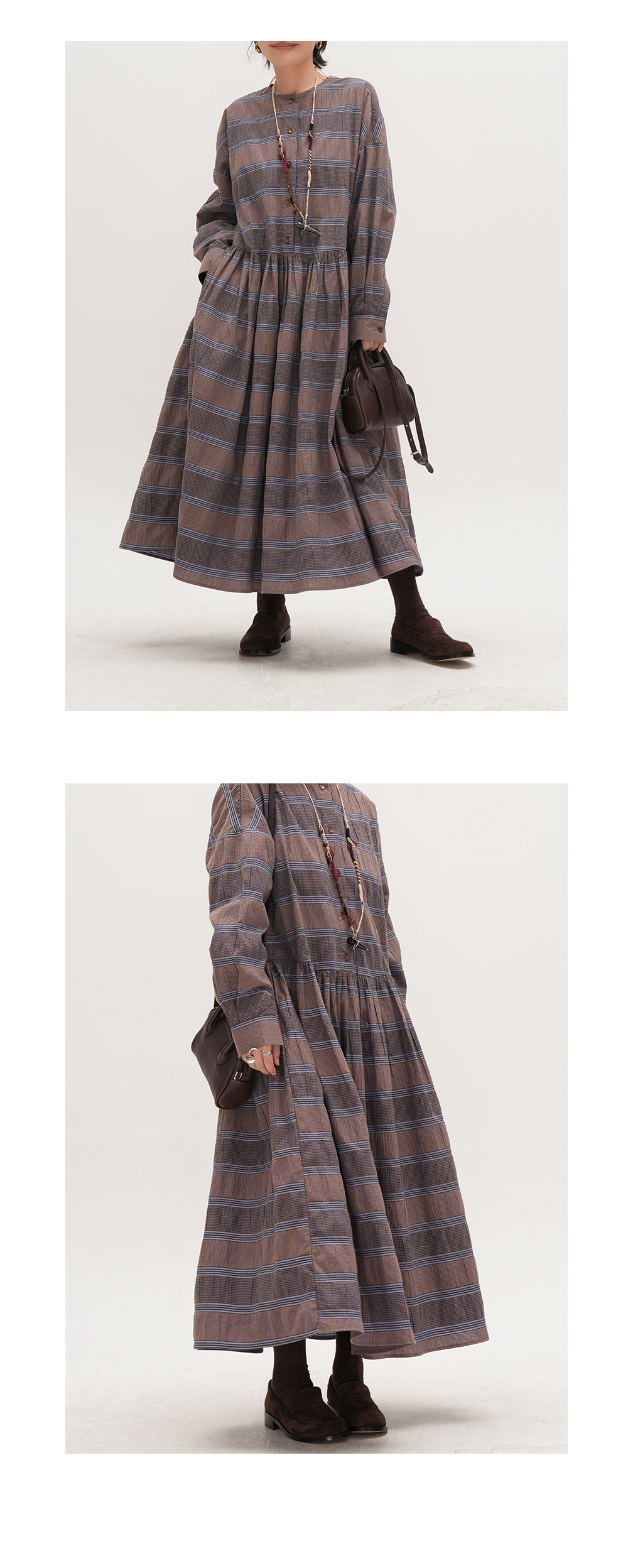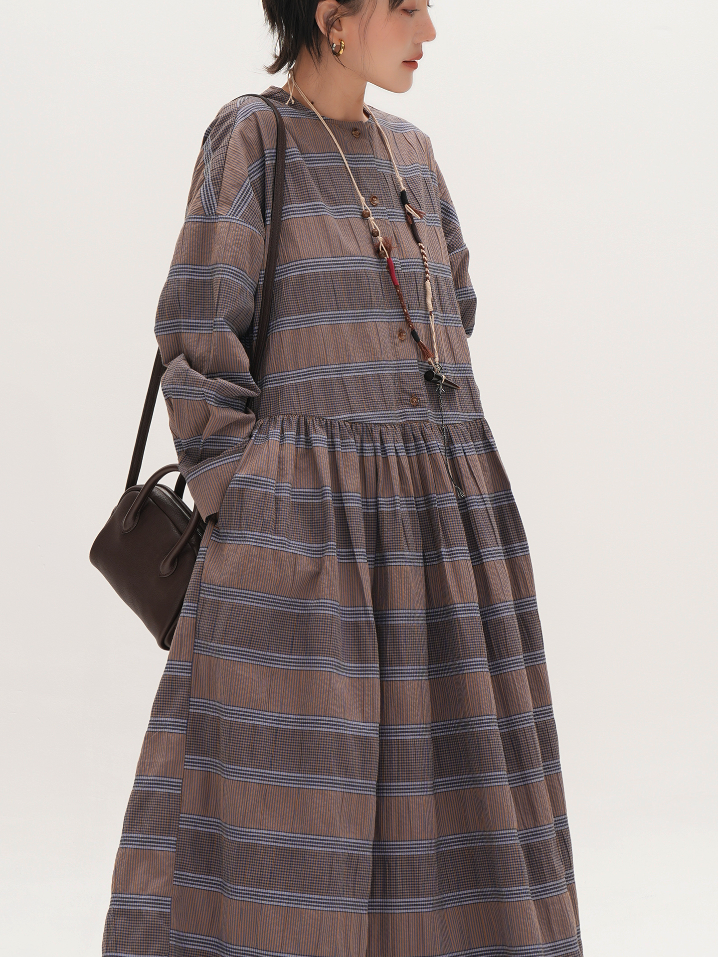 【商品名】【ワンピース】春 秋 チェック柄 着痩せ効果 ミディ丈 ニッチ 長袖 ワンピース 【JZシリーズ】