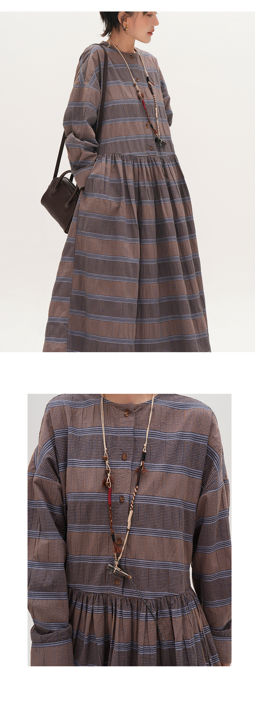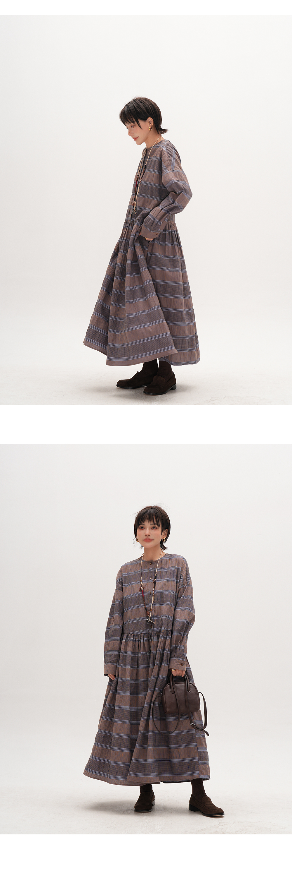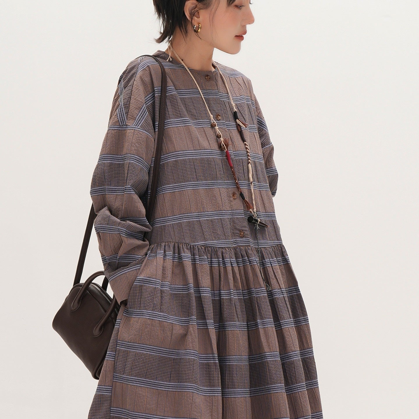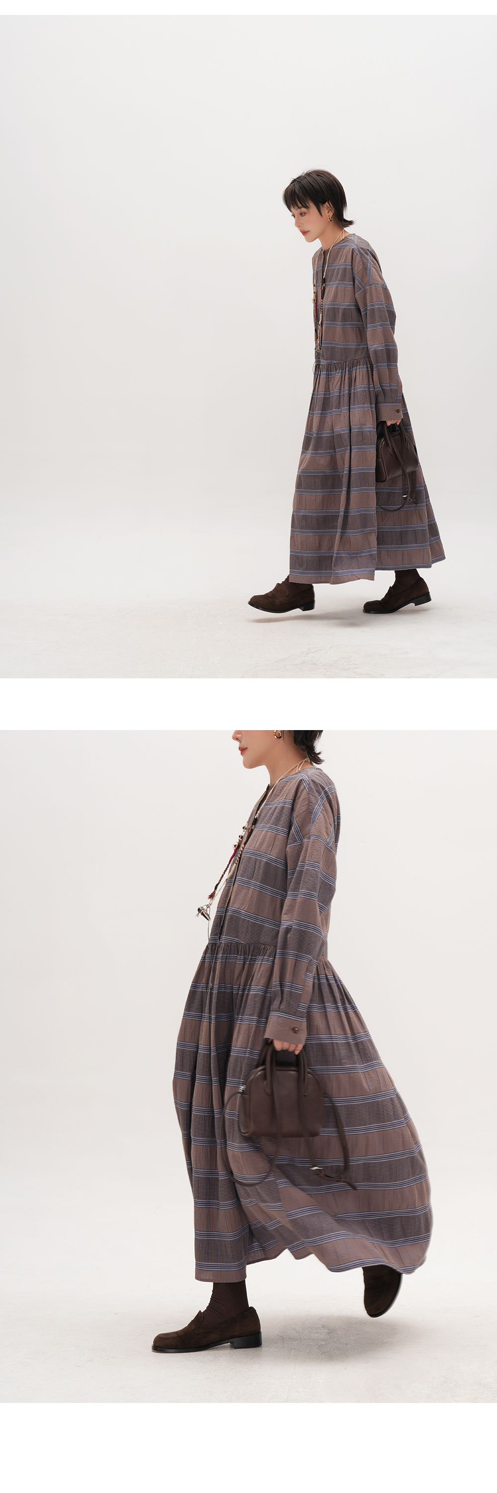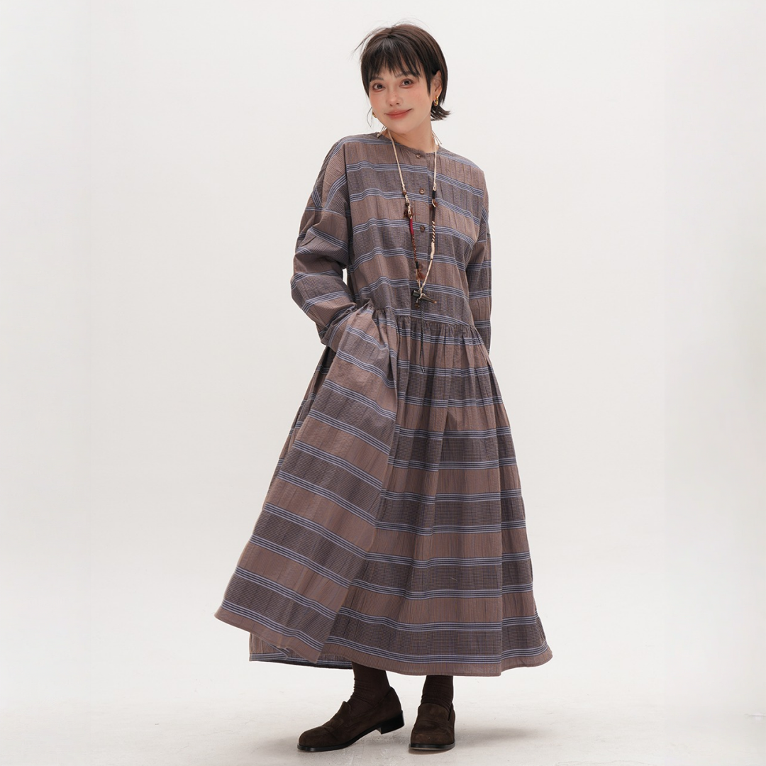 【商品名】【ワンピース】春 秋 チェック柄 着痩せ効果 ミディ丈 ニッチ 長袖 ワンピース 【JZシリーズ】