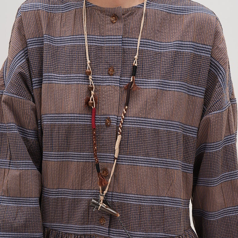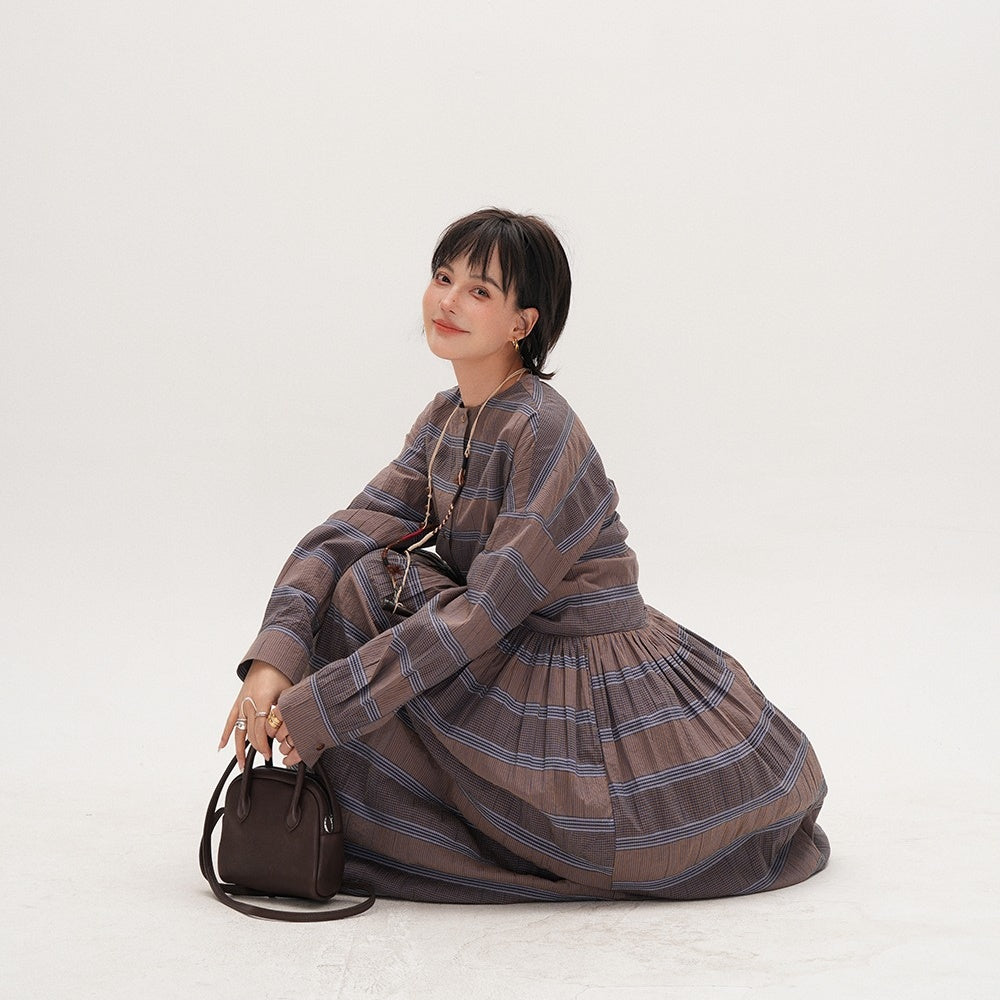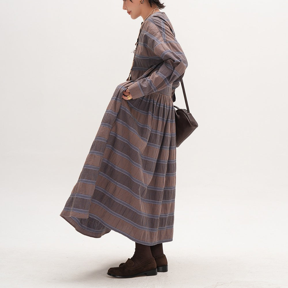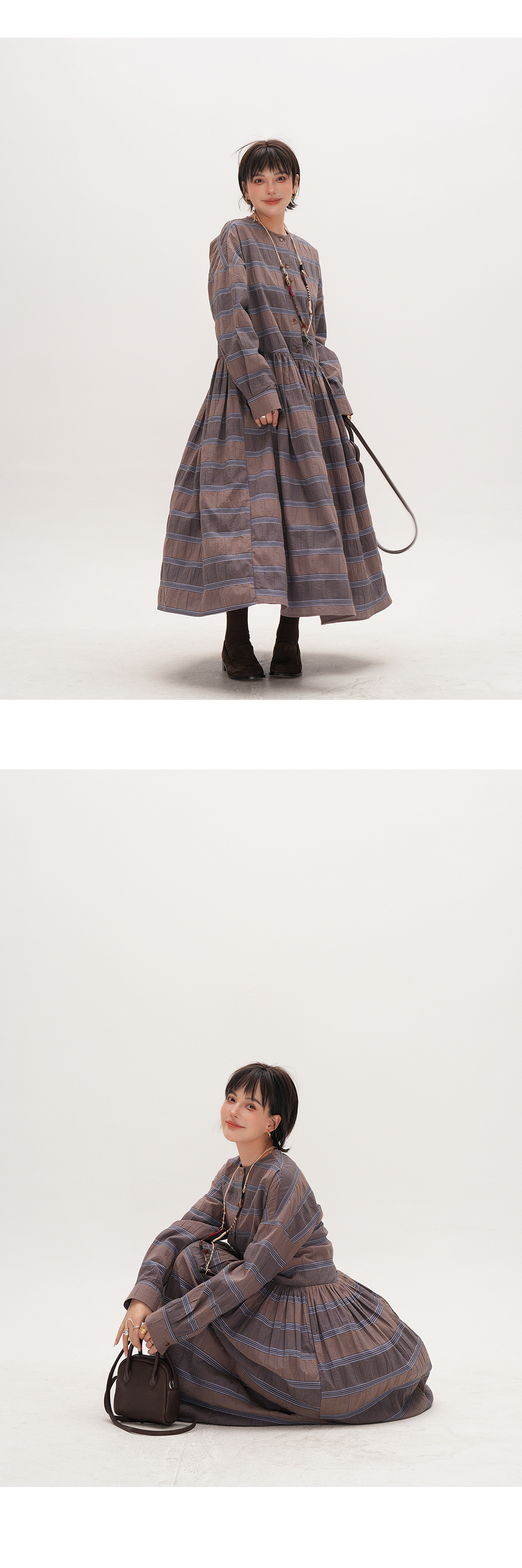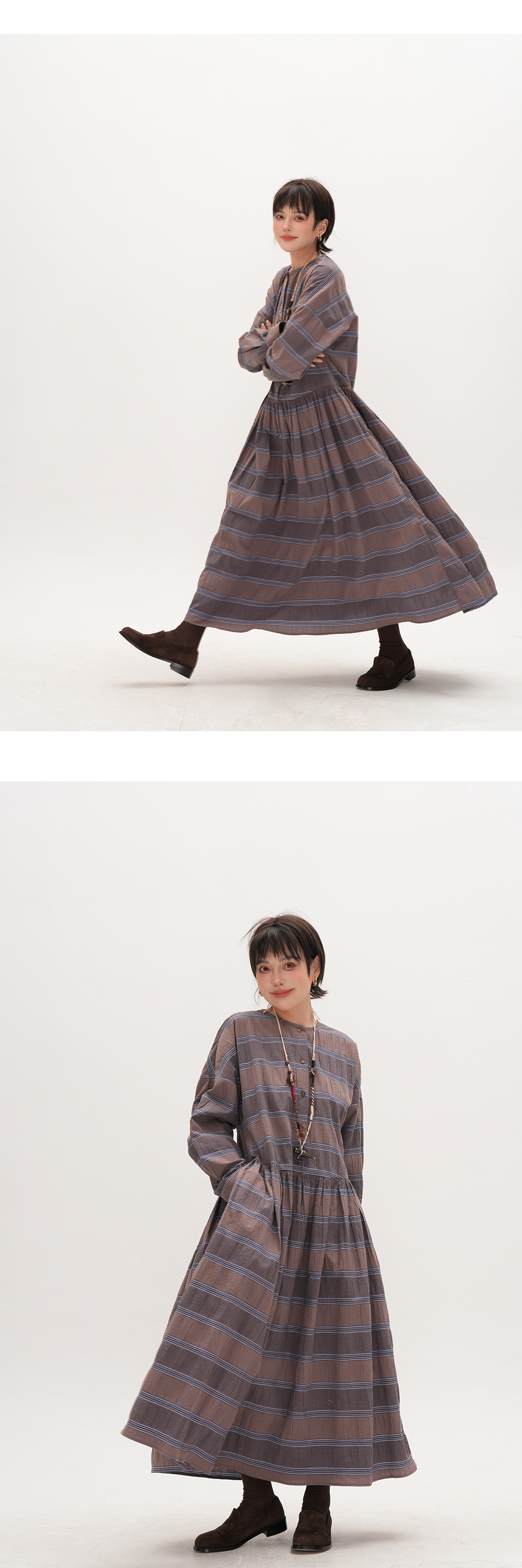 【商品名】【ワンピース】春 秋 チェック柄 着痩せ効果 ミディ丈 ニッチ 長袖 ワンピース 【JZシリーズ】