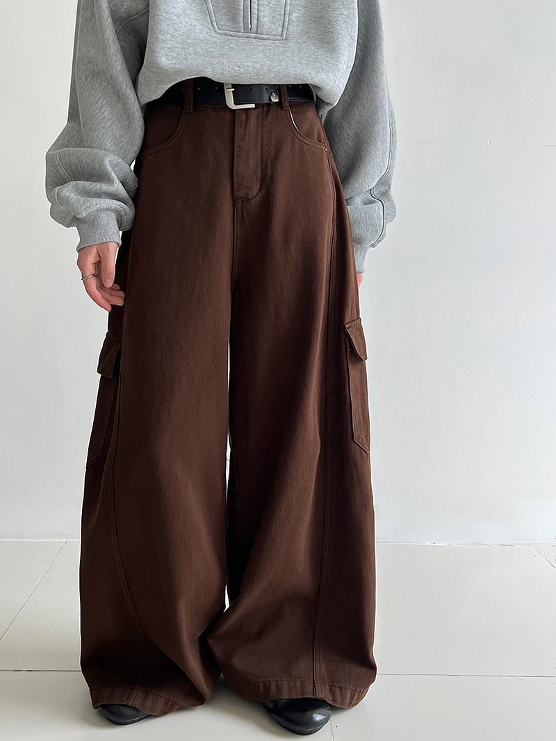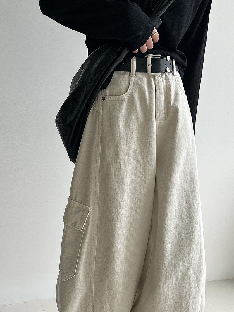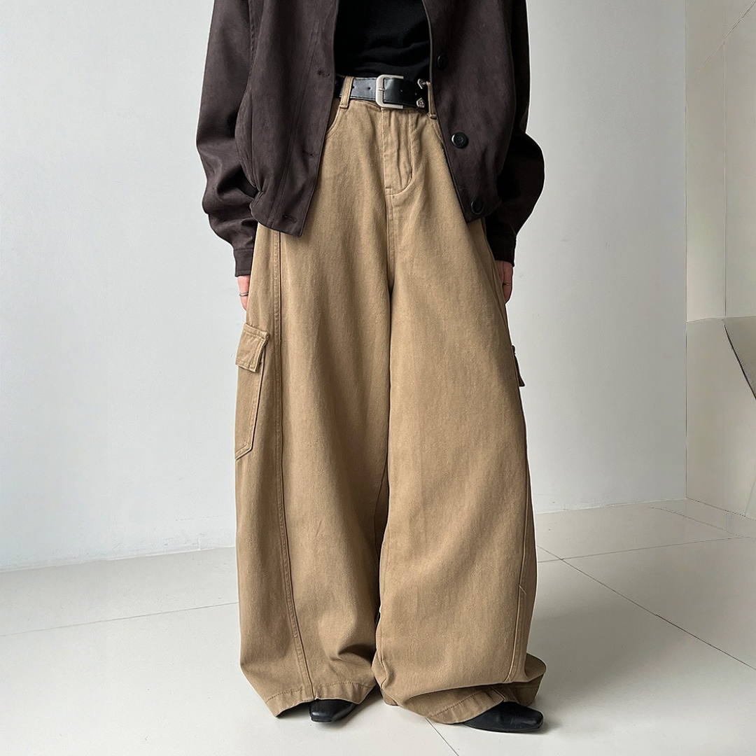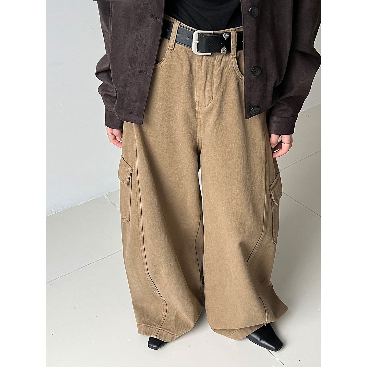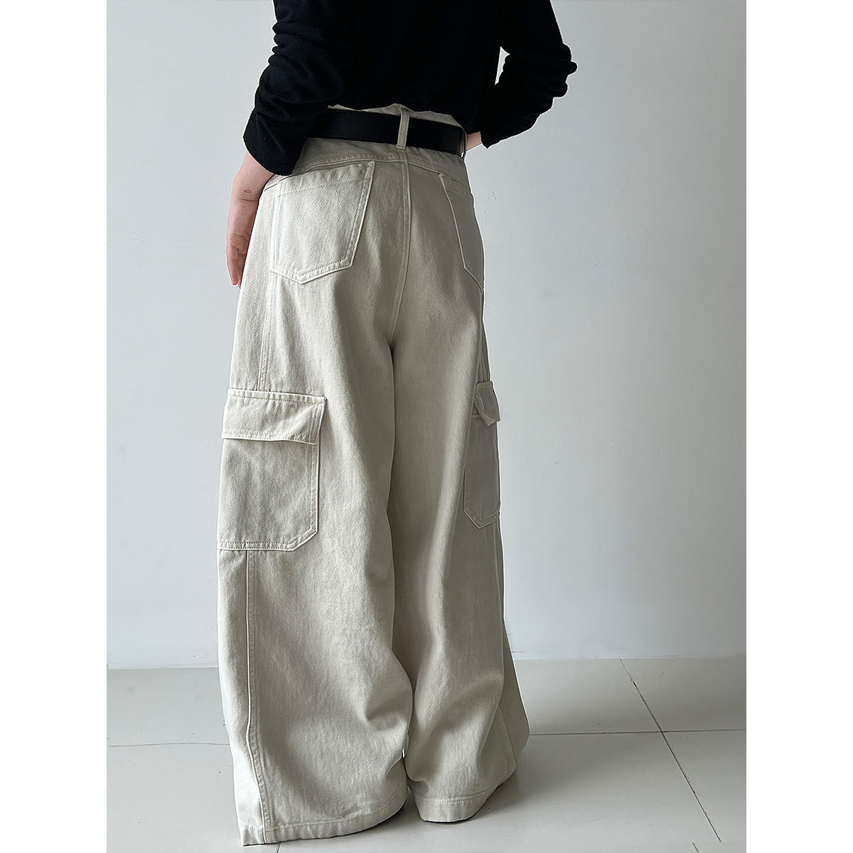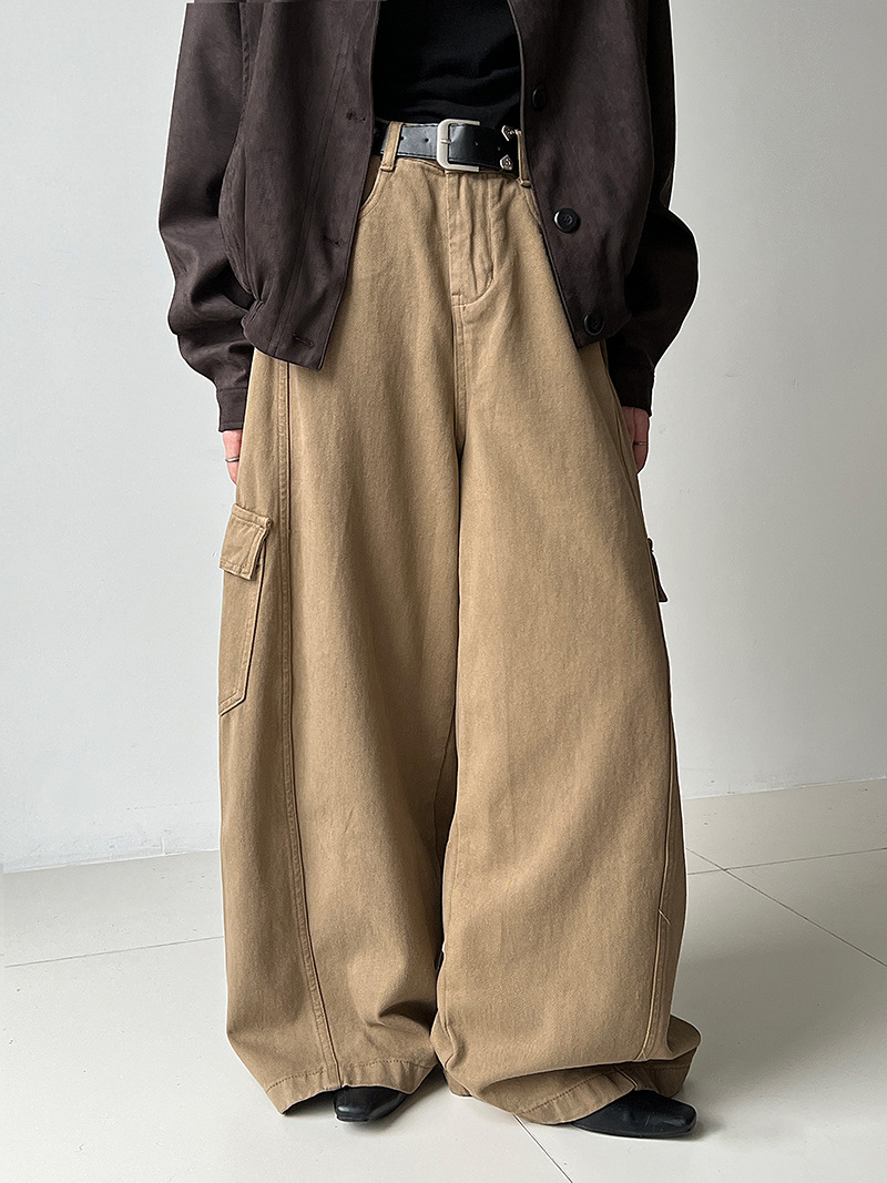 【商品名】【ボトムス】春 秋 冬 ワーク風 レトロ 大きめポケット ワイドパンツ 【JZシリーズ】