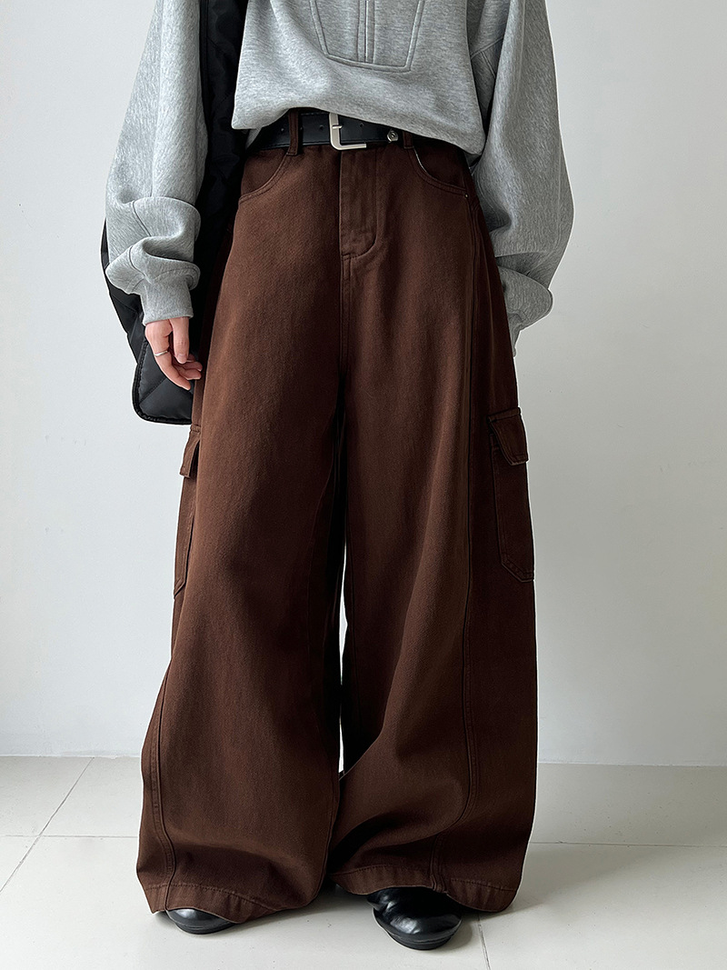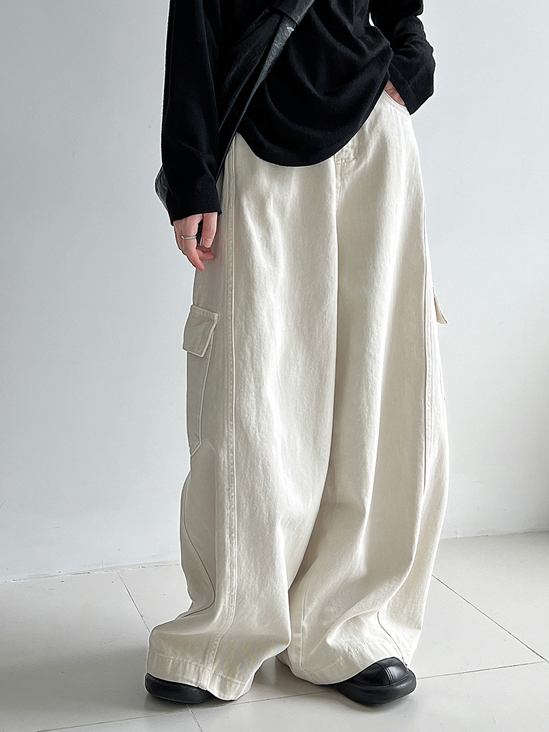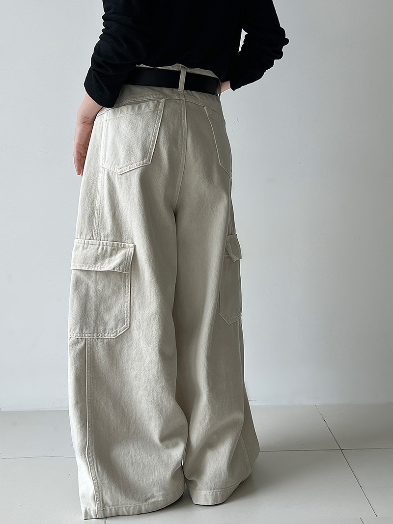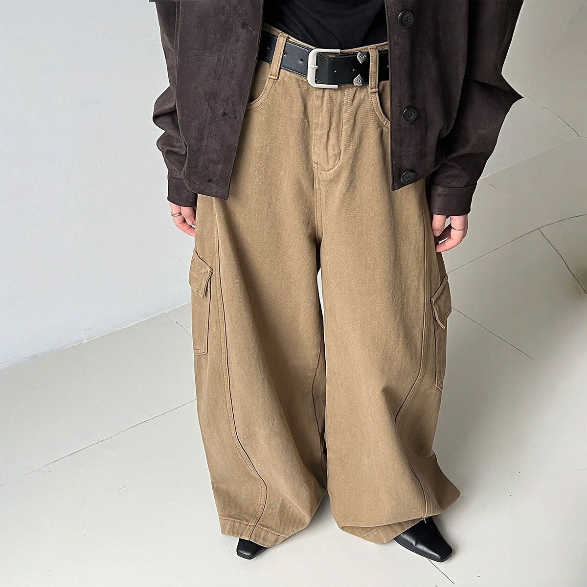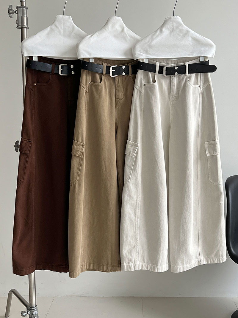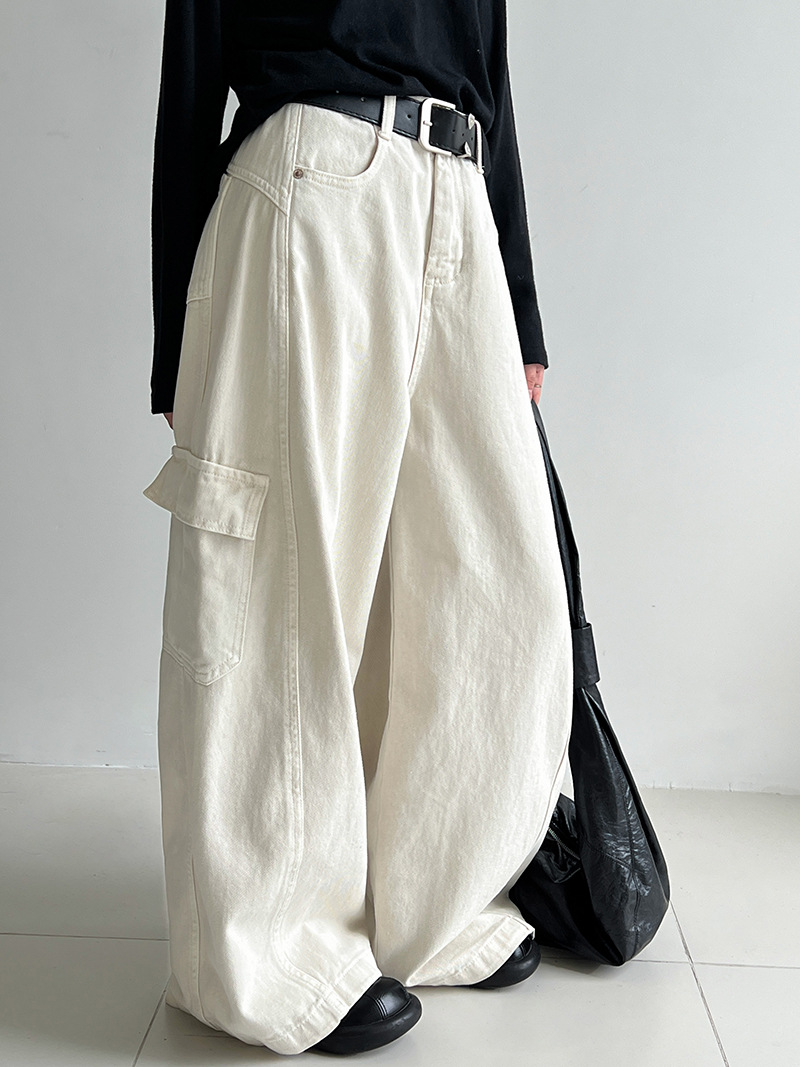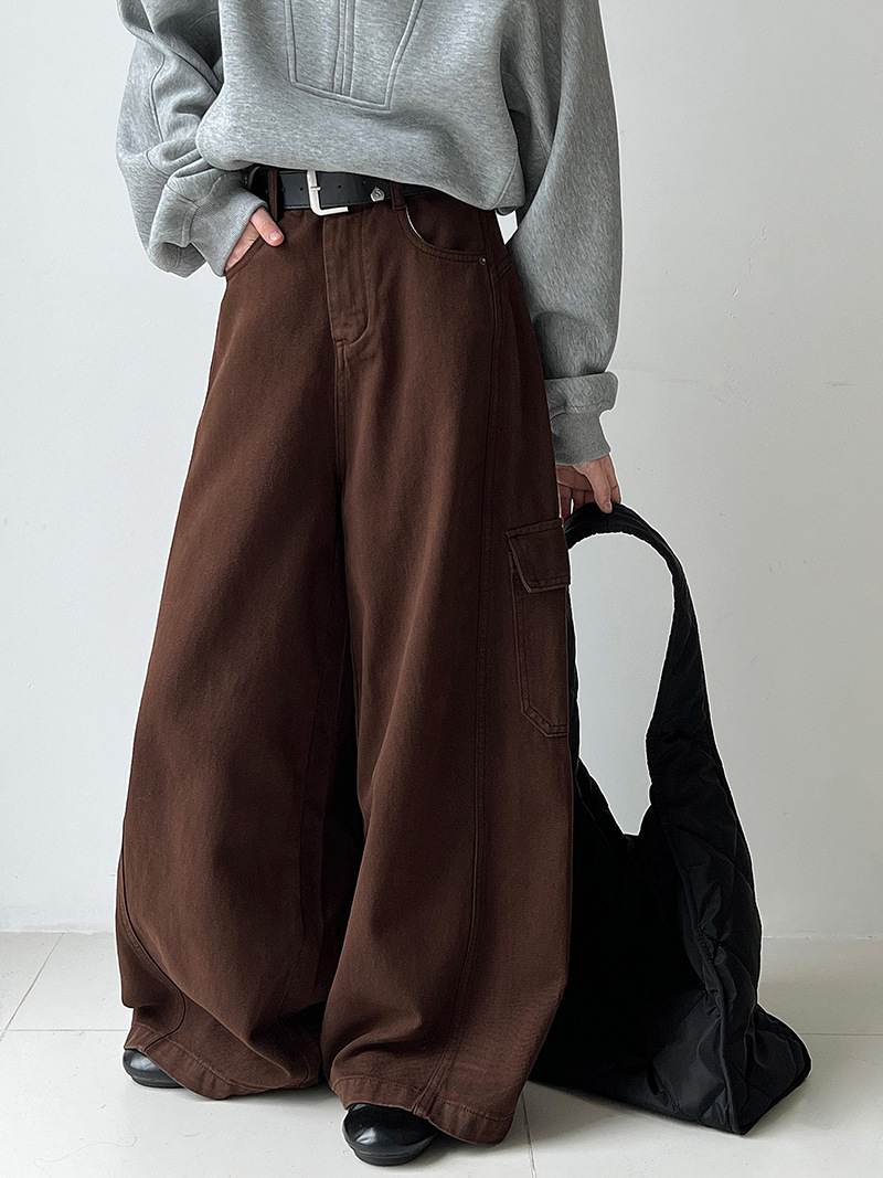 【商品名】【ボトムス】春 秋 冬 ワーク風 レトロ 大きめポケット ワイドパンツ 【JZシリーズ】