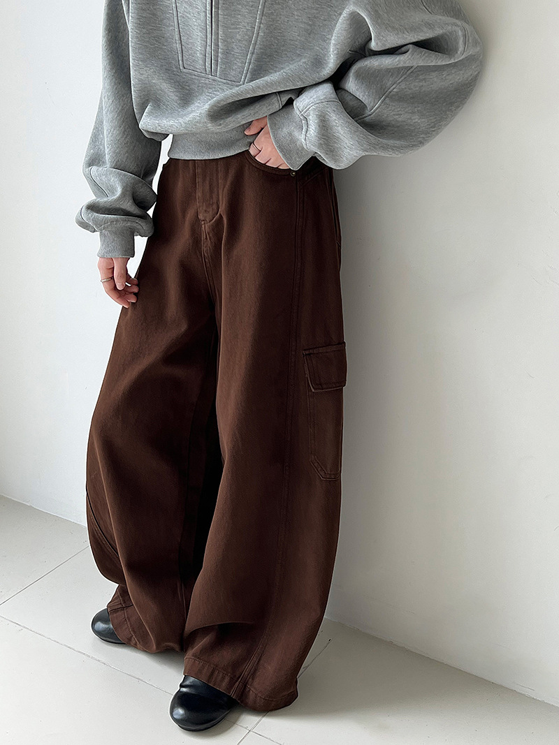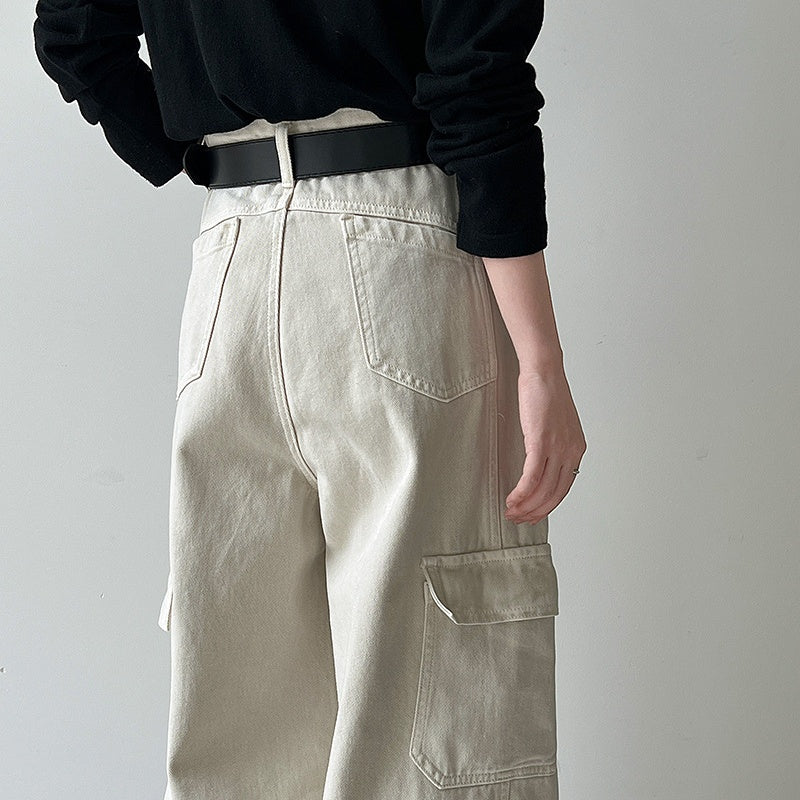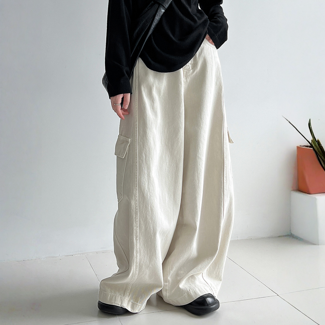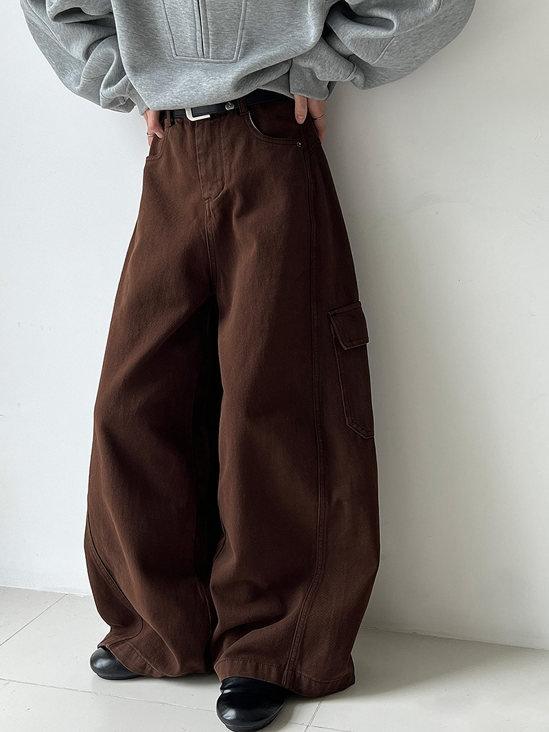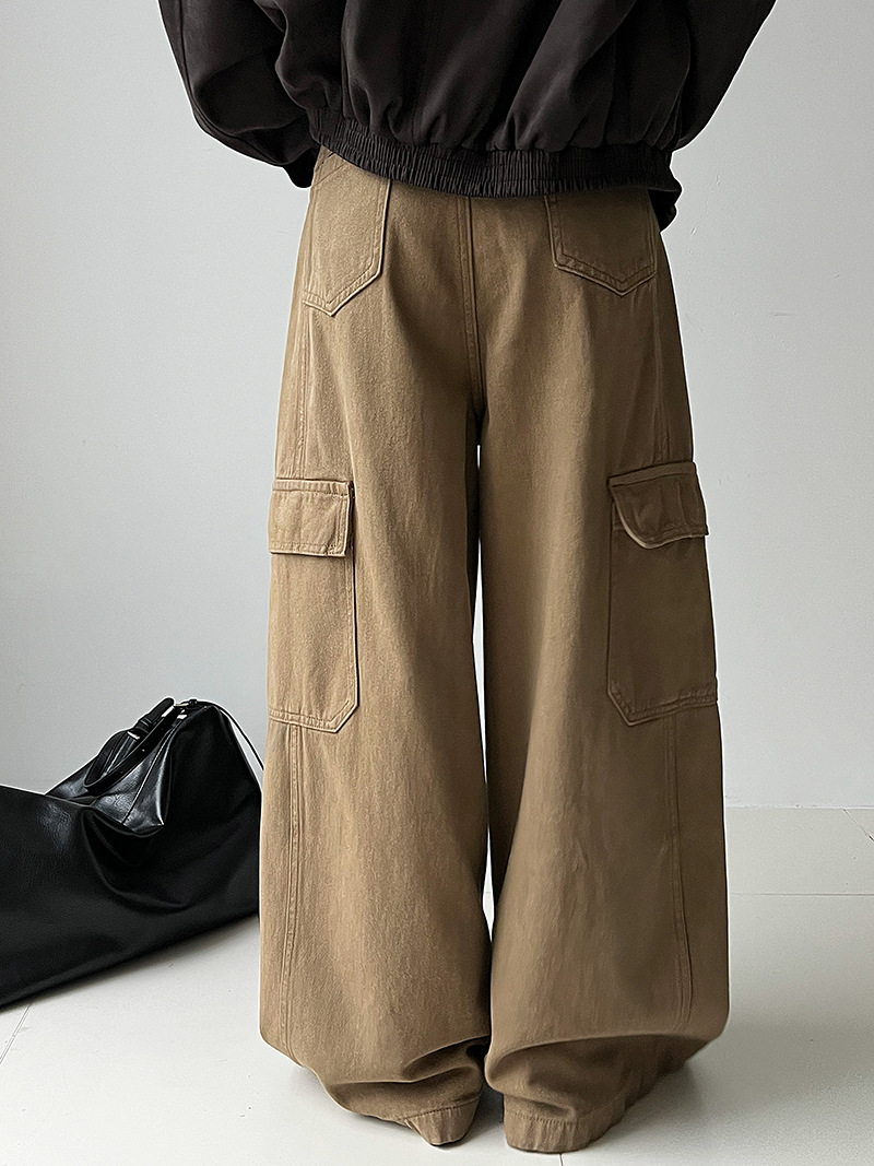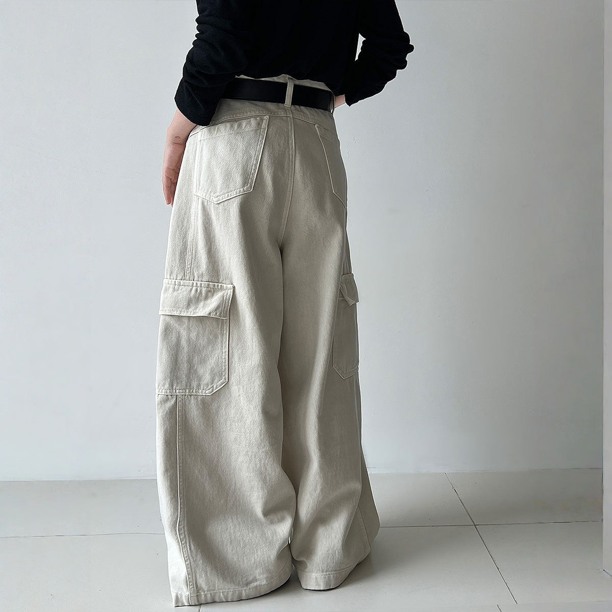 【商品名】【ボトムス】春 秋 冬 ワーク風 レトロ 大きめポケット ワイドパンツ 【JZシリーズ】