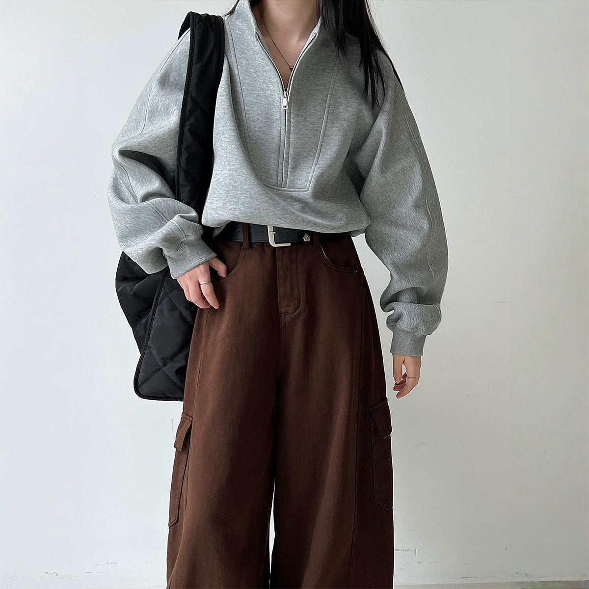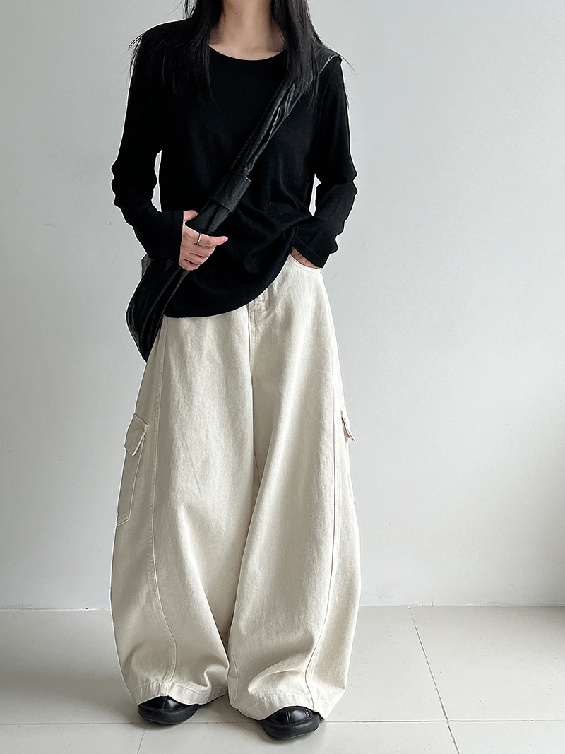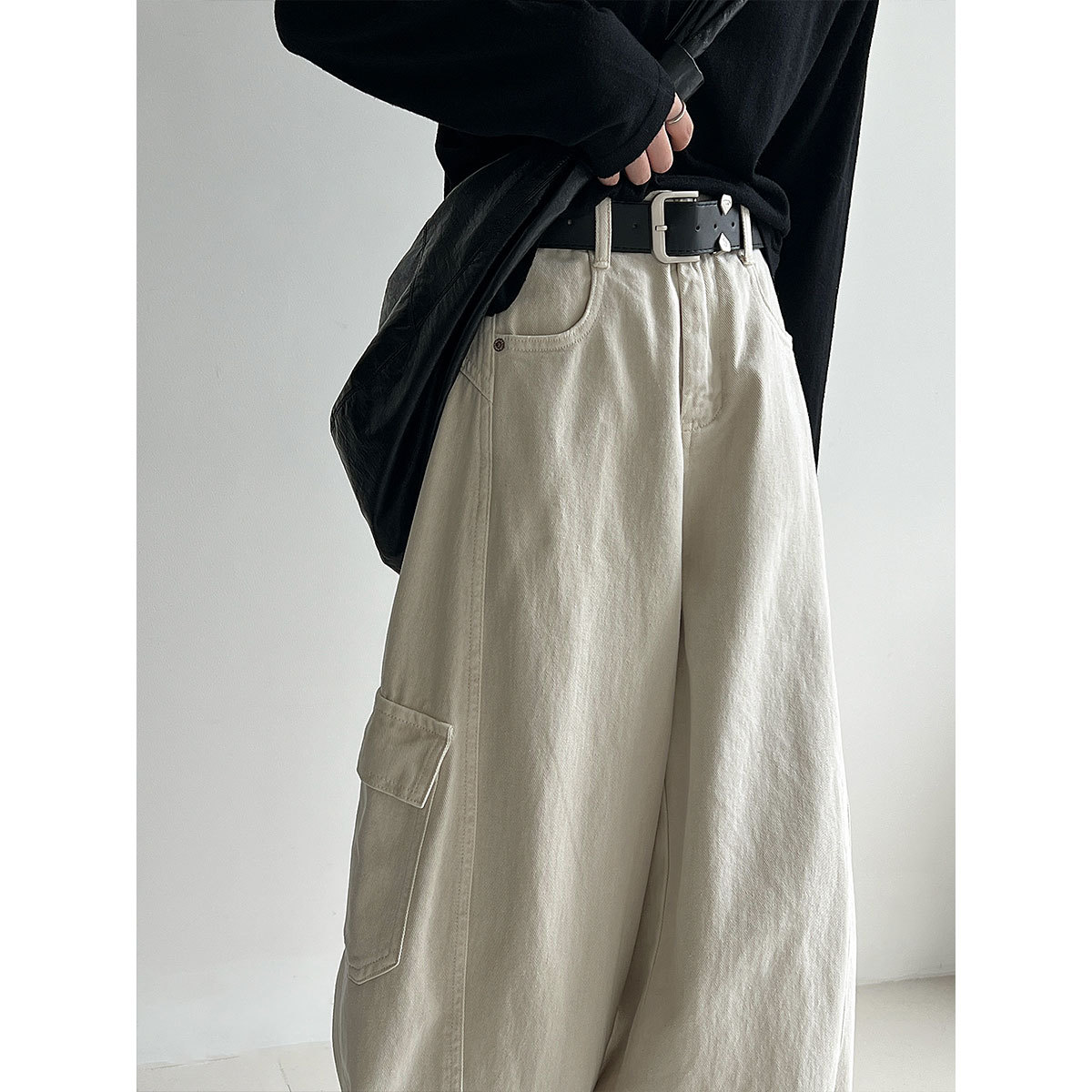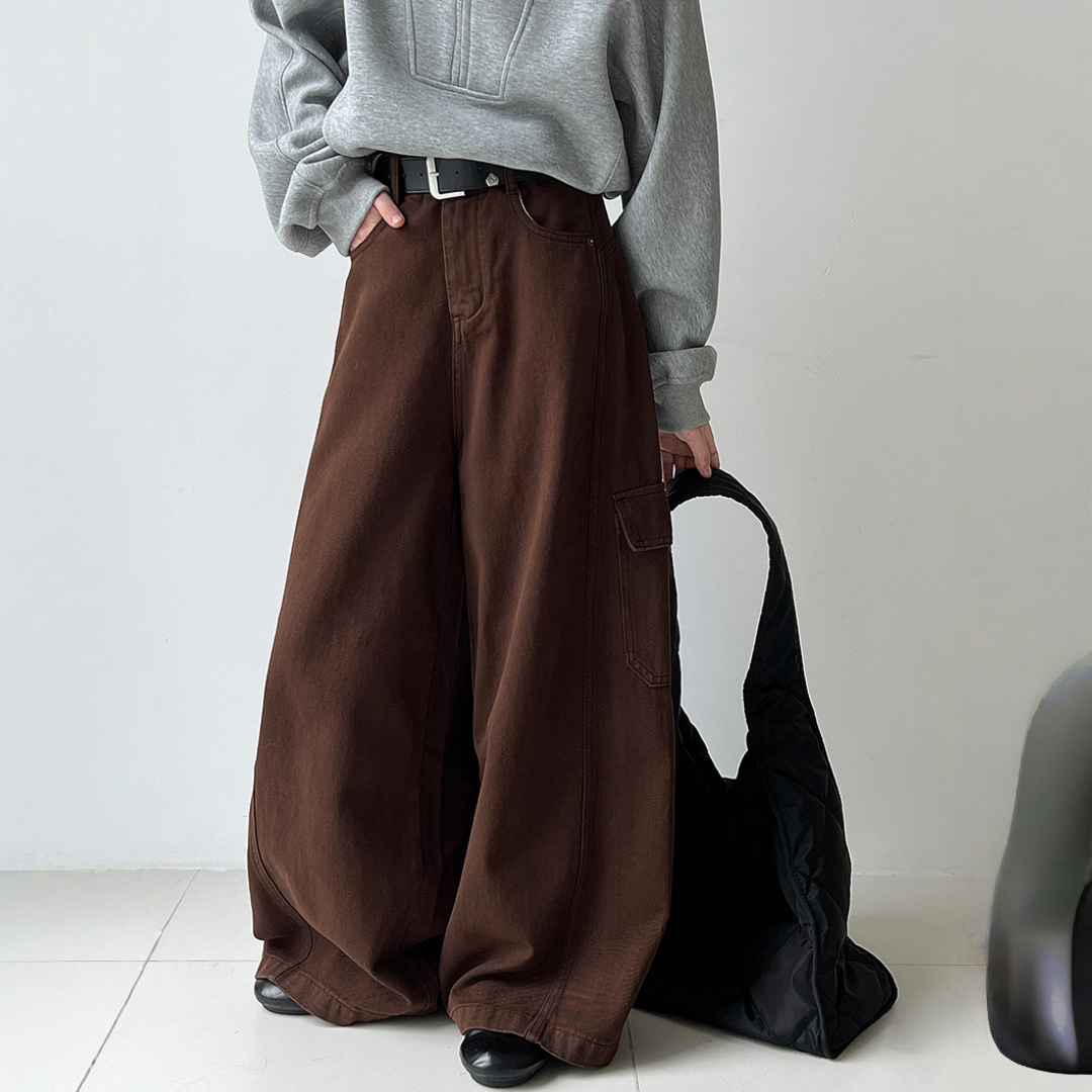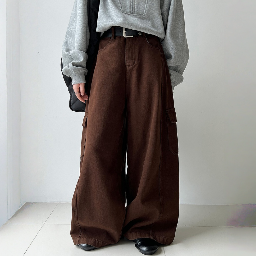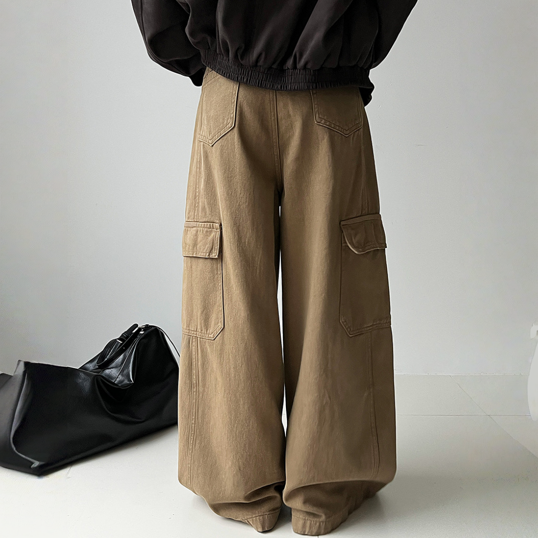 【商品名】【ボトムス】春 秋 冬 ワーク風 レトロ 大きめポケット ワイドパンツ 【JZシリーズ】