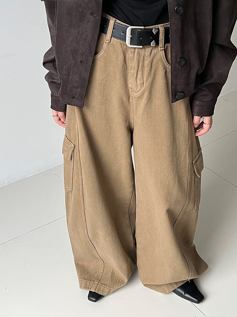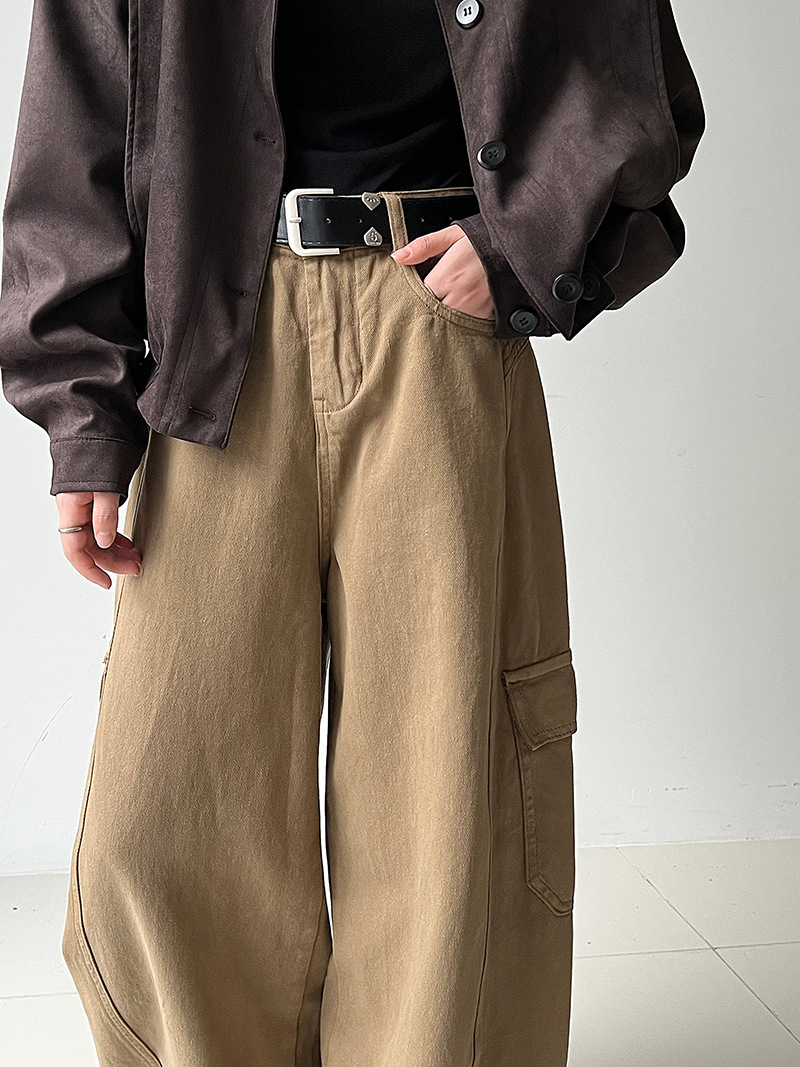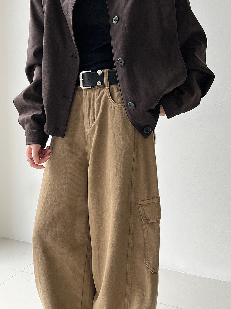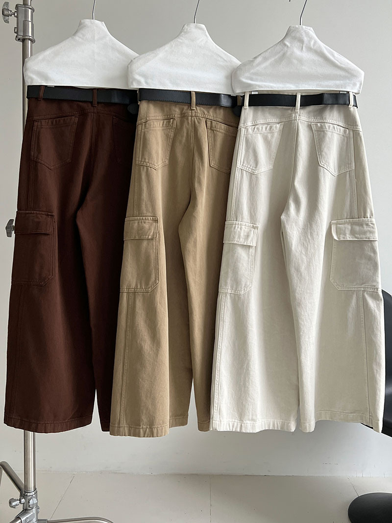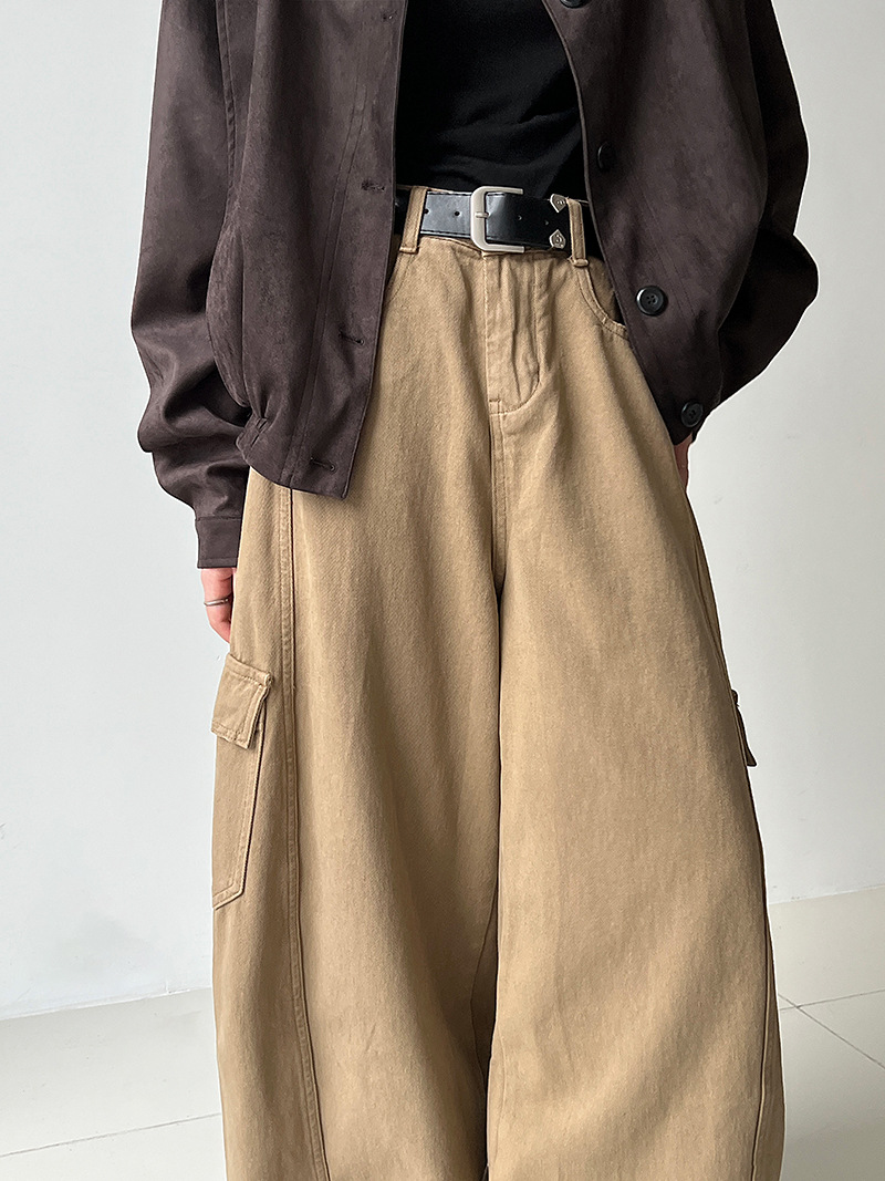 【ボトムス】春 秋 冬 ワーク風 レトロ 大きめポケット ワイドパンツ 【JZシリーズ】