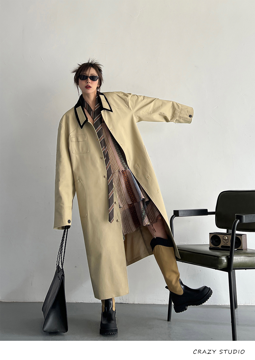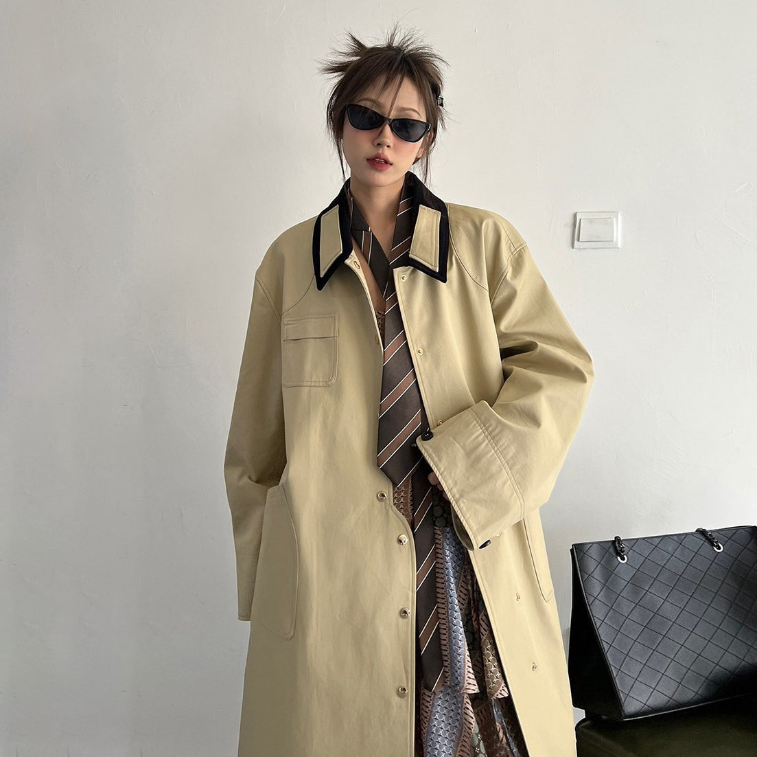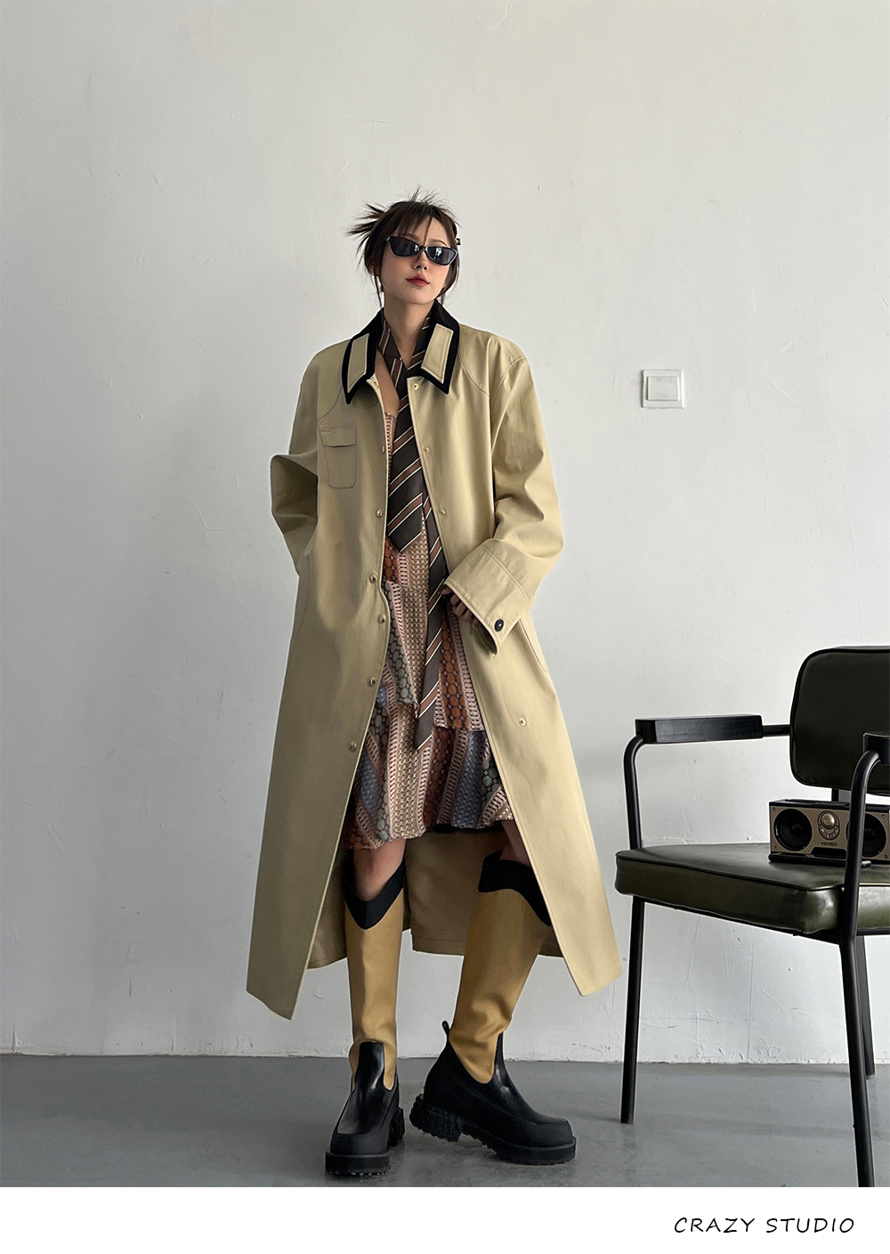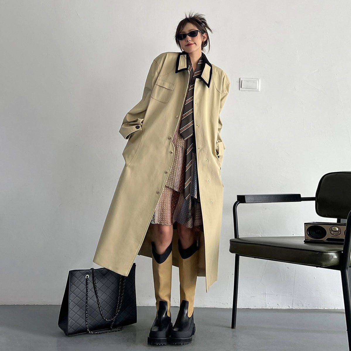 【アウター】春秋新作 INS風 ミドル丈 デザイン感 不規則 カーキ トレンチコート レディース【FCシリーズ】