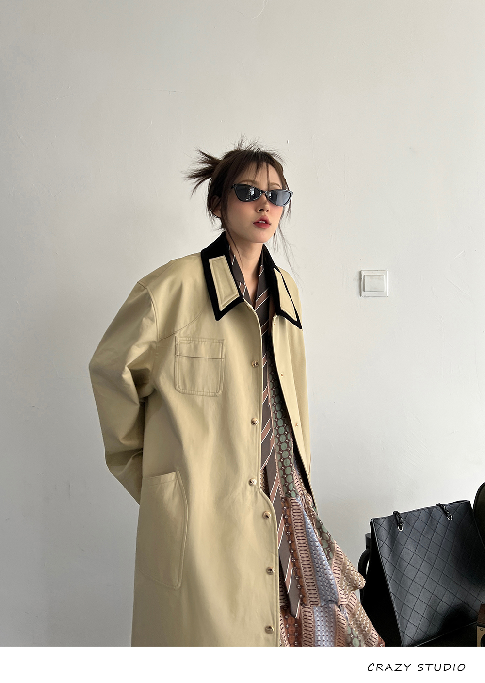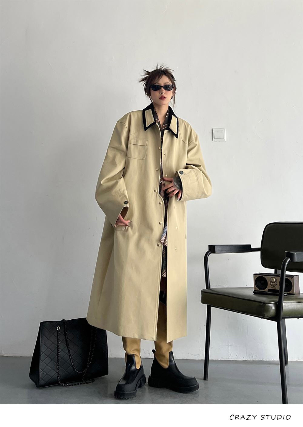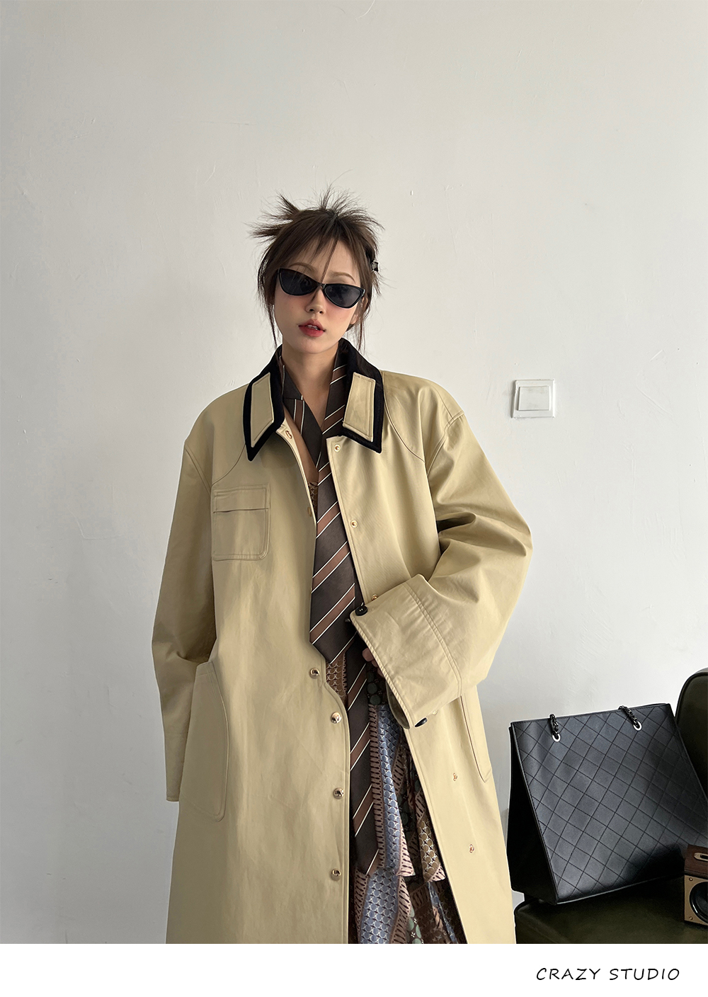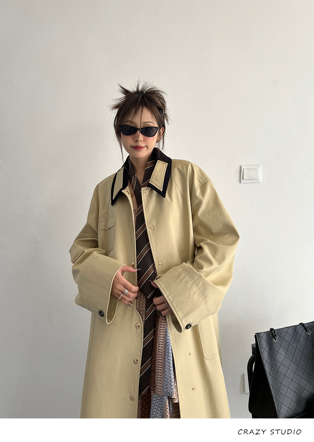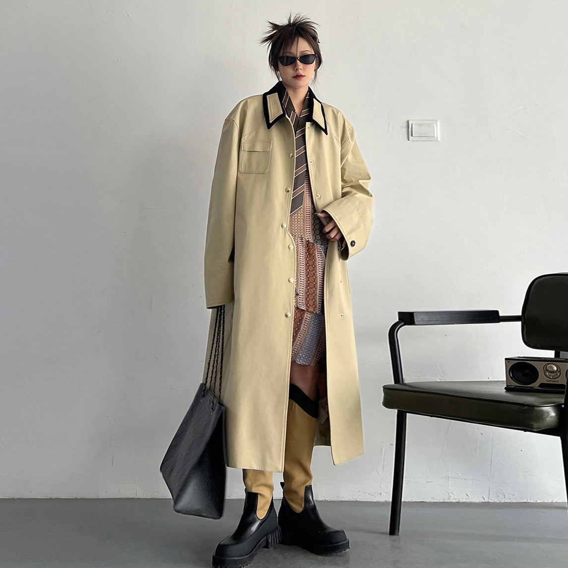 【アウター】春秋新作 INS風 ミドル丈 デザイン感 不規則 カーキ トレンチコート レディース【FCシリーズ】