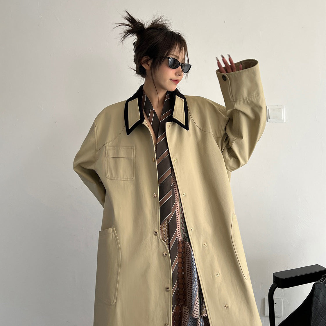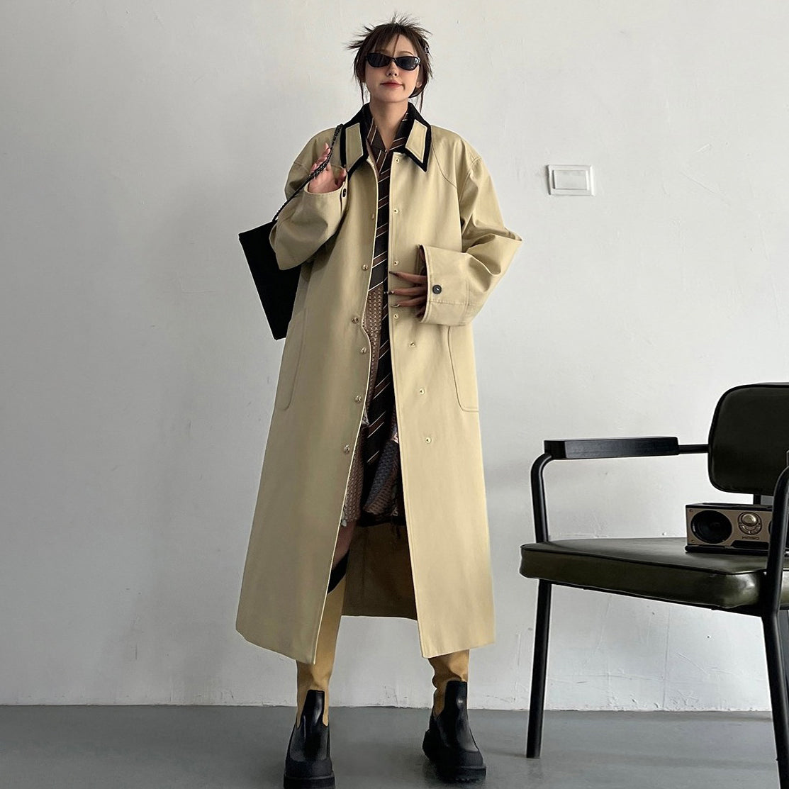 【商品名】【アウター】春秋新作 INS風 ミドル丈 デザイン感 不規則 カーキ トレンチコート レディース【FCシリーズ】