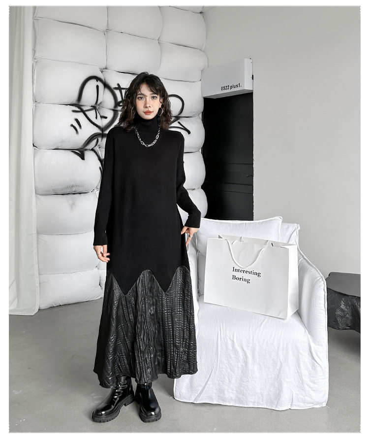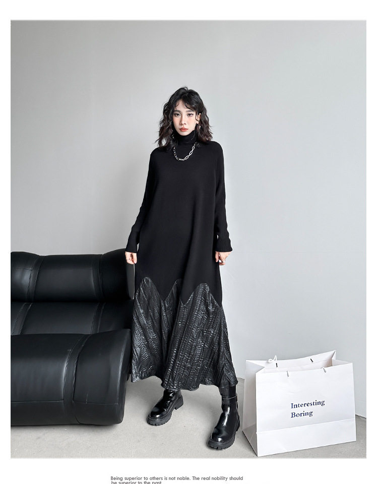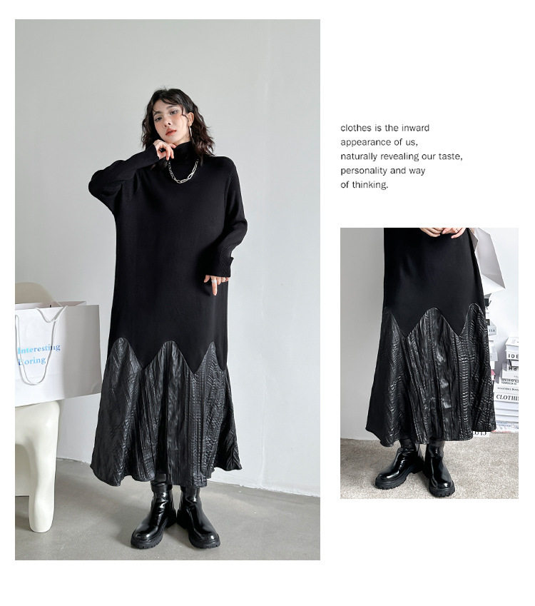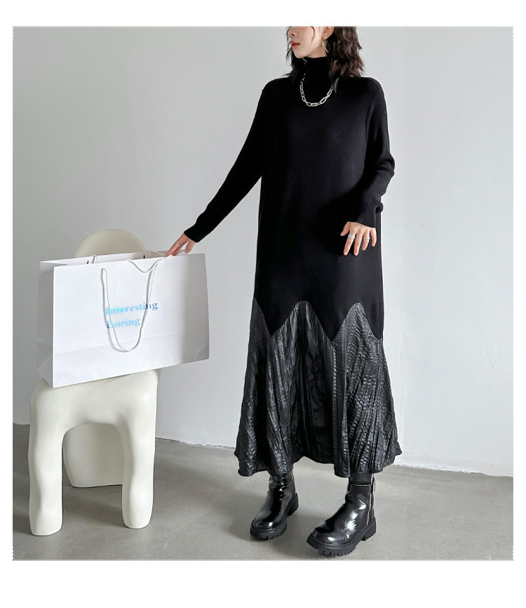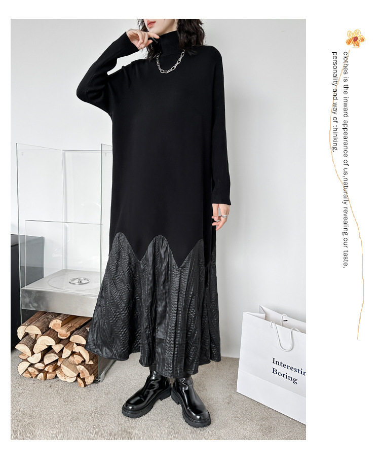 【ワンピース】ヨーロッパ風 切り替え ニットワンピース ゆったり体型カバー ハイネック 長袖ワンピース【AHシリーズ】