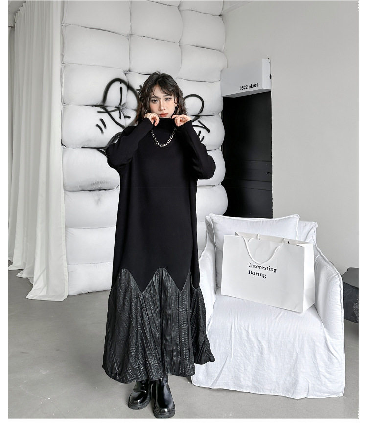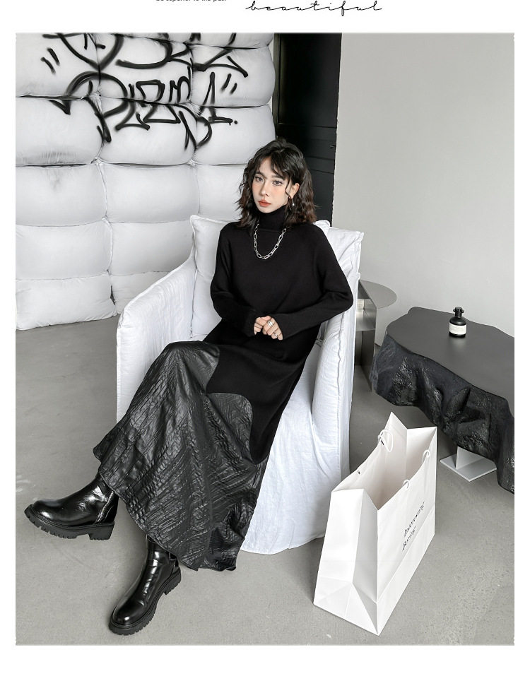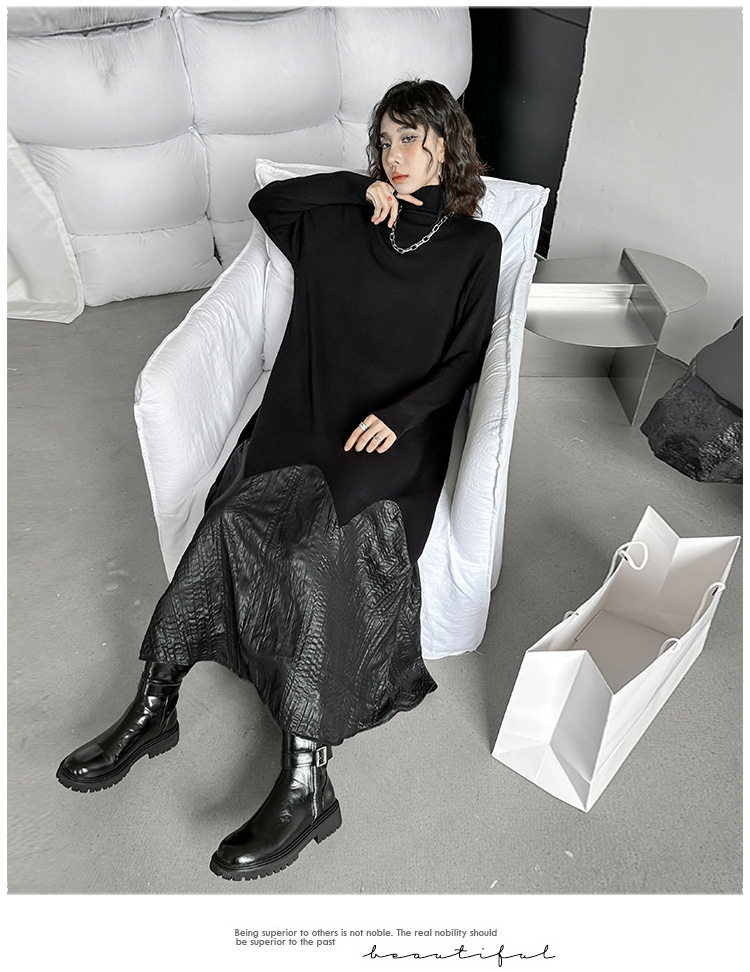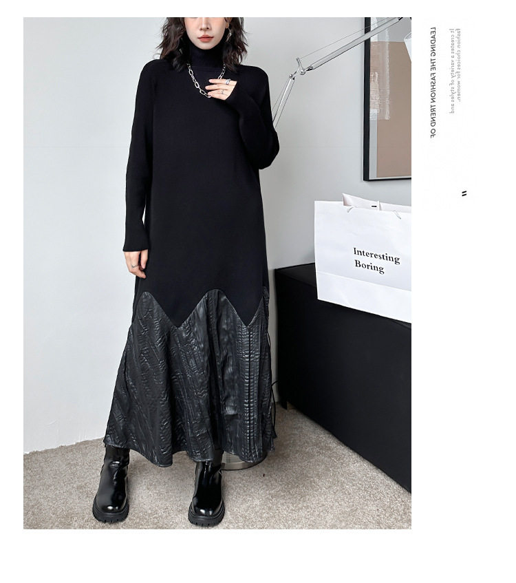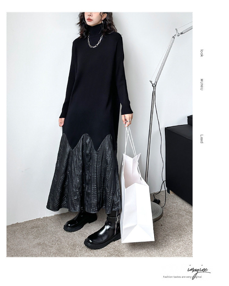 【ワンピース】ヨーロッパ風 切り替え ニットワンピース ゆったり体型カバー ハイネック 長袖ワンピース【AHシリーズ】