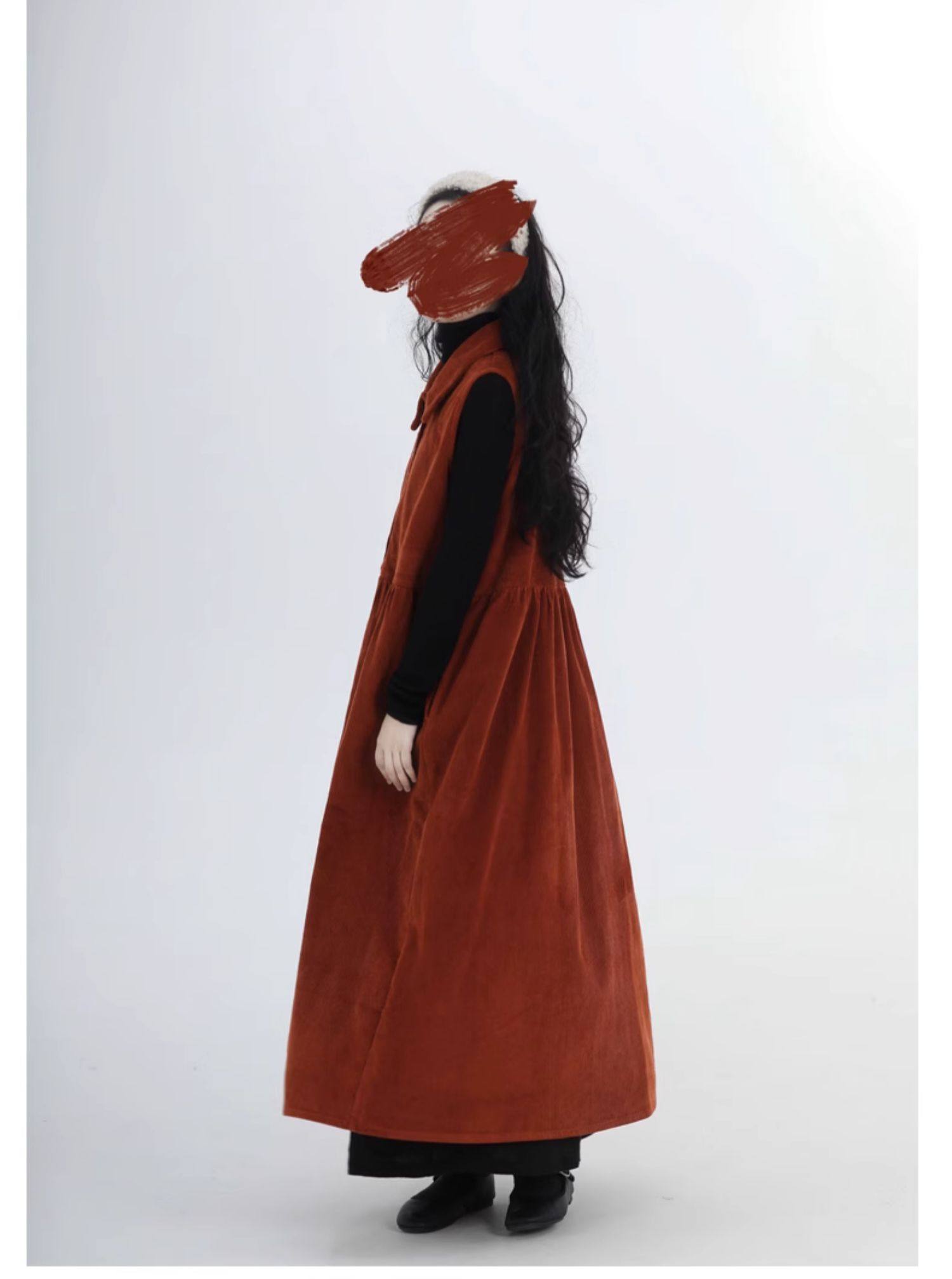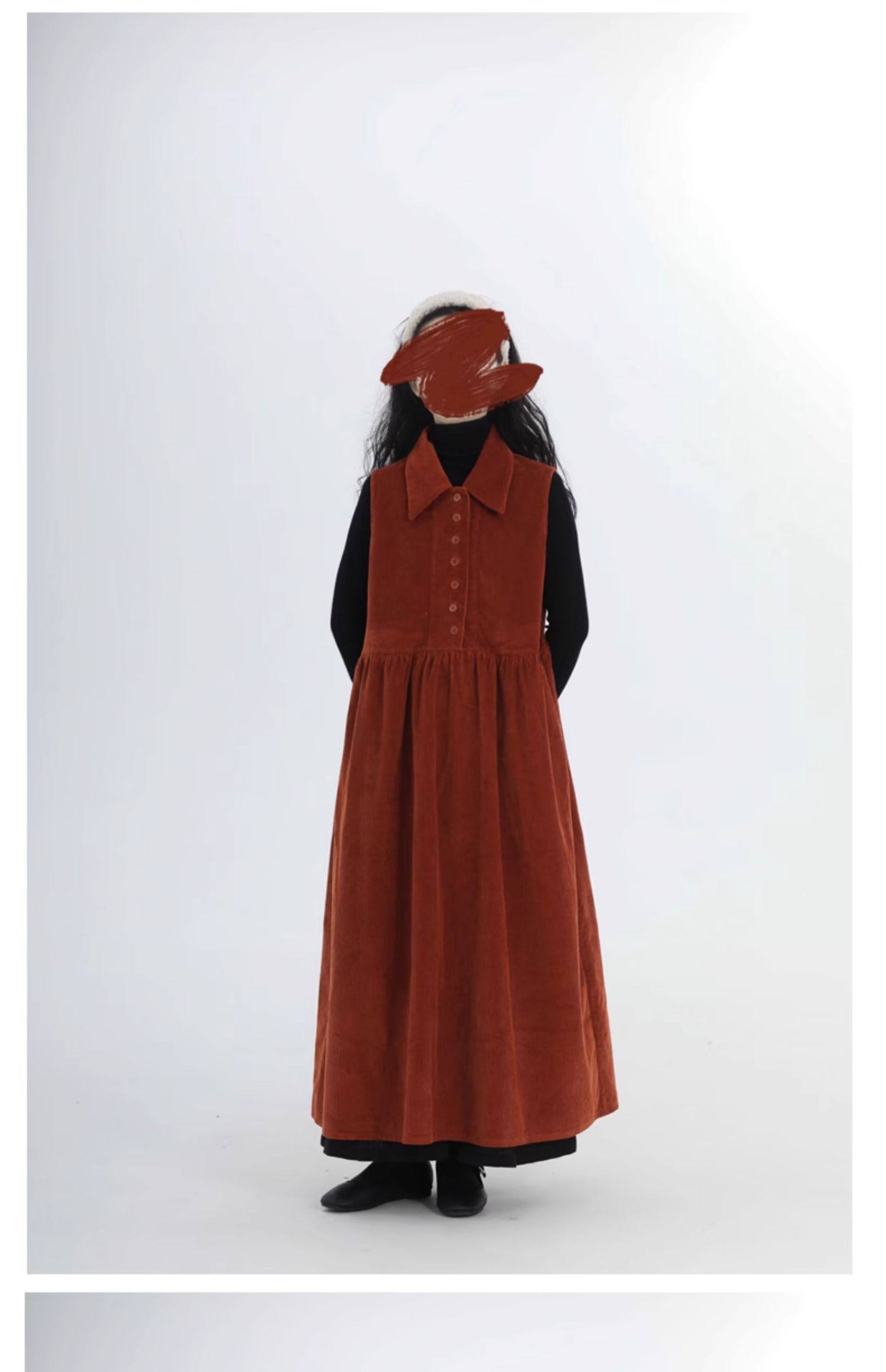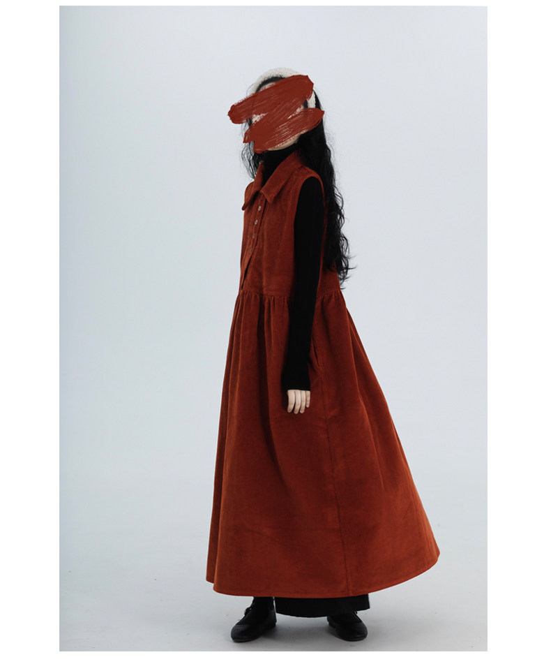 【ワンピース】春 秋 冬 レトロ ピーターパンカラー ノースリーブワンピース