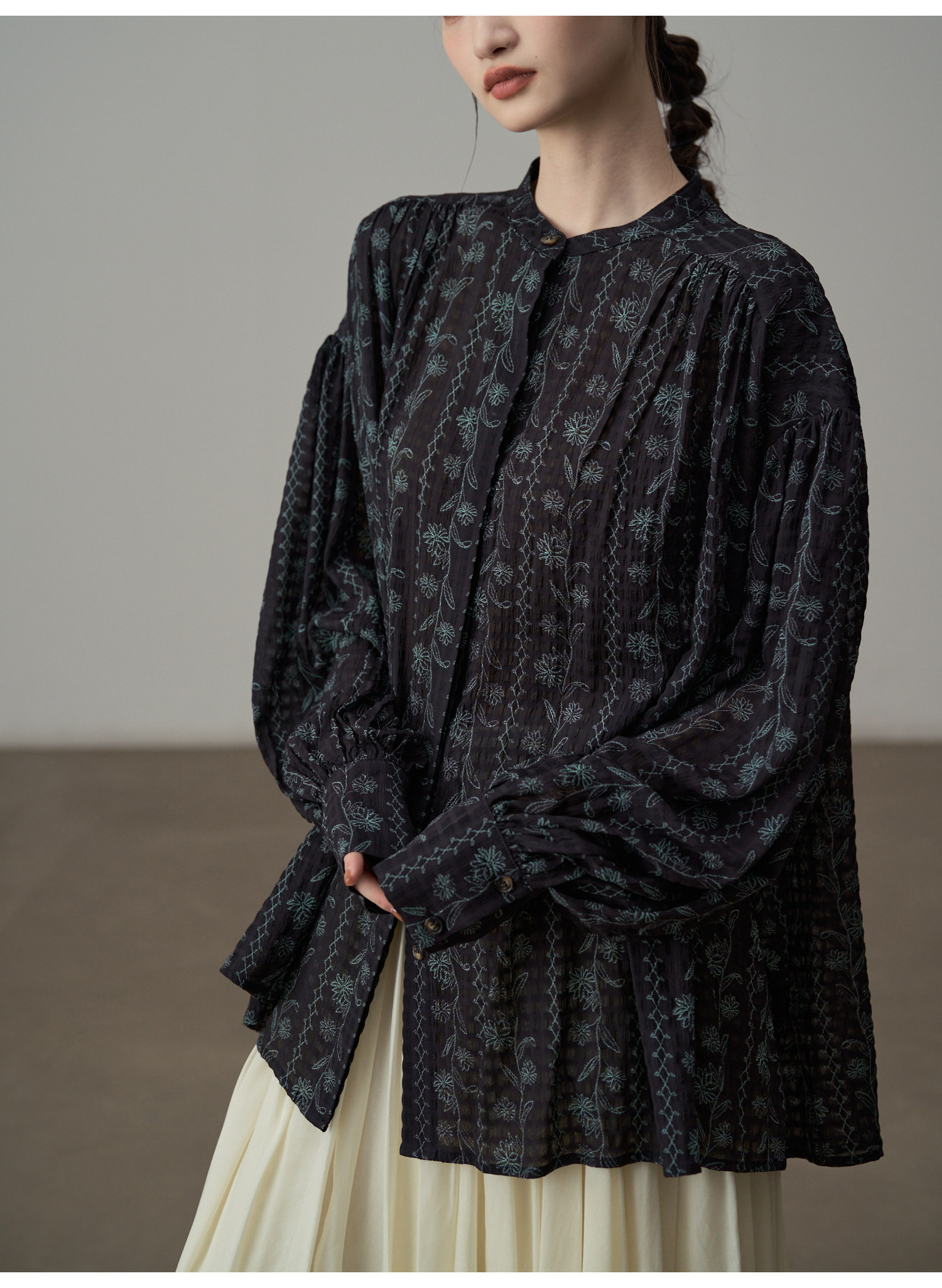 【商品名】【トップス】春 秋 冬 ゆったりシルエット レトロライン柄 シャツ 【JZシリーズ】