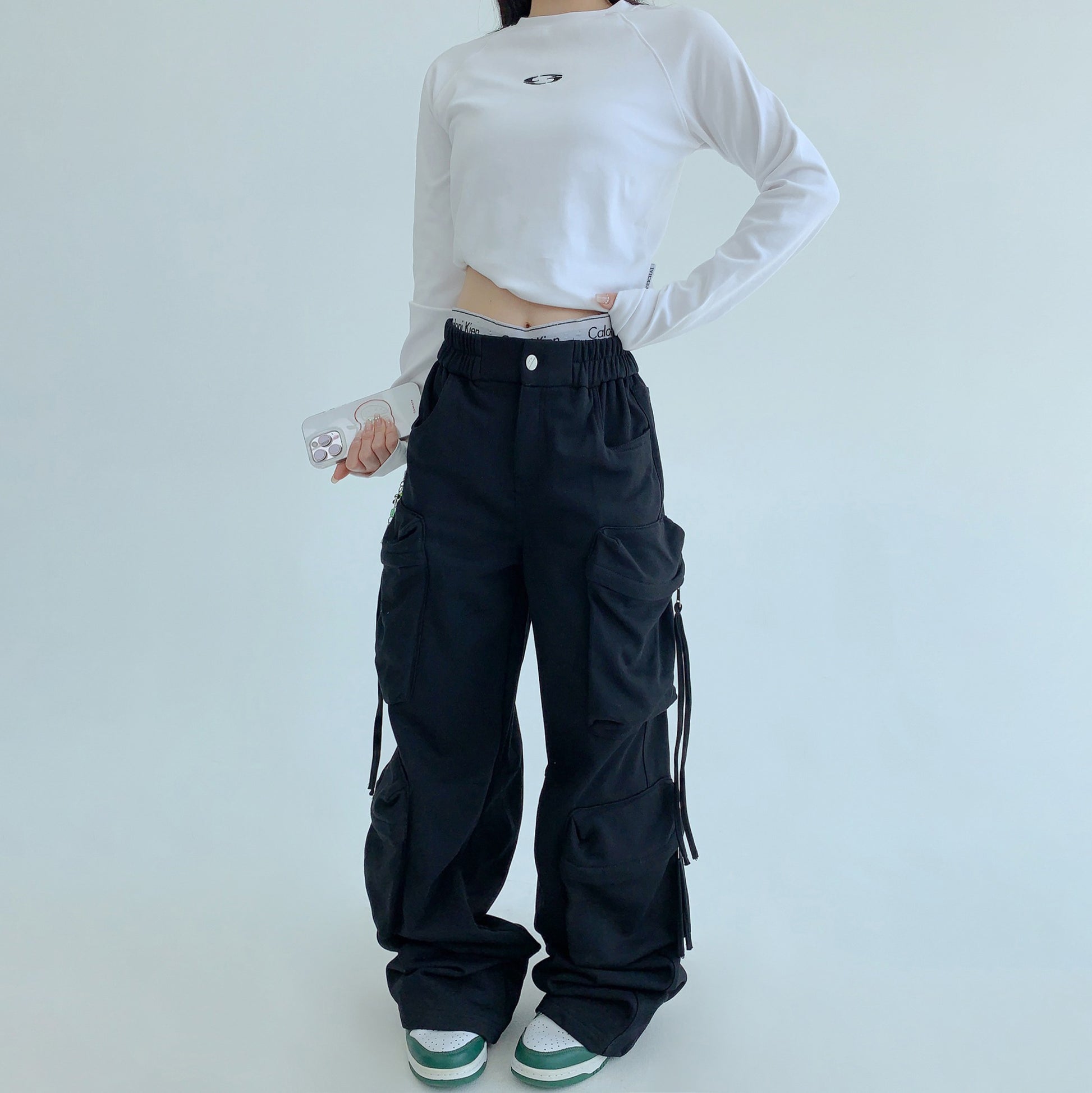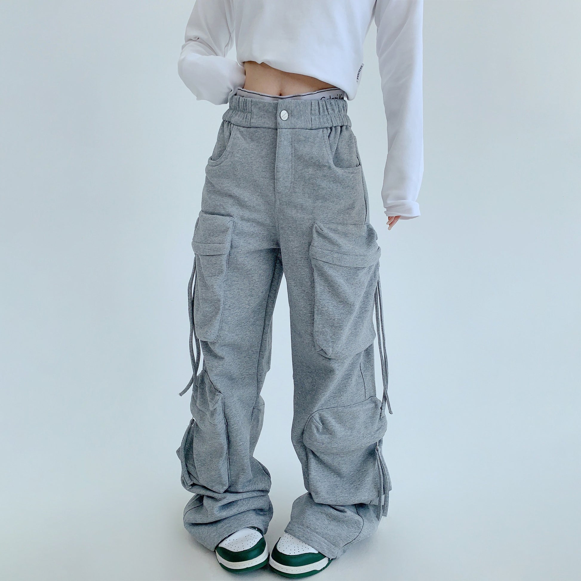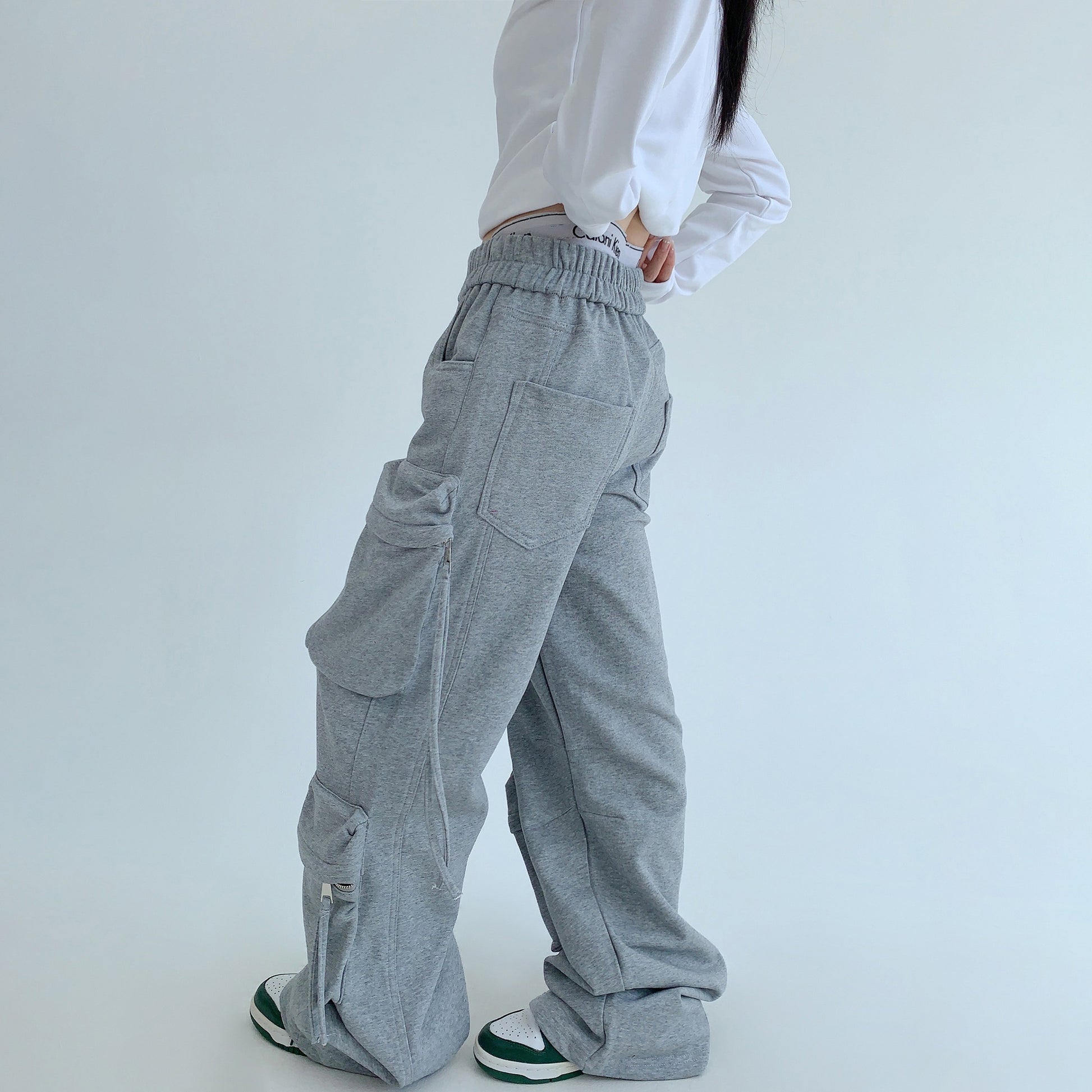 【商品名】【ボトムス】トレンド感◎ ワークテイスト 多ポケットスウェットパンツ レディース 厚手デザイン【FCシリーズ】