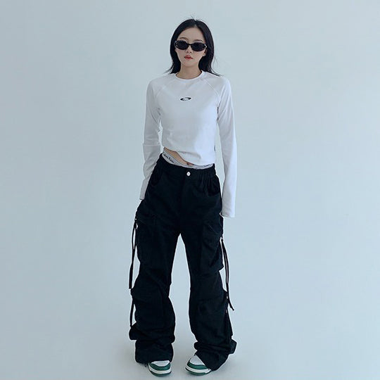 【ボトムス】春 秋 冬 ワーク風 レトロ 大きめポケット ワイドパンツ 【JZシリーズ】