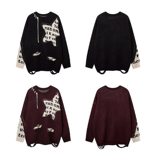 【トップス】星柄切替 デザインニット ユニセックス レディース 秋冬 ゆったり ハイストリート【FCシリーズ】