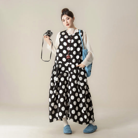 【ボトムス】ドット柄 サロペット レディース 秋 新作 ゆったり 体型カバー オールインワン【JZシリーズ】