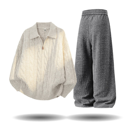 【単品注文】【セットアップ】ヴィンテージ風 ケーブルニット × スウェットパンツ 秋冬 新作 ゆったり ルーズスタイル【FCシリーズ】