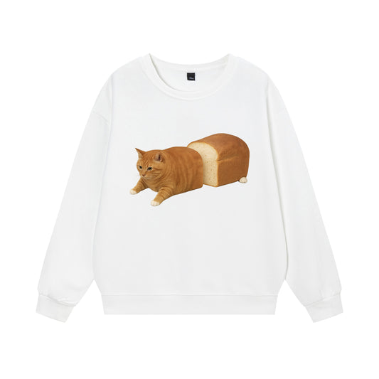 【トップス】パン猫プリント クルーネックスウェット ユニセックス 秋冬 ゆったり カジュアル【FCシリーズ】