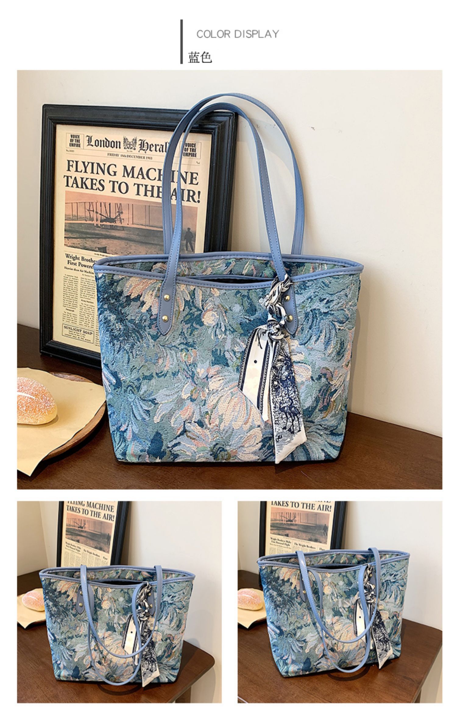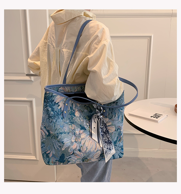 【商品名】【バッグ】💙刺繍デザイン入り 大容量トートバッグ レディース 通勤 新作 おしゃれレトロ ボディバッグ