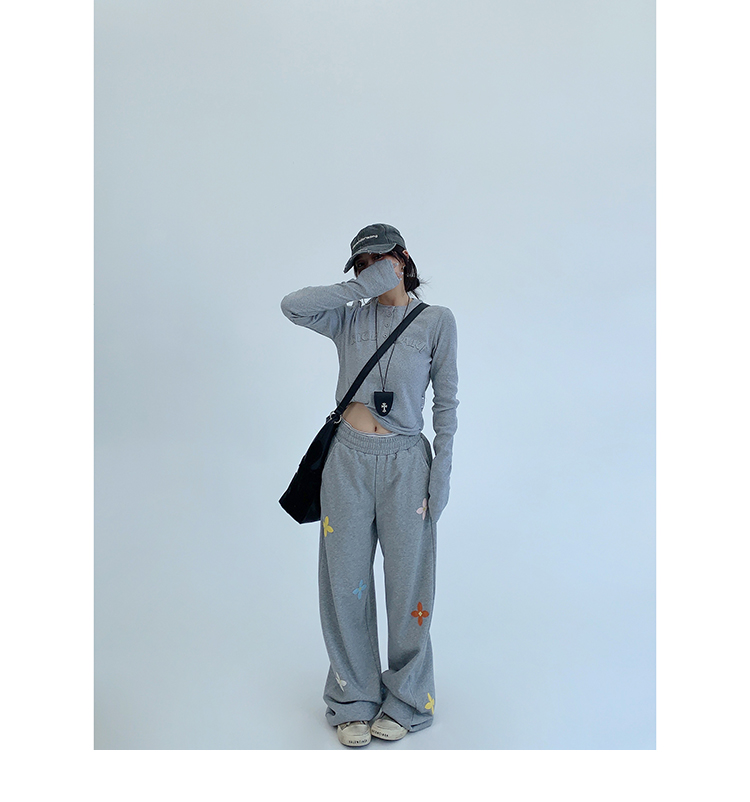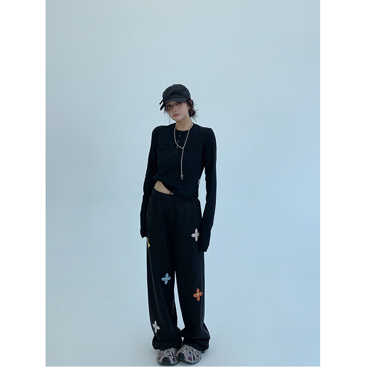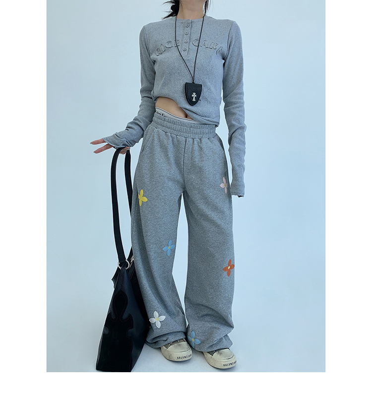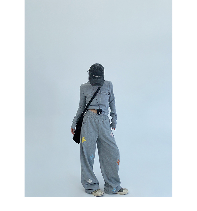 【商品名】【ボトムス】重工刺繍×ヴィンテージ加工 スウェットパンツ レディース 秋新作 ストリートカジュアル【FCシリーズ】