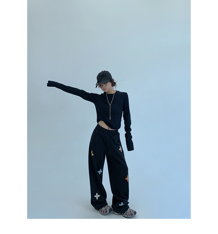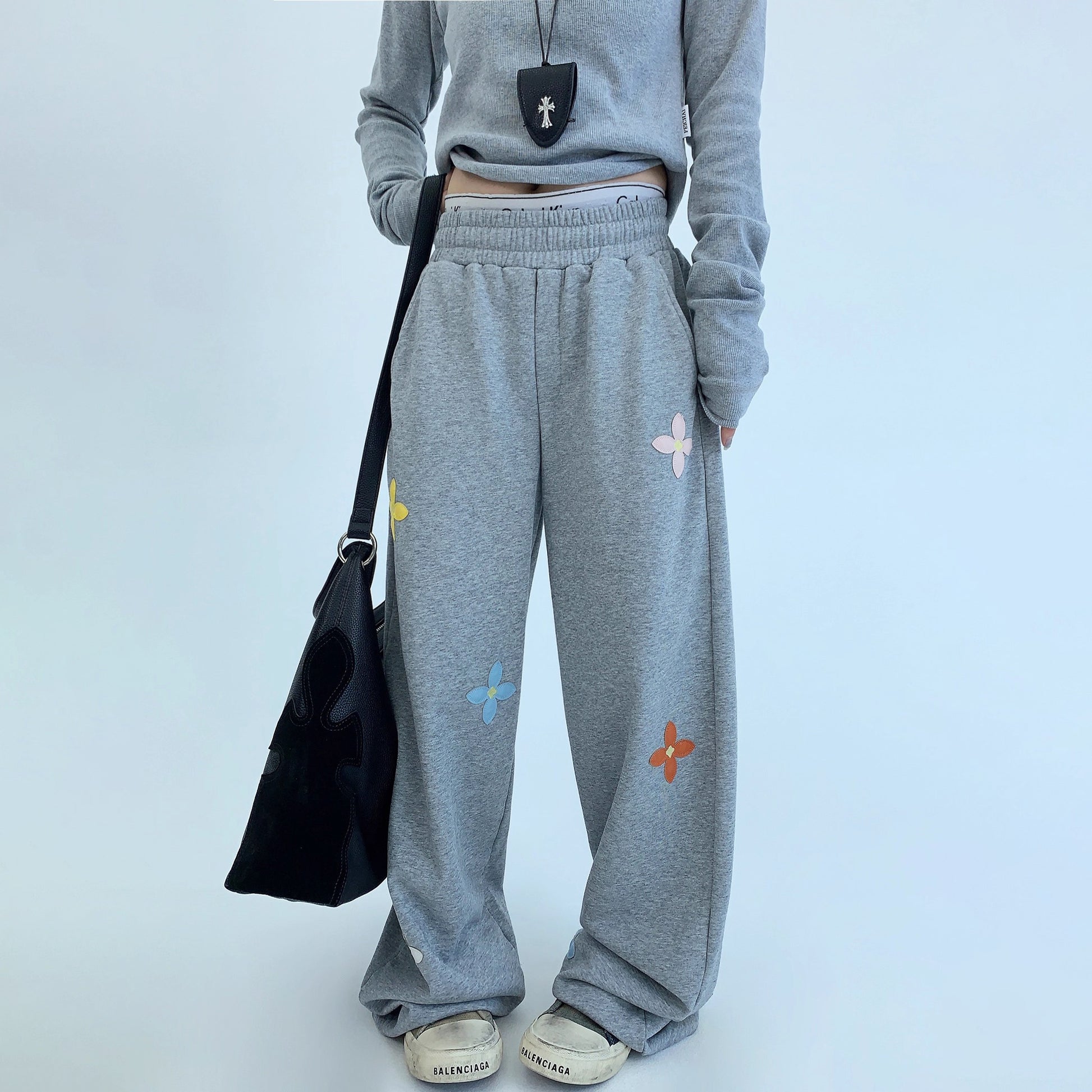 【ボトムス】重工刺繍×ヴィンテージ加工 スウェットパンツ レディース 秋新作 ストリートカジュアル【FCシリーズ】