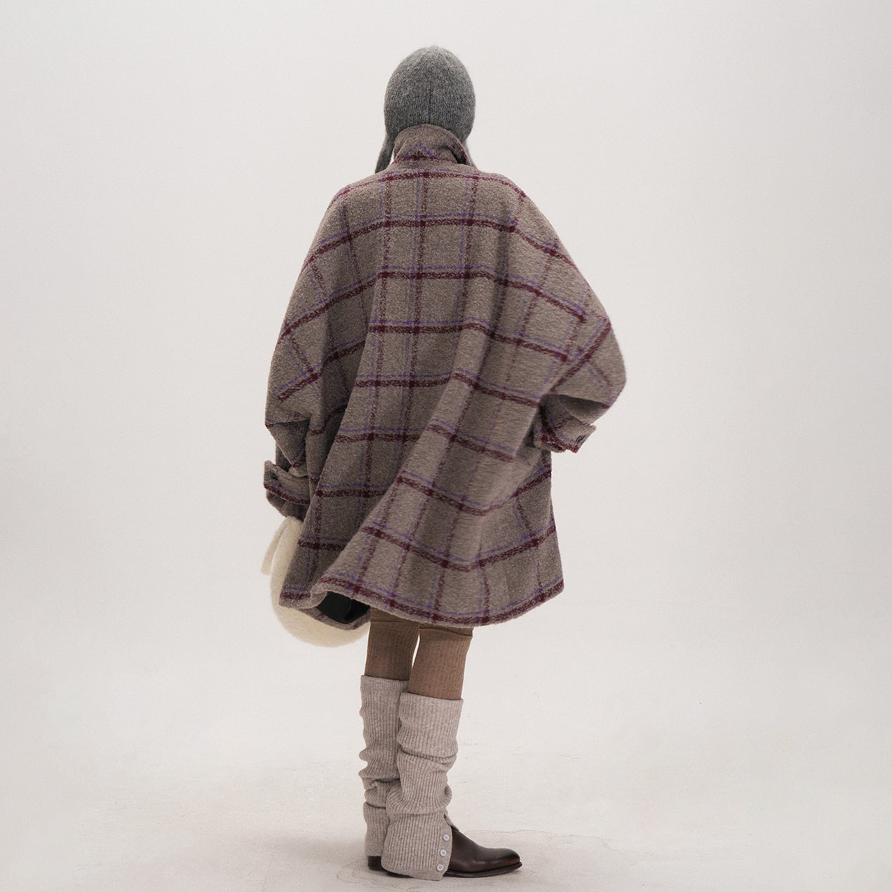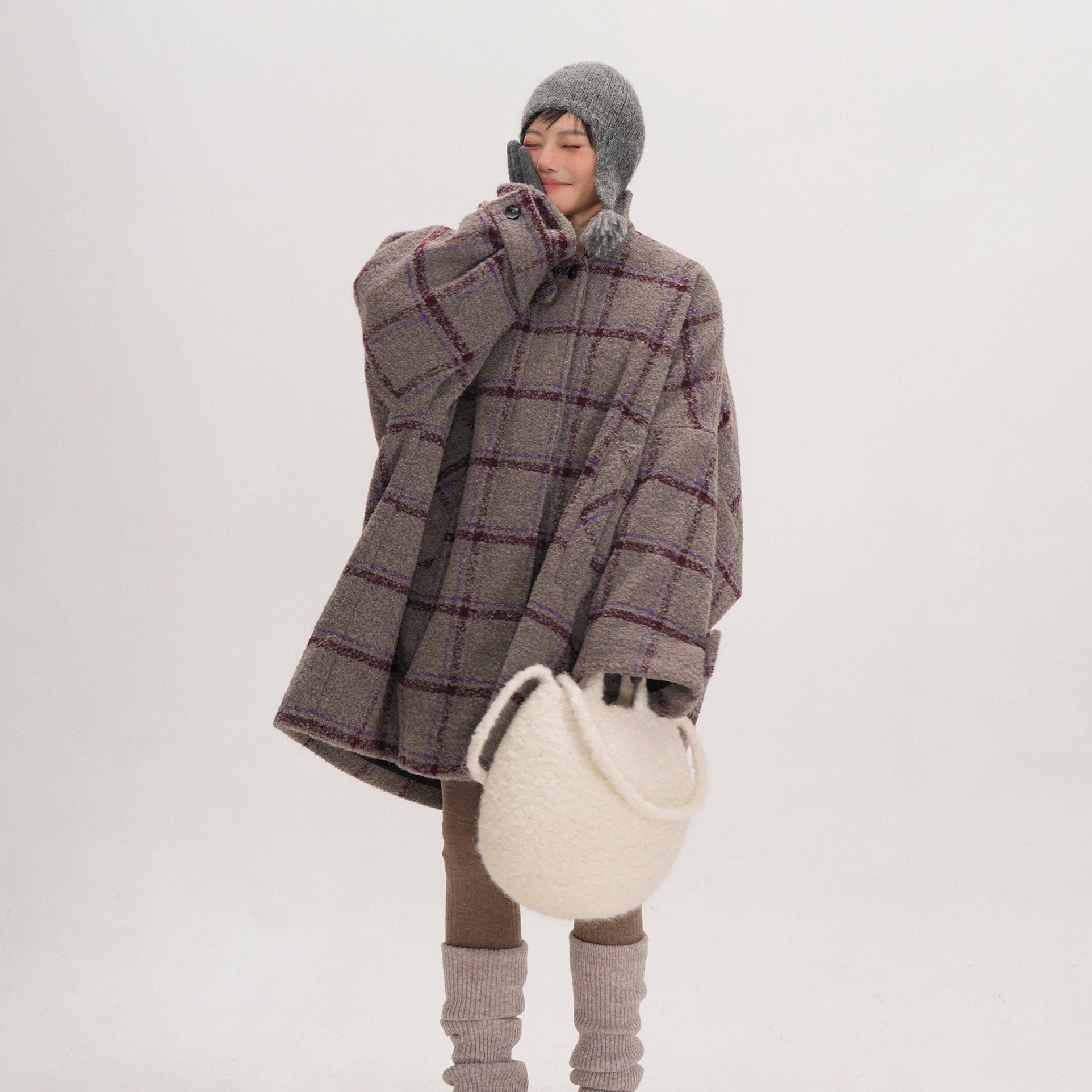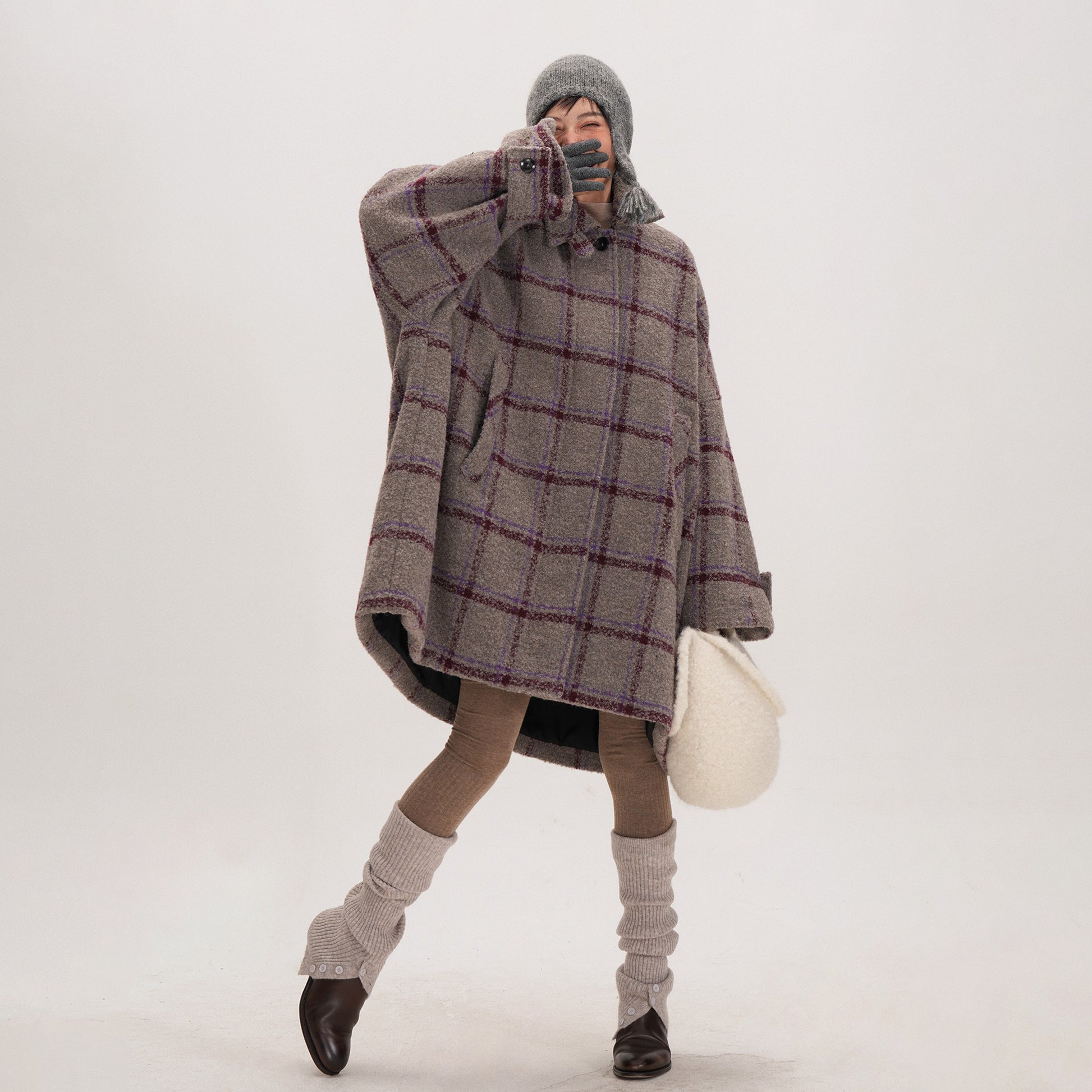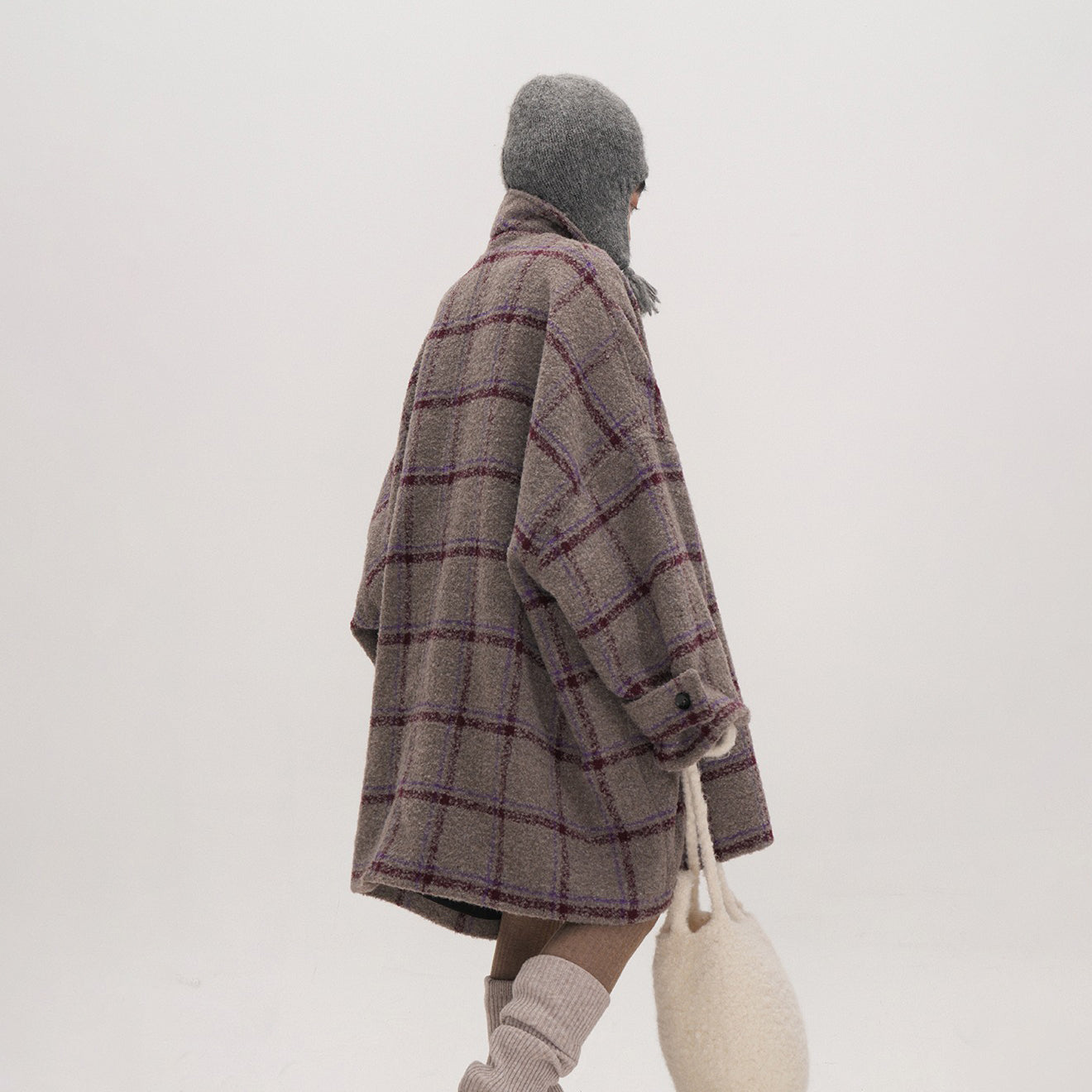 【アウター】レトロムード漂うチェック柄ケープコート♡ ゆったりシルエットで冬も暖かく上品に【JZシリーズ】【25~30日内発送】
