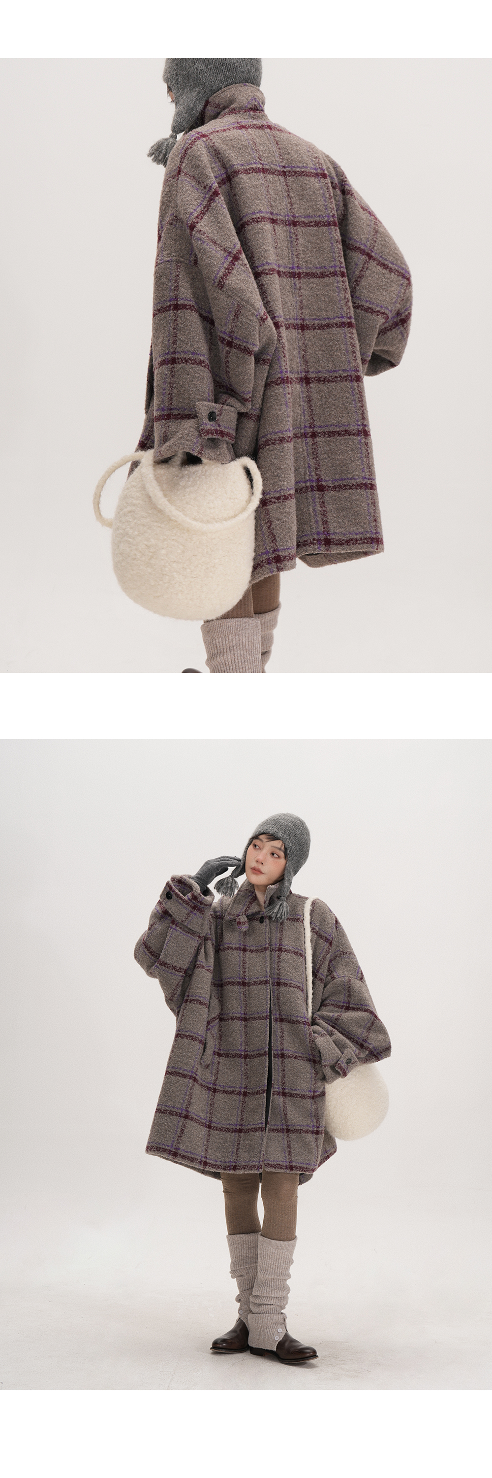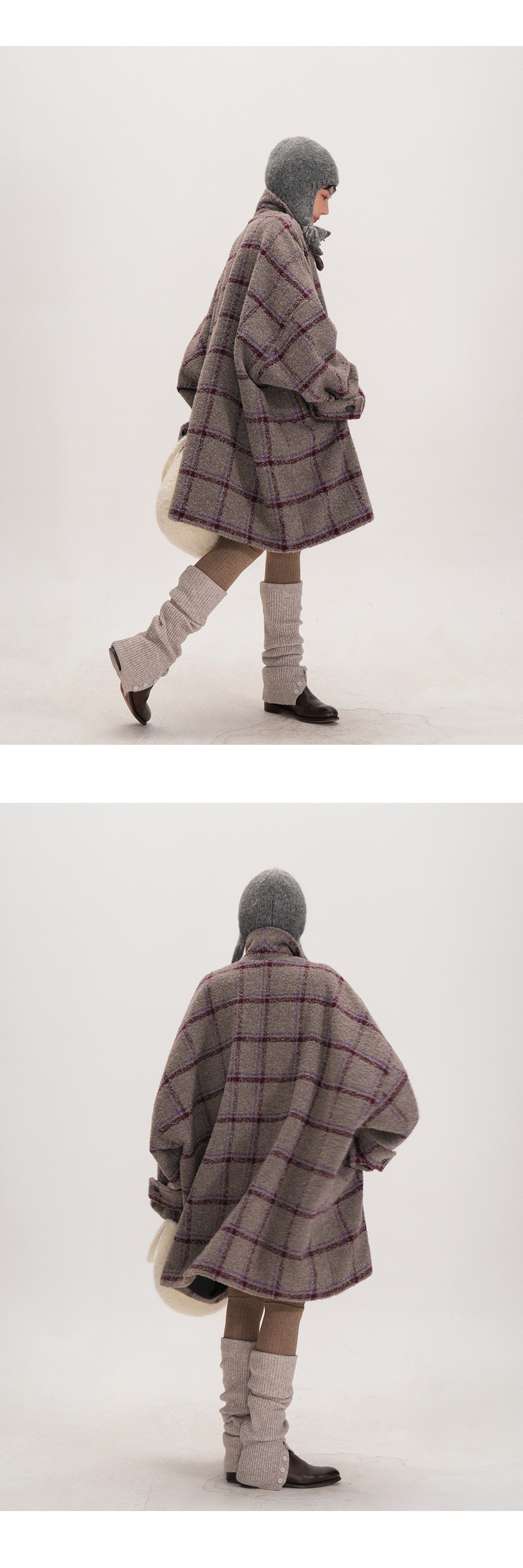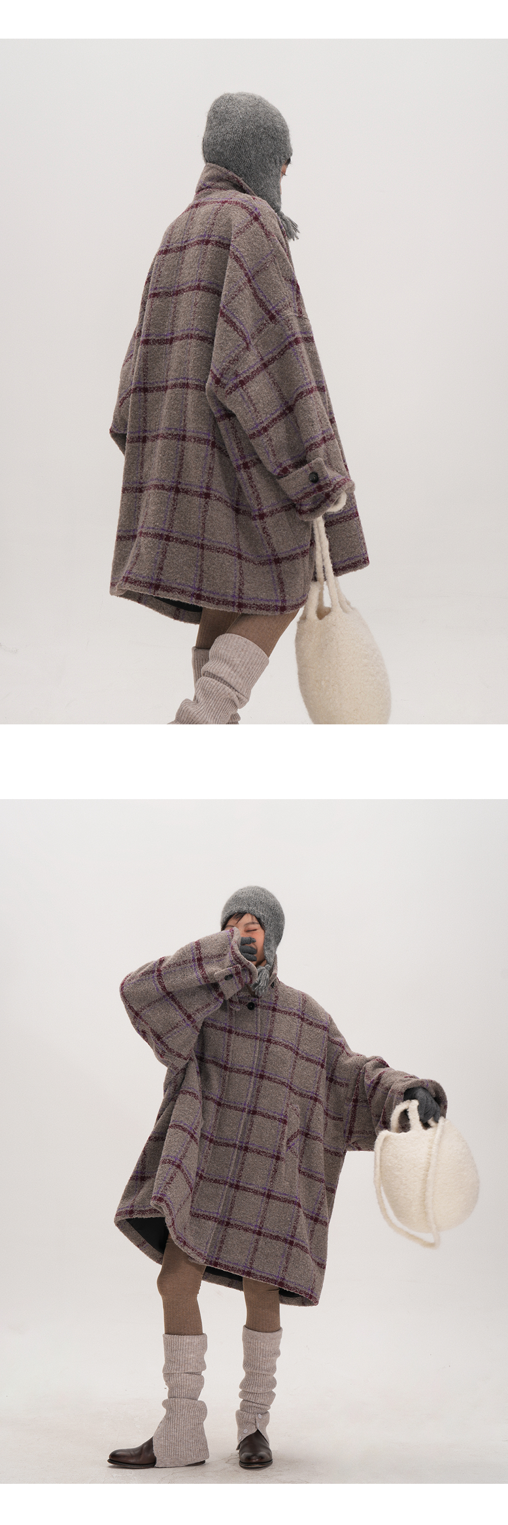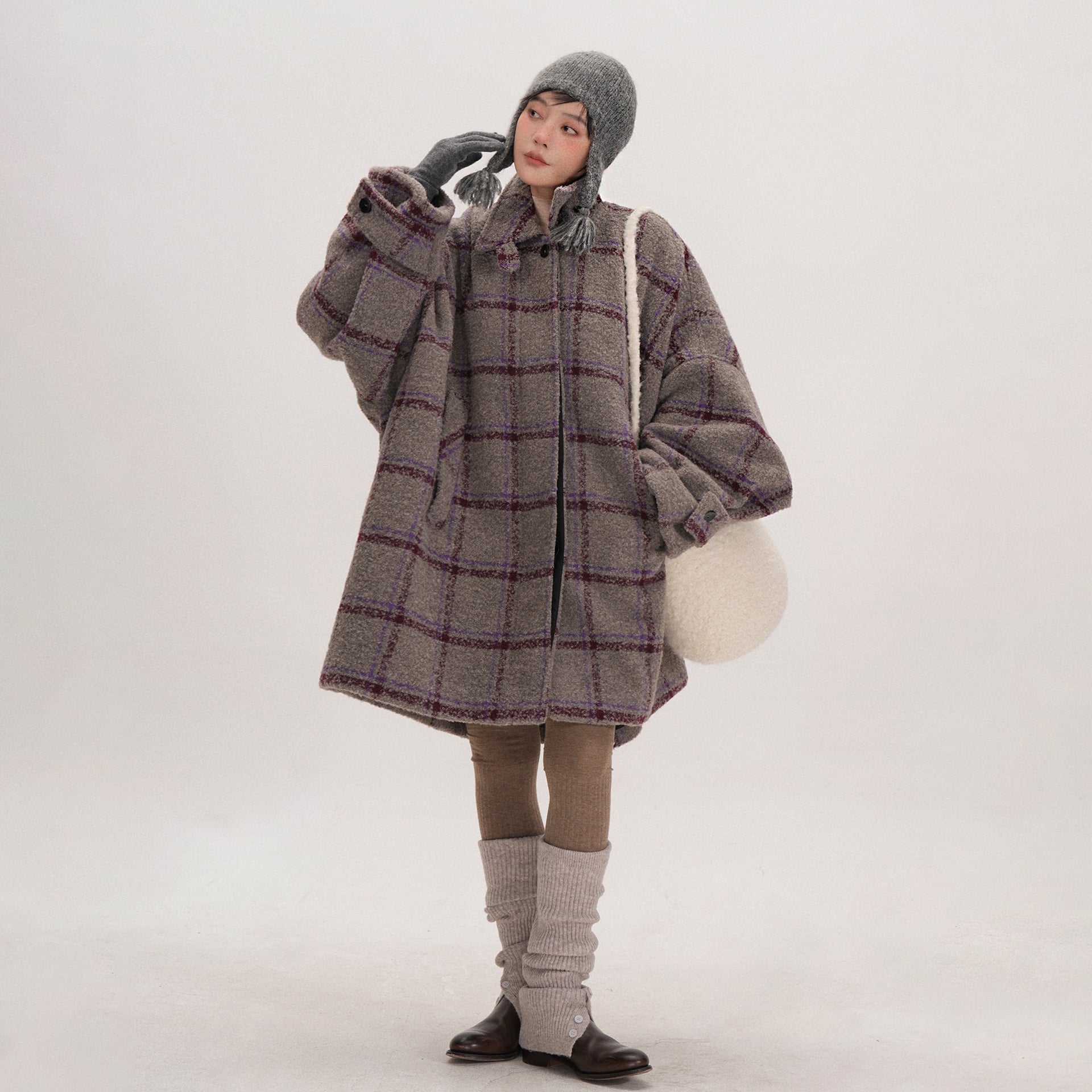 【アウター】レトロムード漂うチェック柄ケープコート♡ ゆったりシルエットで冬も暖かく上品に【JZシリーズ】【25~30日内発送】