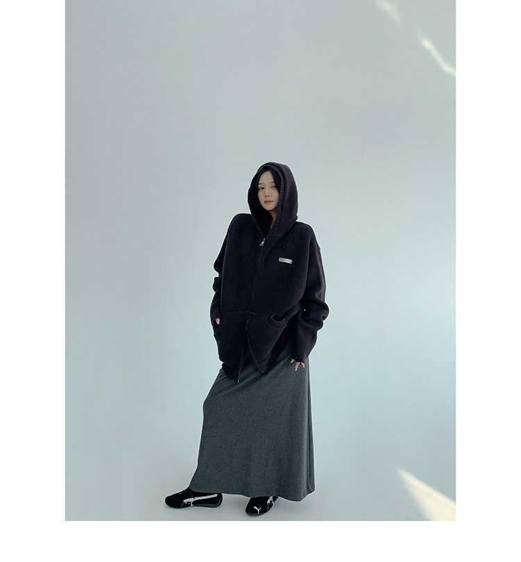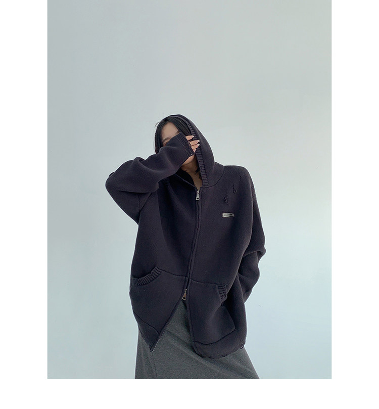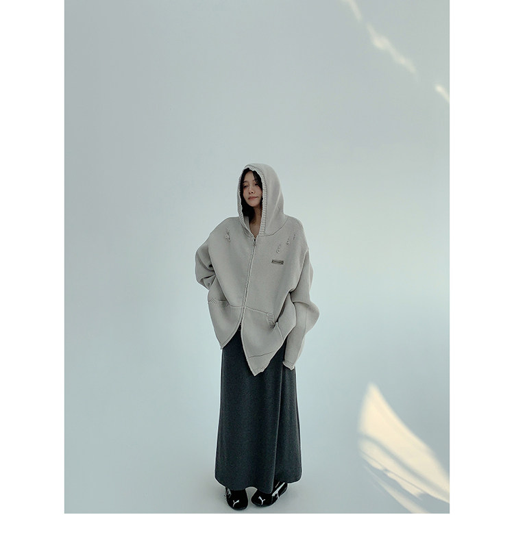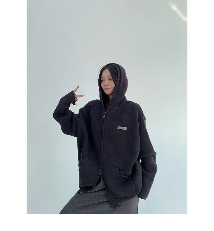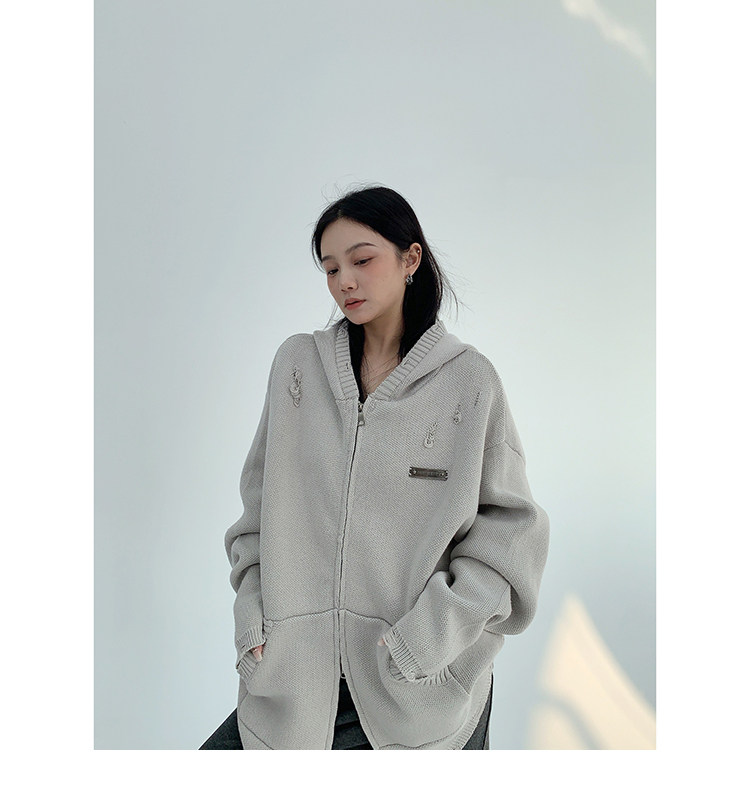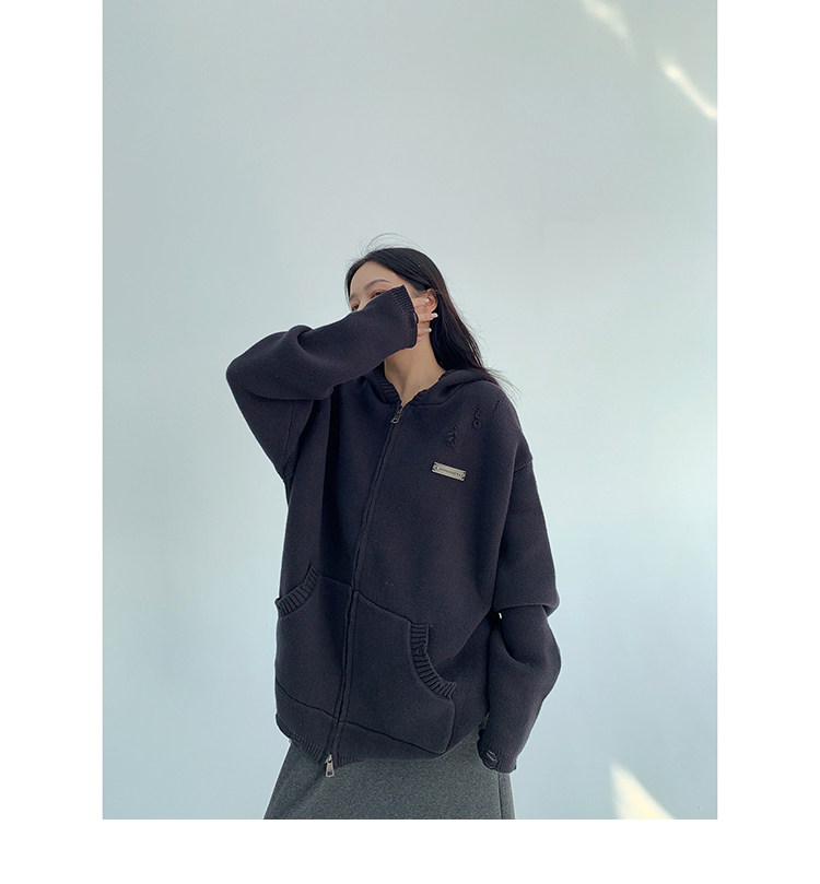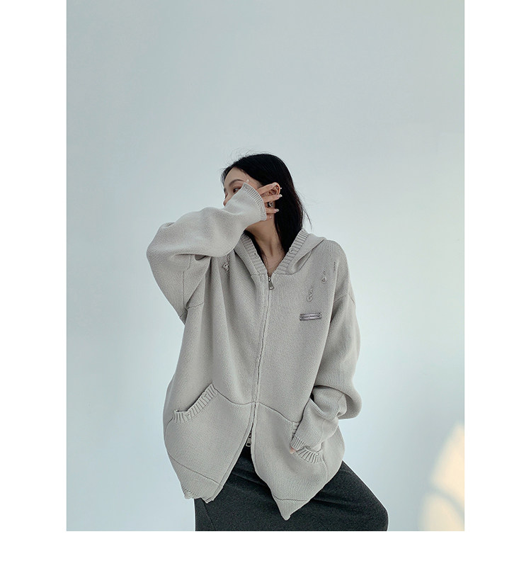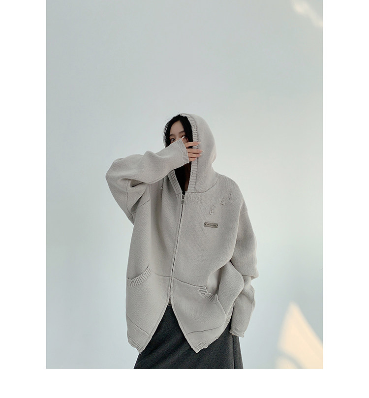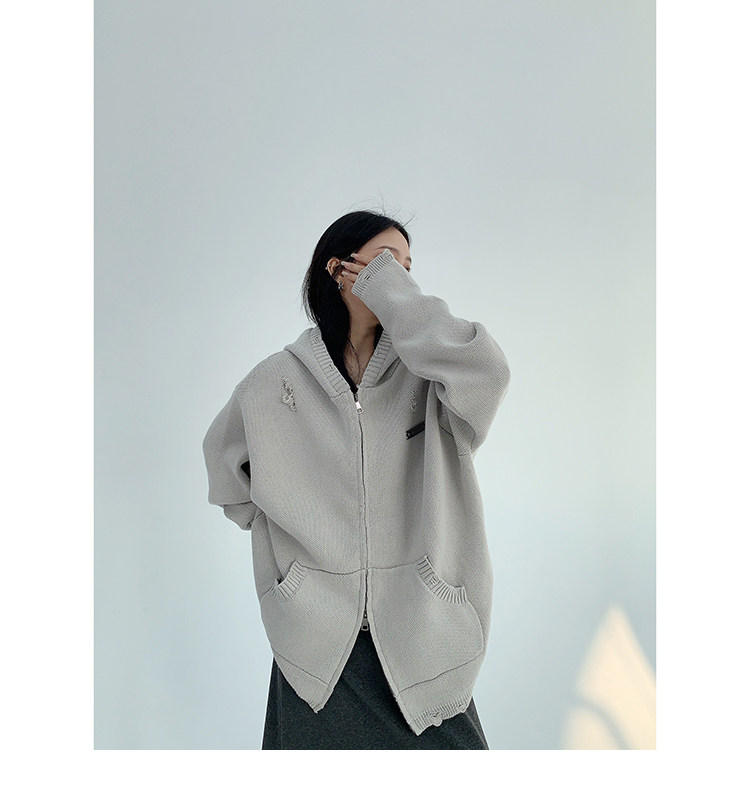 【トップス】🖤 ゆる感厚手ダメージニット・セーター レディース 冬新作 カジュアルフード付き【FCシリーズ】