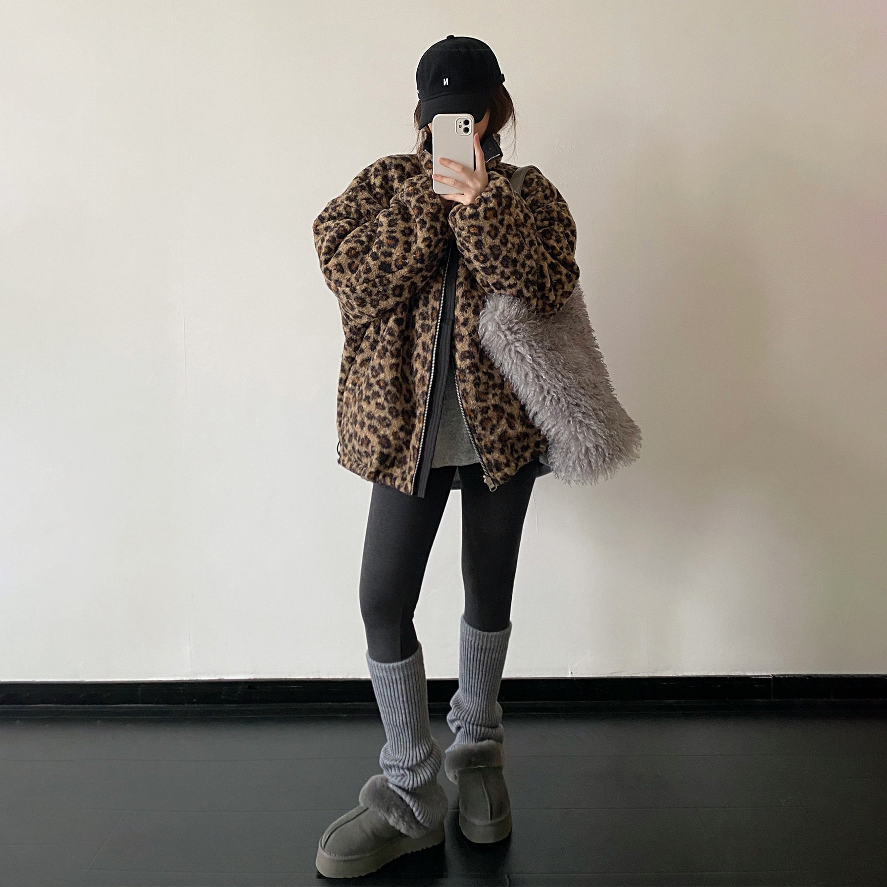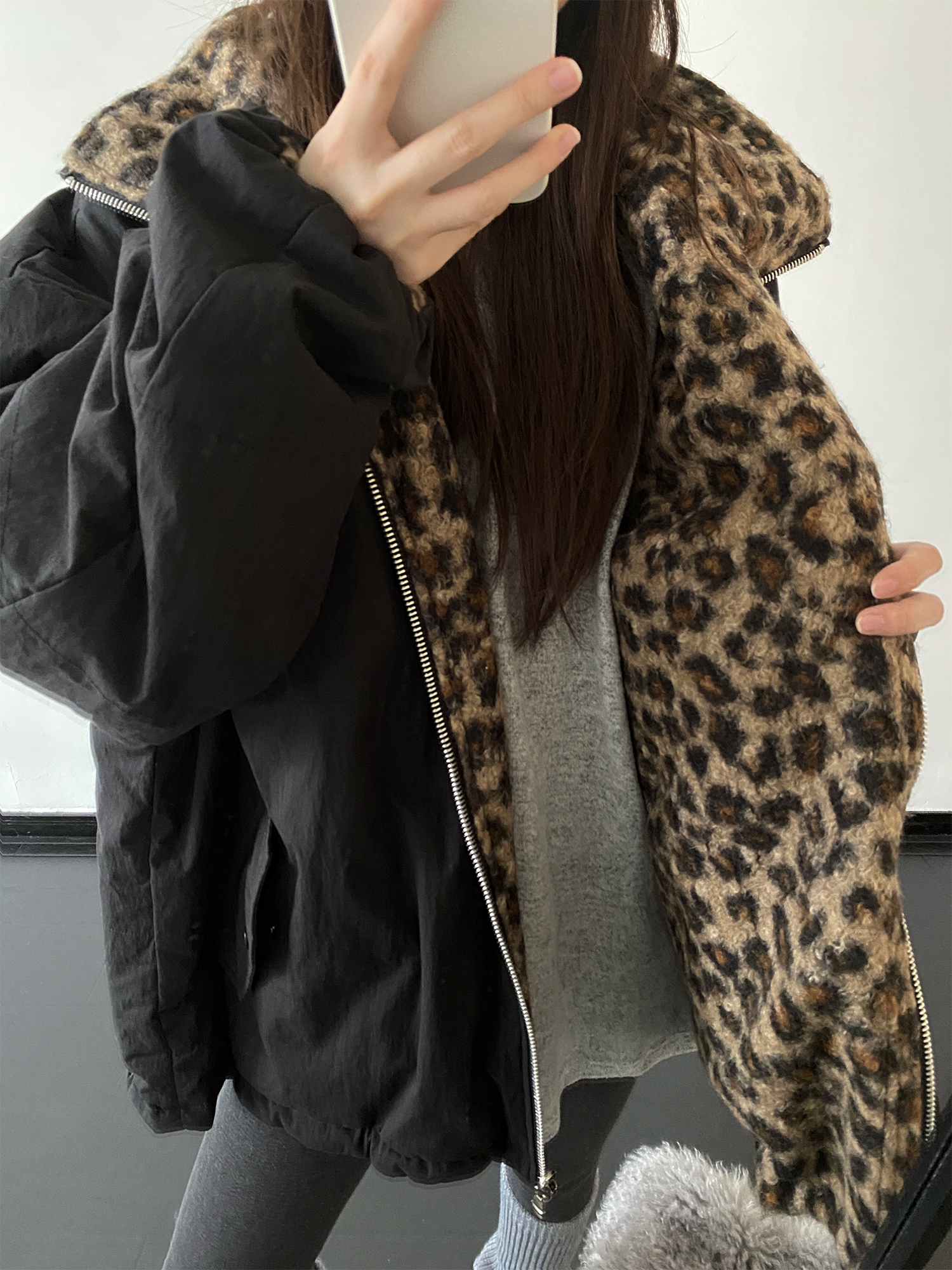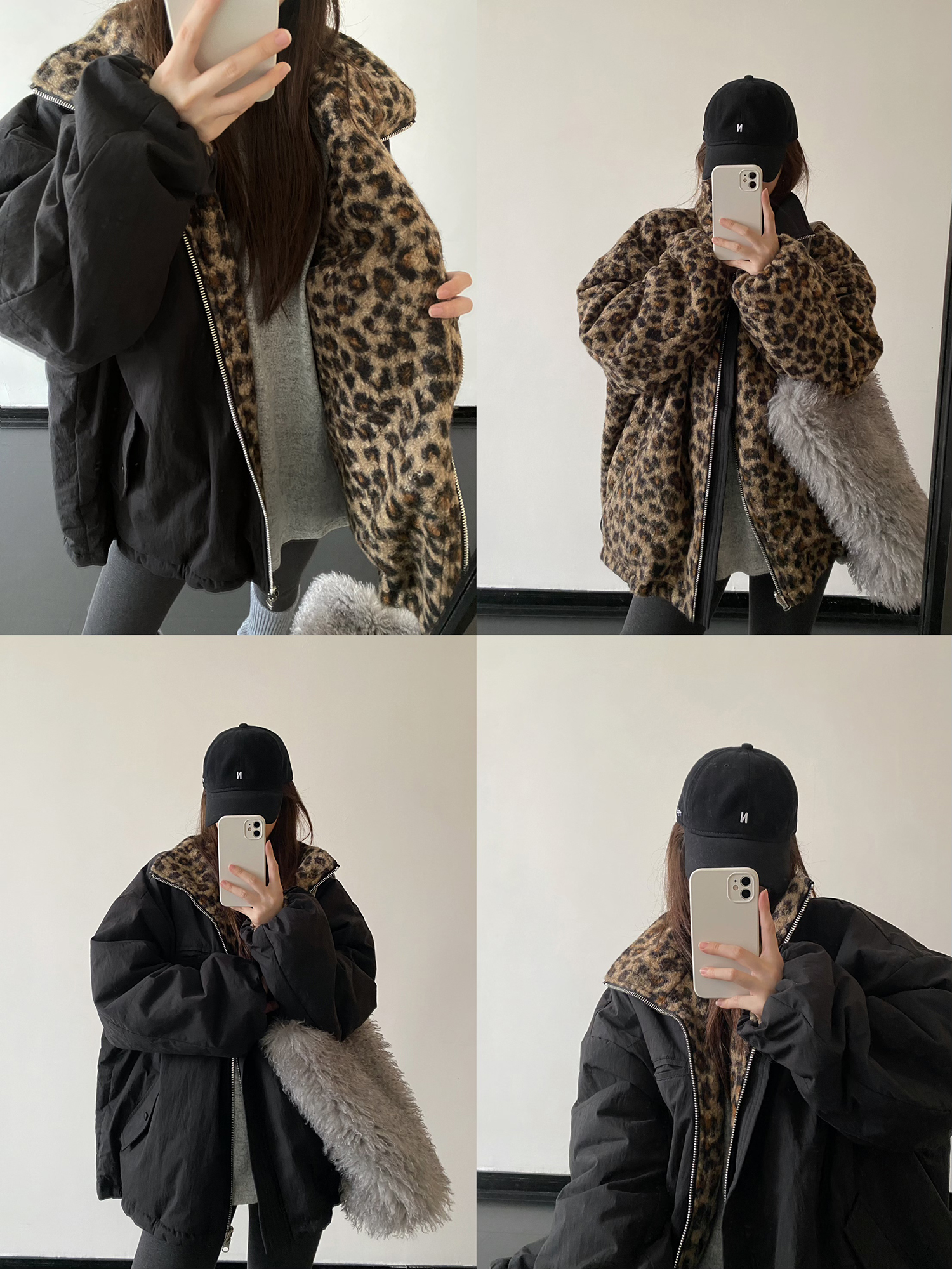 【商品名】【アウター】リバーシブル レオパード柄 ボア 防寒 厚手 ワークジャケット レディース 秋冬 綿入れコート 【FCシリーズ】