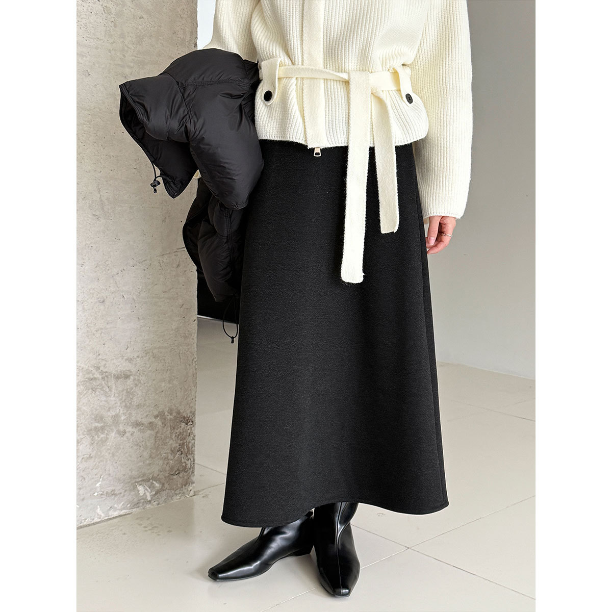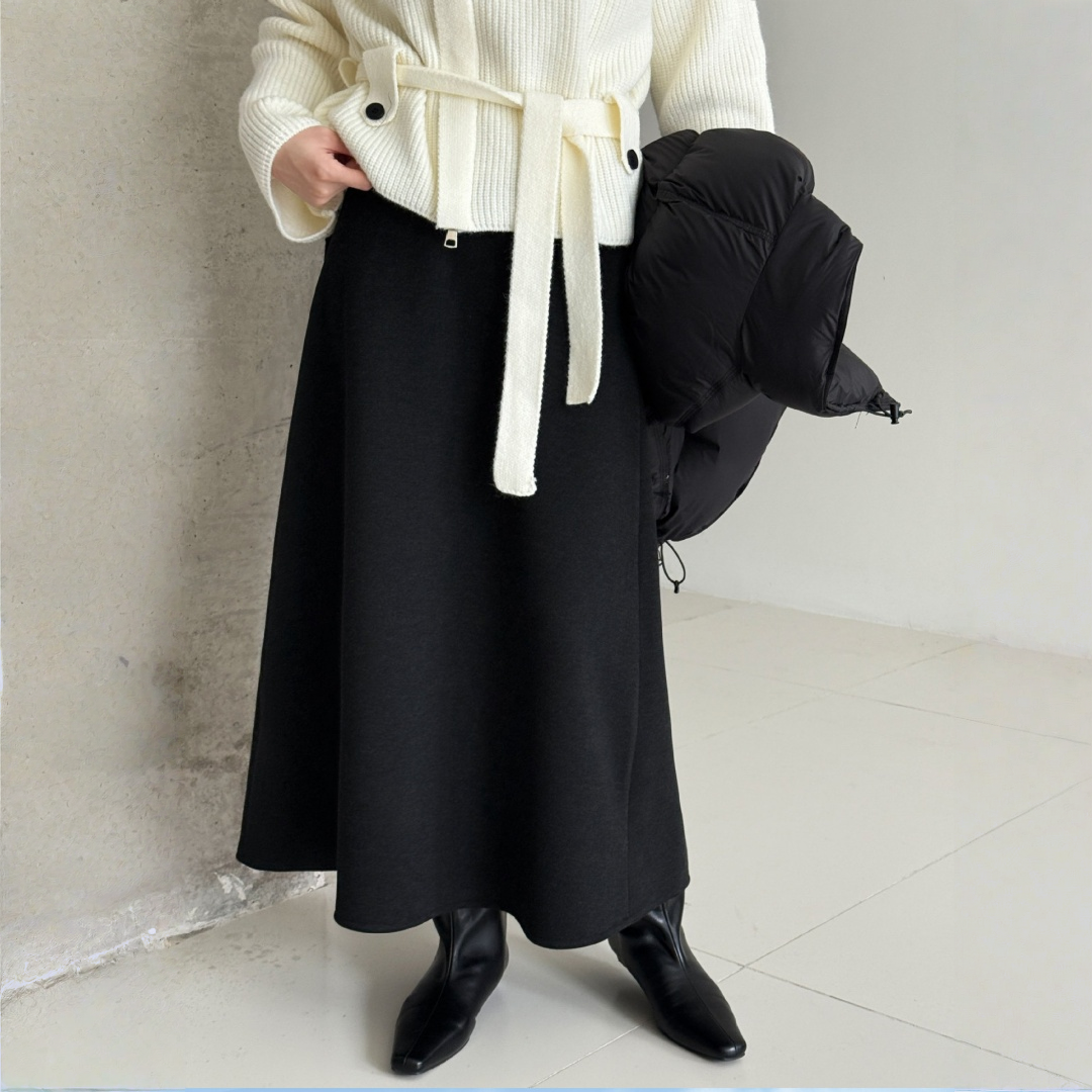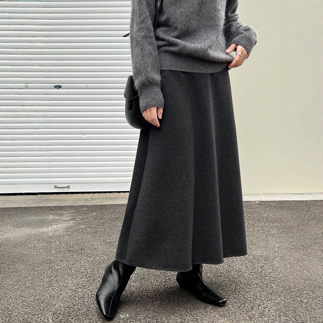 【商品名】【ボトムス】落ち感 細見え ウール裏起毛 Aラインロング スカート 【JZシリーズ】